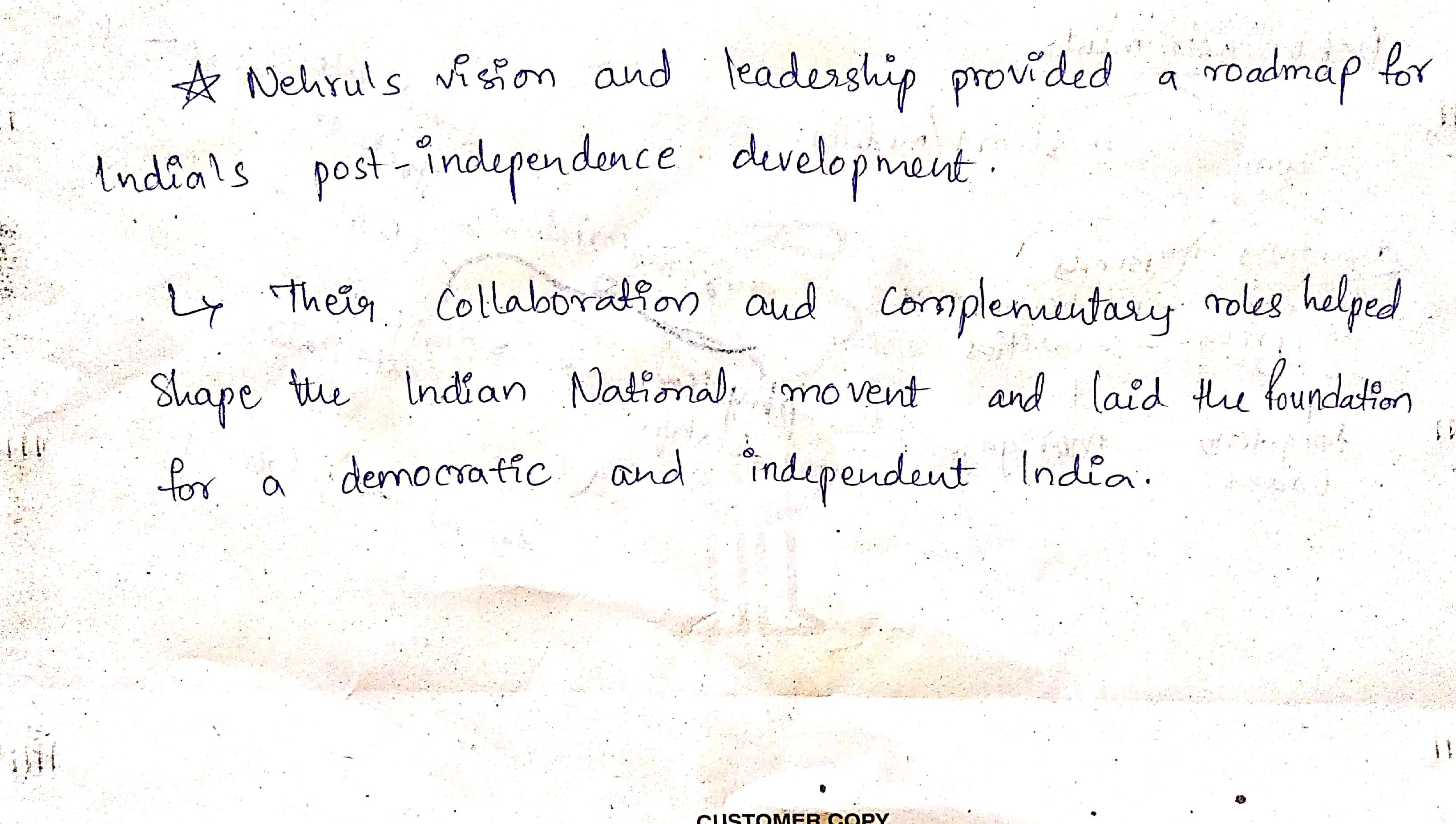 - Institution Building: Their combined efforts in institution building, notably in the Congress Party, laid the groundwork for democratic governance post-independence.