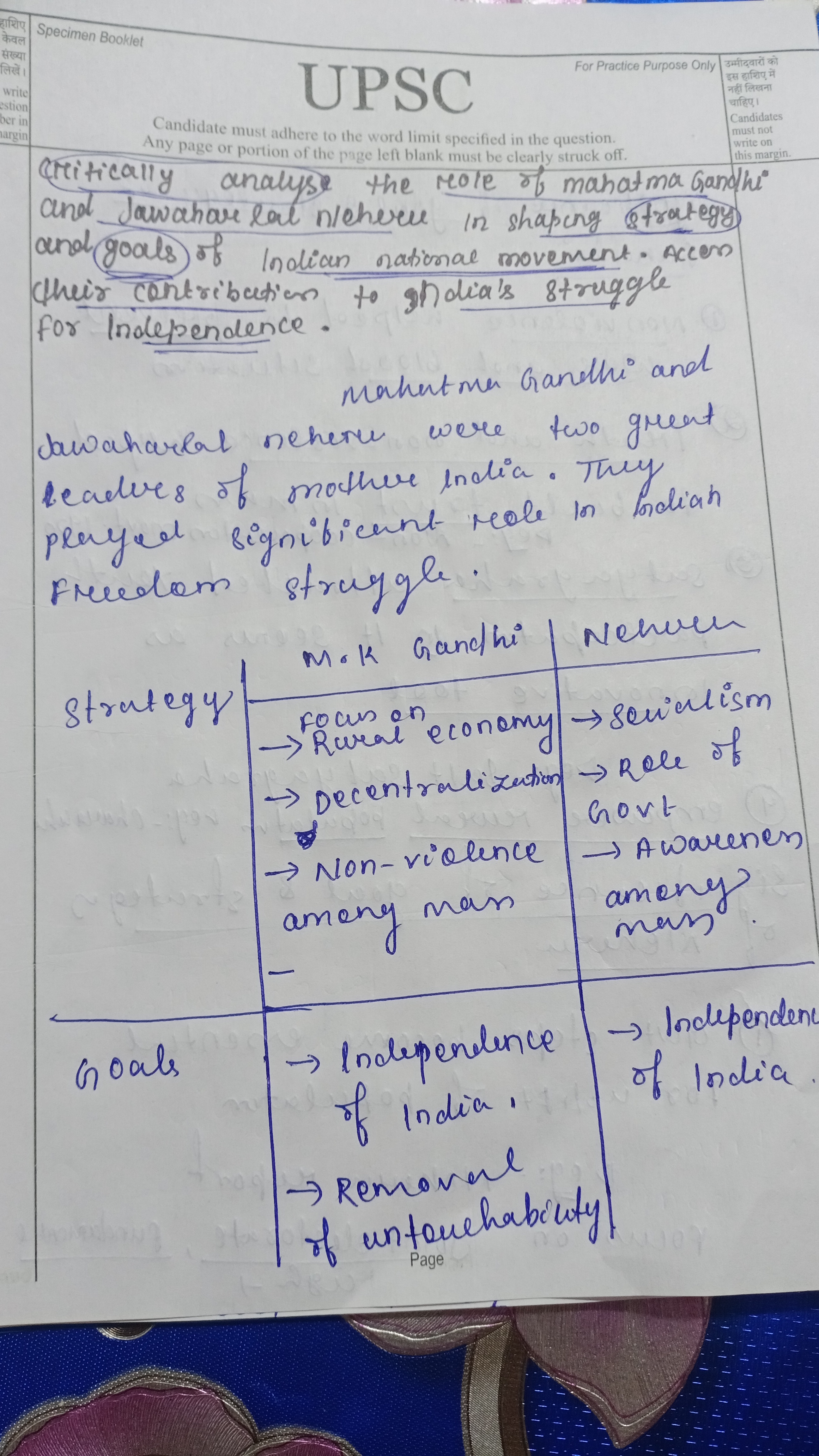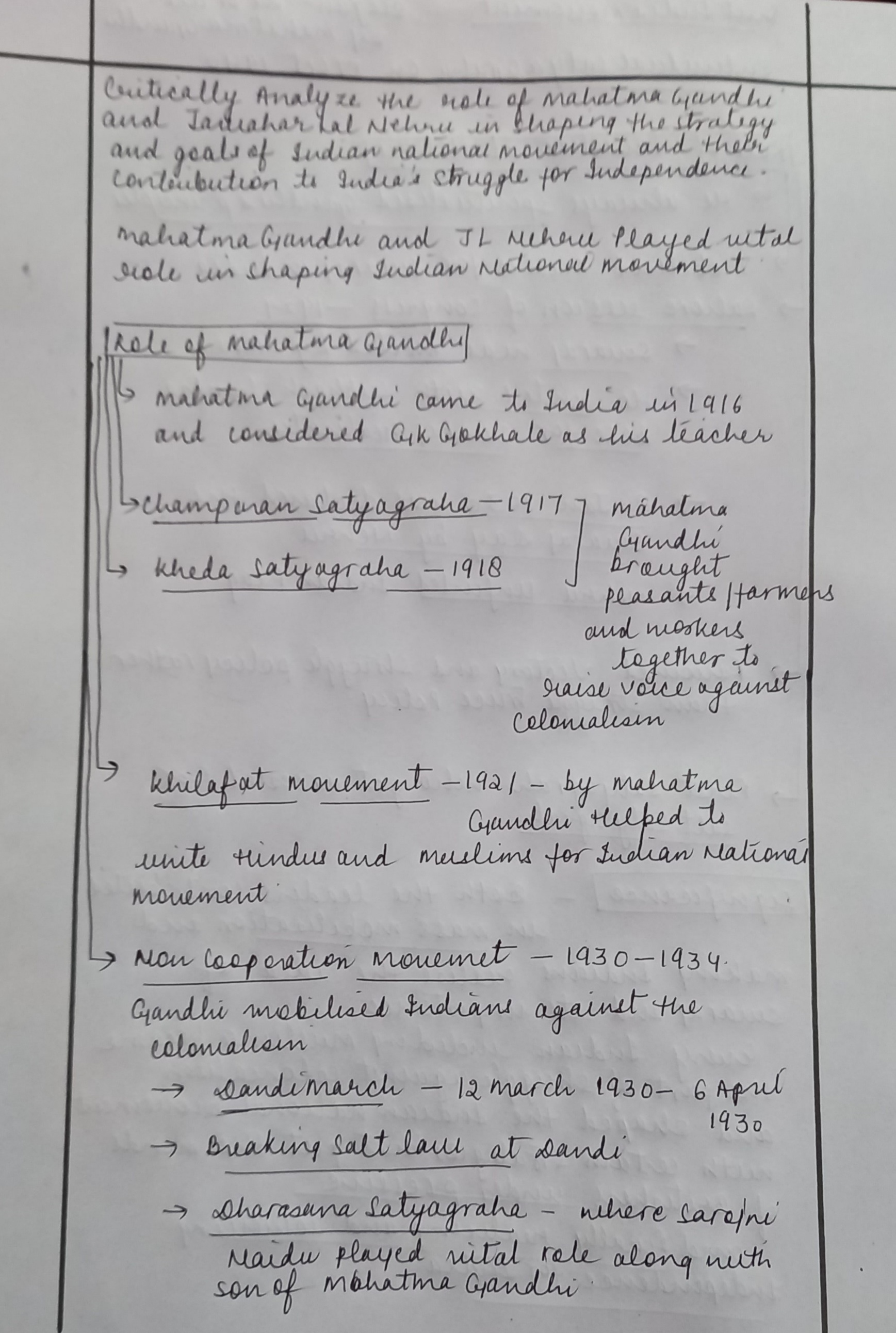 - Introduction: Begin by acknowledging the significant roles of Mahatma Gandhi and Jawaharlal Nehru in the Indian National Movement.