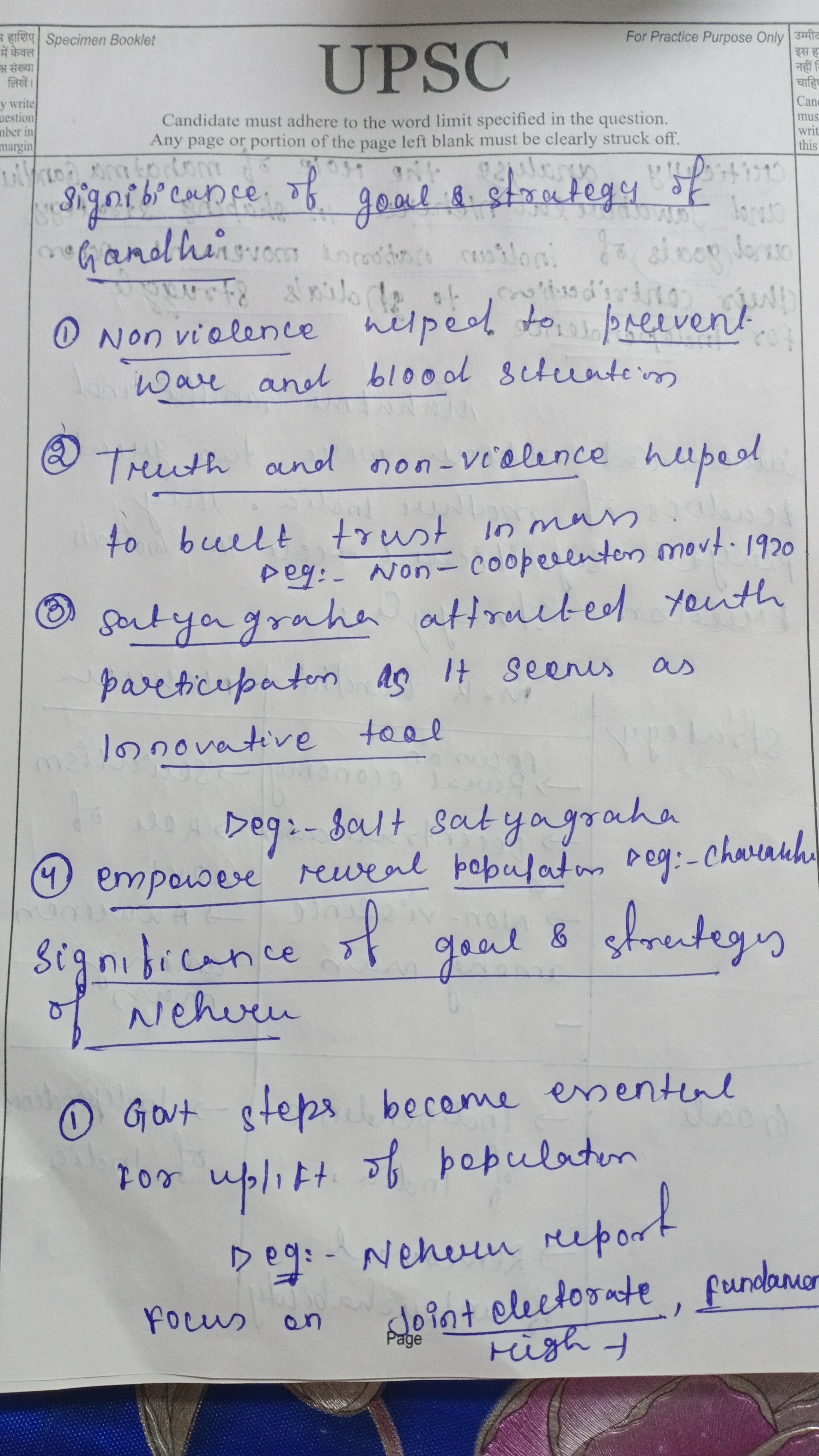 - Discuss Mahatma Gandhi’s philosophy of non-violence and civil disobedience with examples like the Non-Cooperation Movement and the Salt Satyagraha. Highlight his emphasis on constructive work and communal harmony.