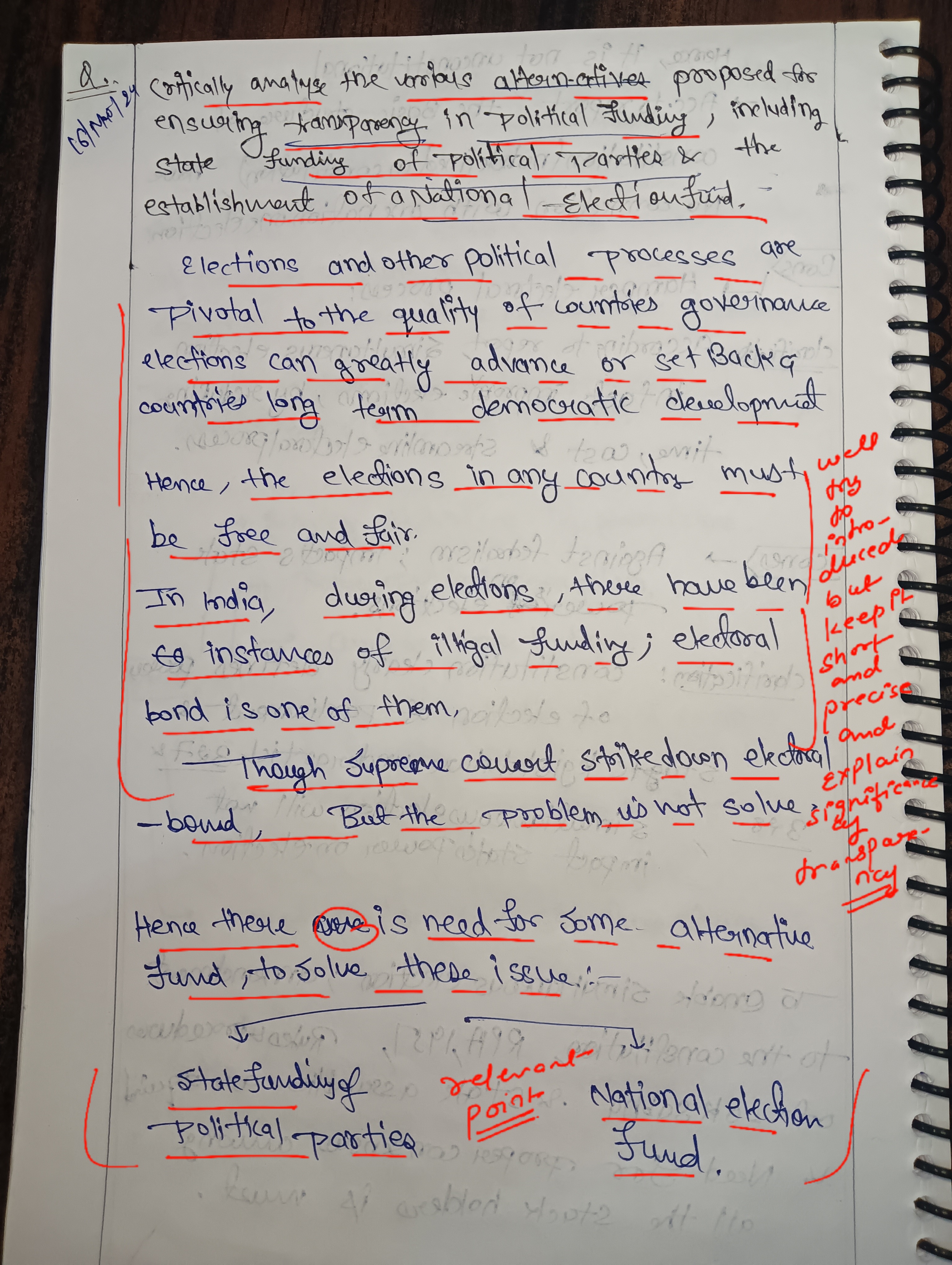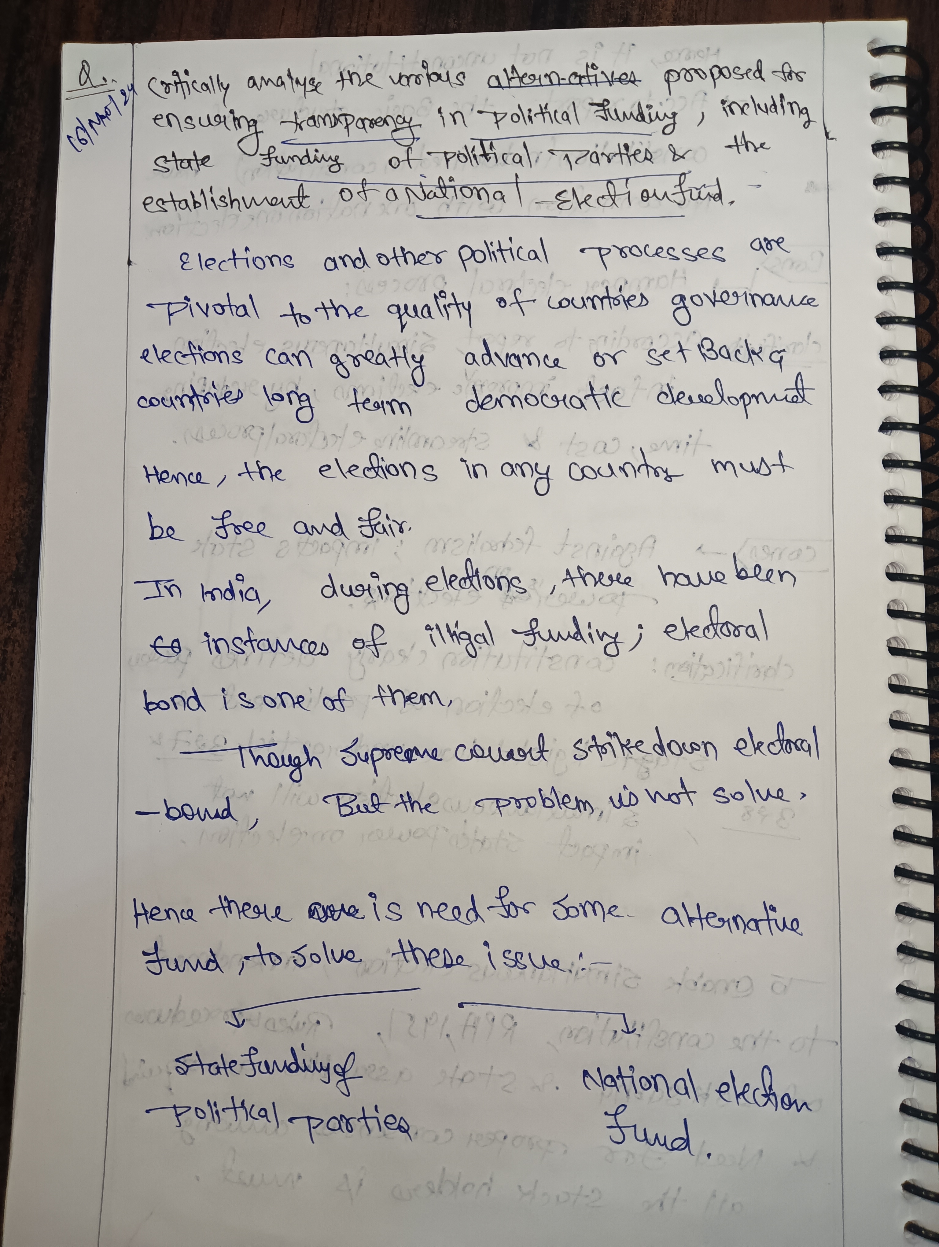 - Introduction: Highlight the issue of transparency in India’s political funding, mentioning the electoral bonds scheme as a government effort that has sparked debate over its effectiveness and transparency.