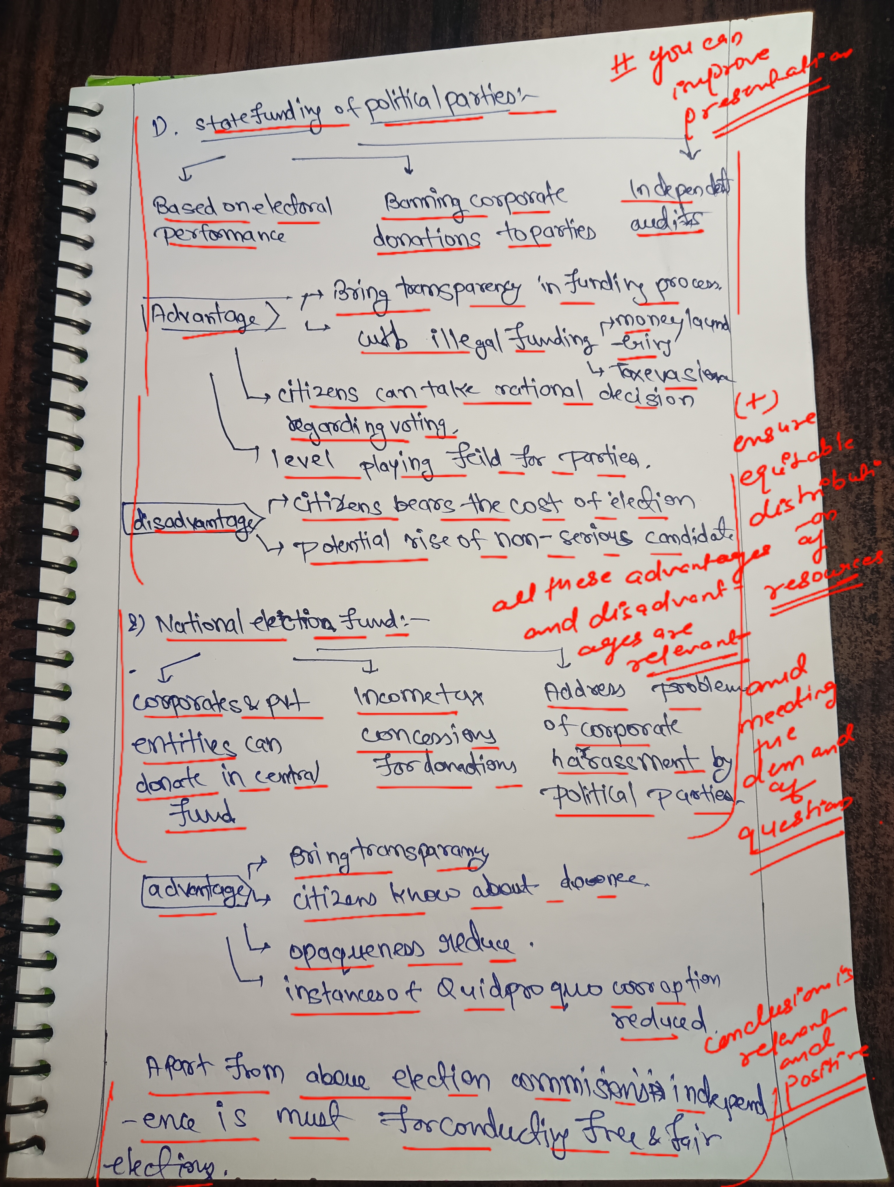 - Concept and Rationale: State funding involves direct financial assistance from the government to political parties, intending to reduce their dependence on private donations and to level the electoral playing field.