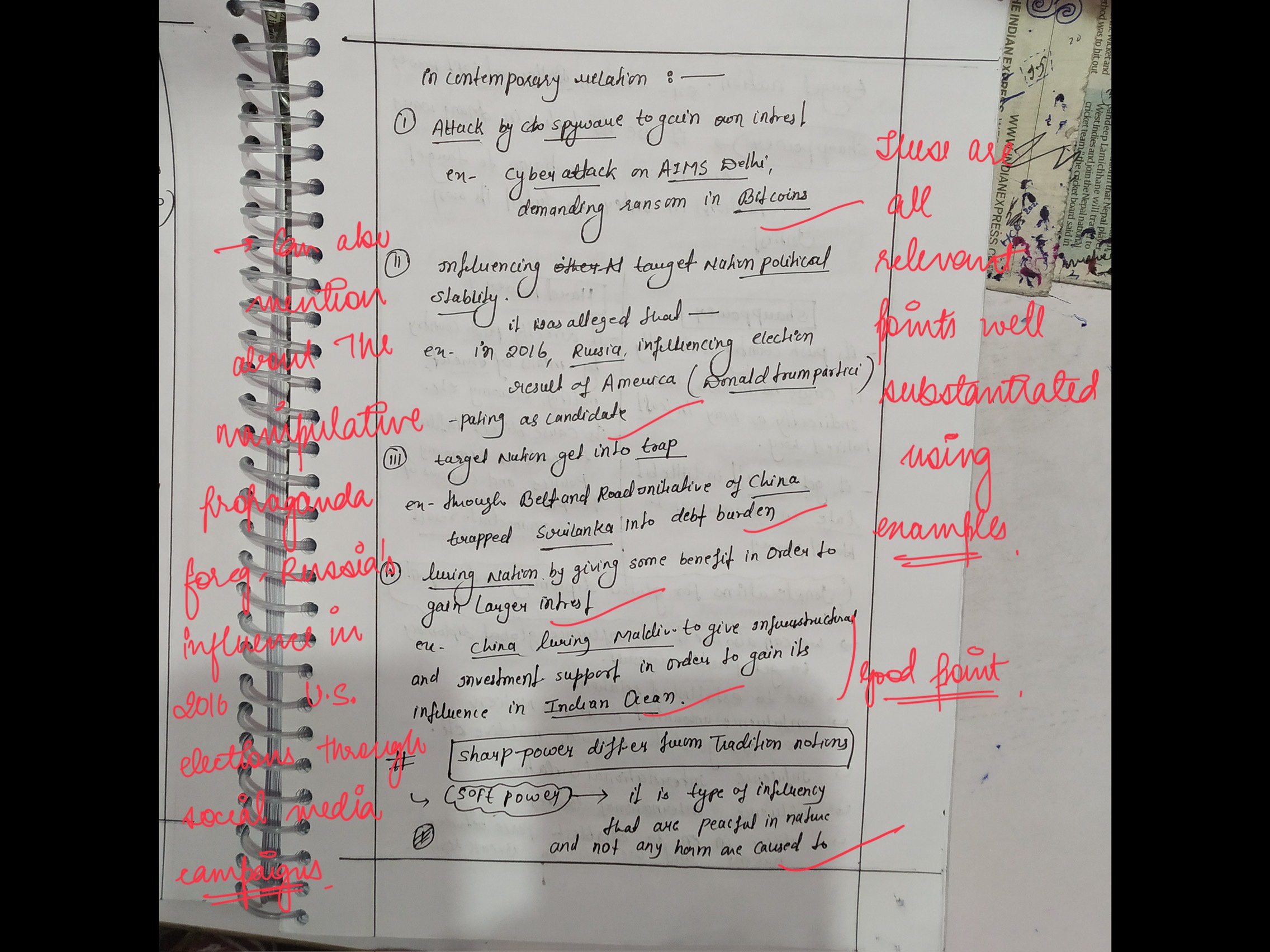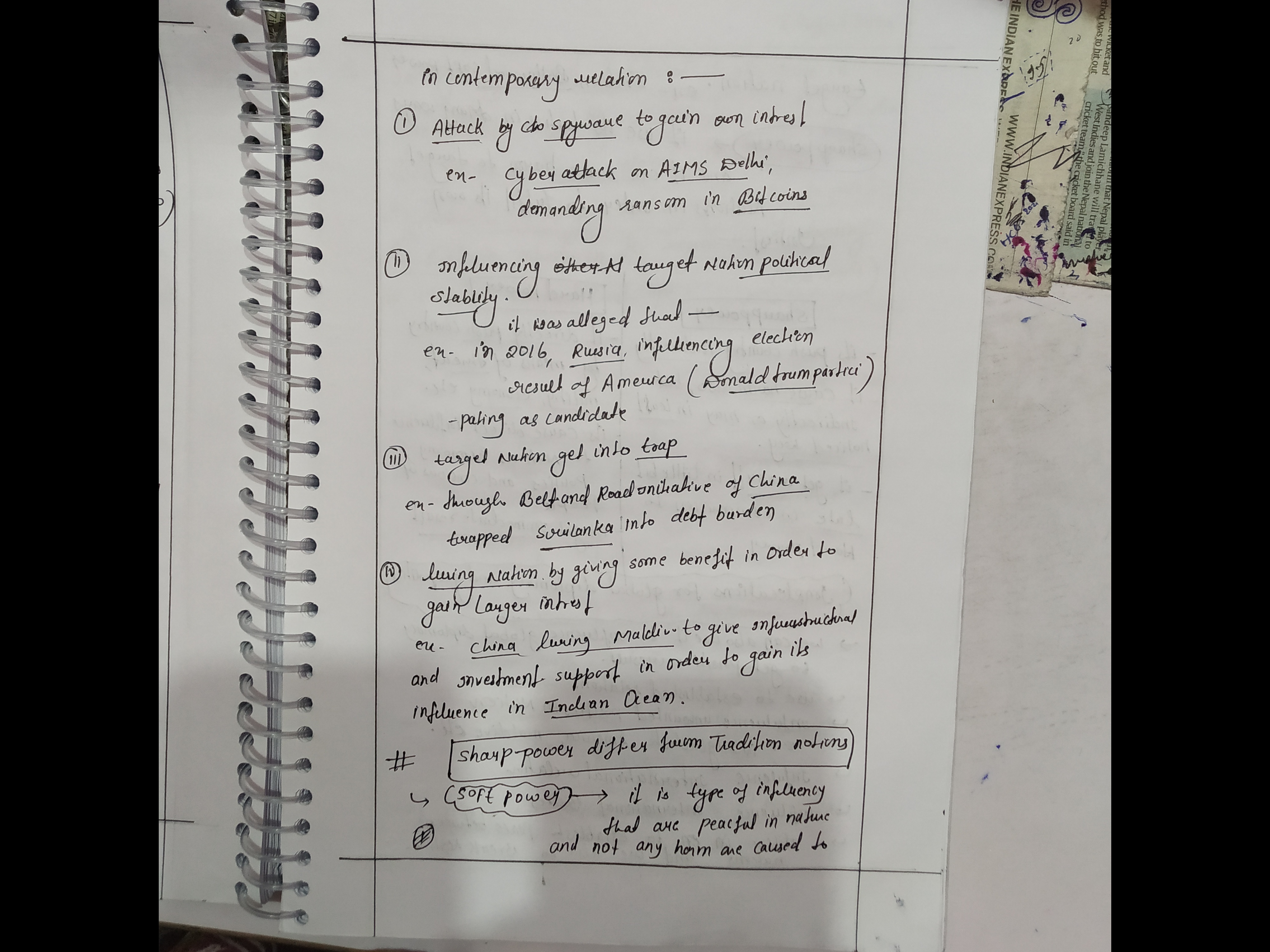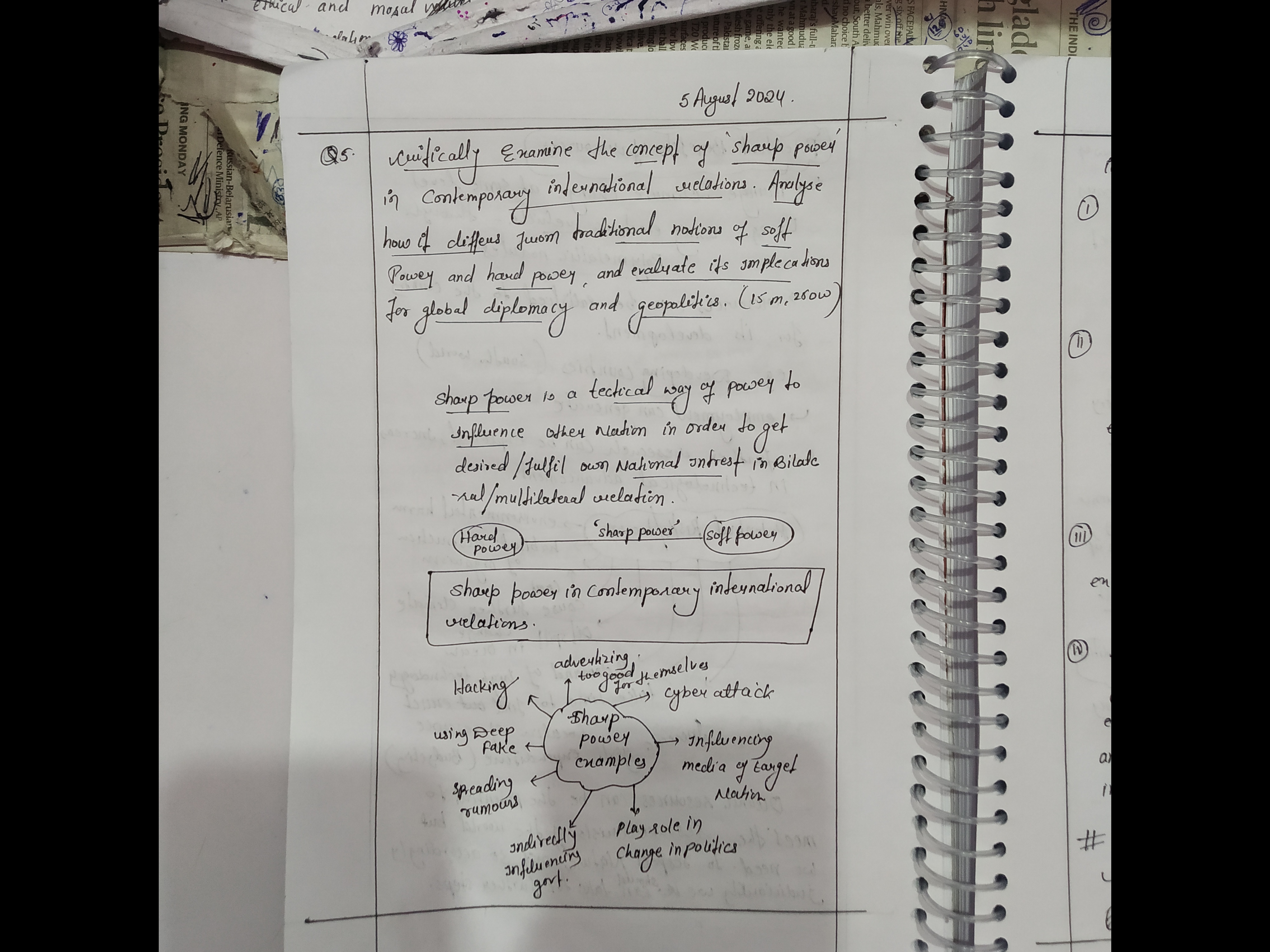 - Examine the concept of “sharp power” in contemporary international relations.