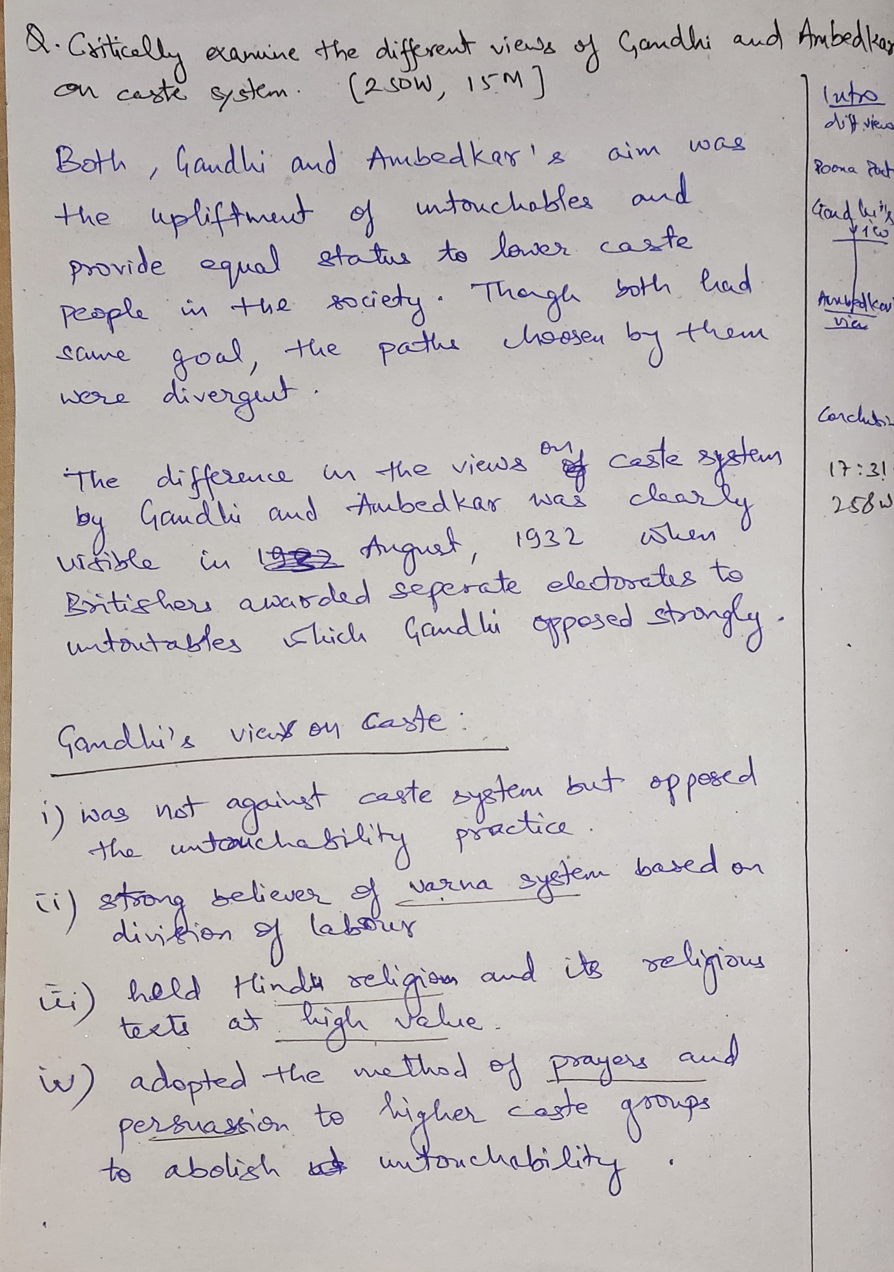- Ambedkar sought a legal and political route, aiming at the structural dismantling of the caste hierarchy through constitutional provisions and rights for the Dalits.