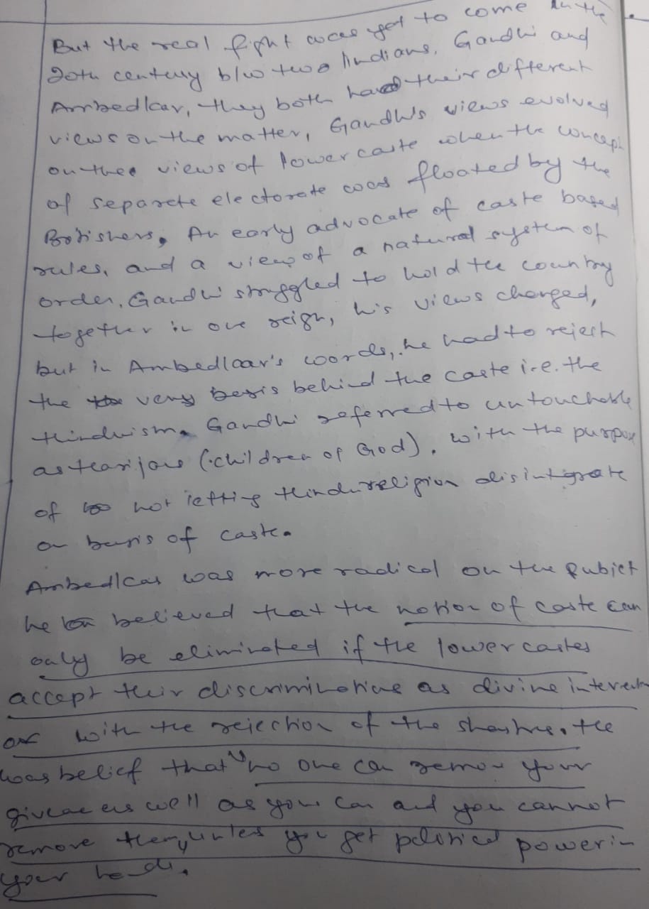 Gandhi and Ambedkar, towering figures in India’s history, held contrasting views on the caste system, which stemmed from their diverse experiences, exposures, and convictions. Yet, their shared goal was the upliftment and betterment of society. They embodied the pluralistic fabric of India, where multiple perspectives coalesce to shape the nation’s destiny. While they might have walked different paths, they both aimed for a casteless society, free from discrimination and prejudice. Their legacies serve as a reminder that while visions might differ, the commitment to social justice and equality remains paramount.