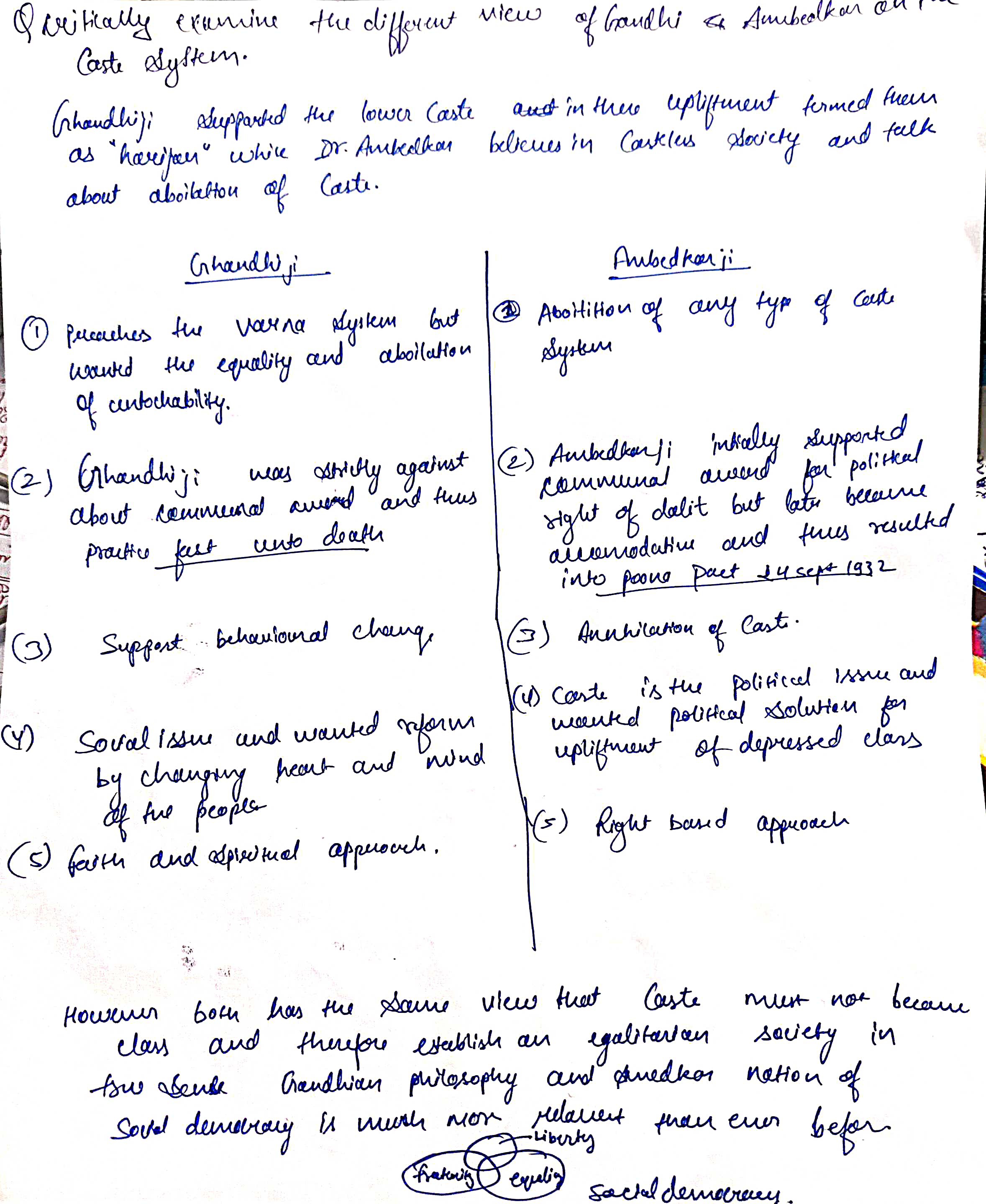 - Contrarily, Ambedkar saw the caste system as intrinsically oppressive, advocating for its complete annihilation. He perceived it as an impediment to social unity, liberty, and fraternity.