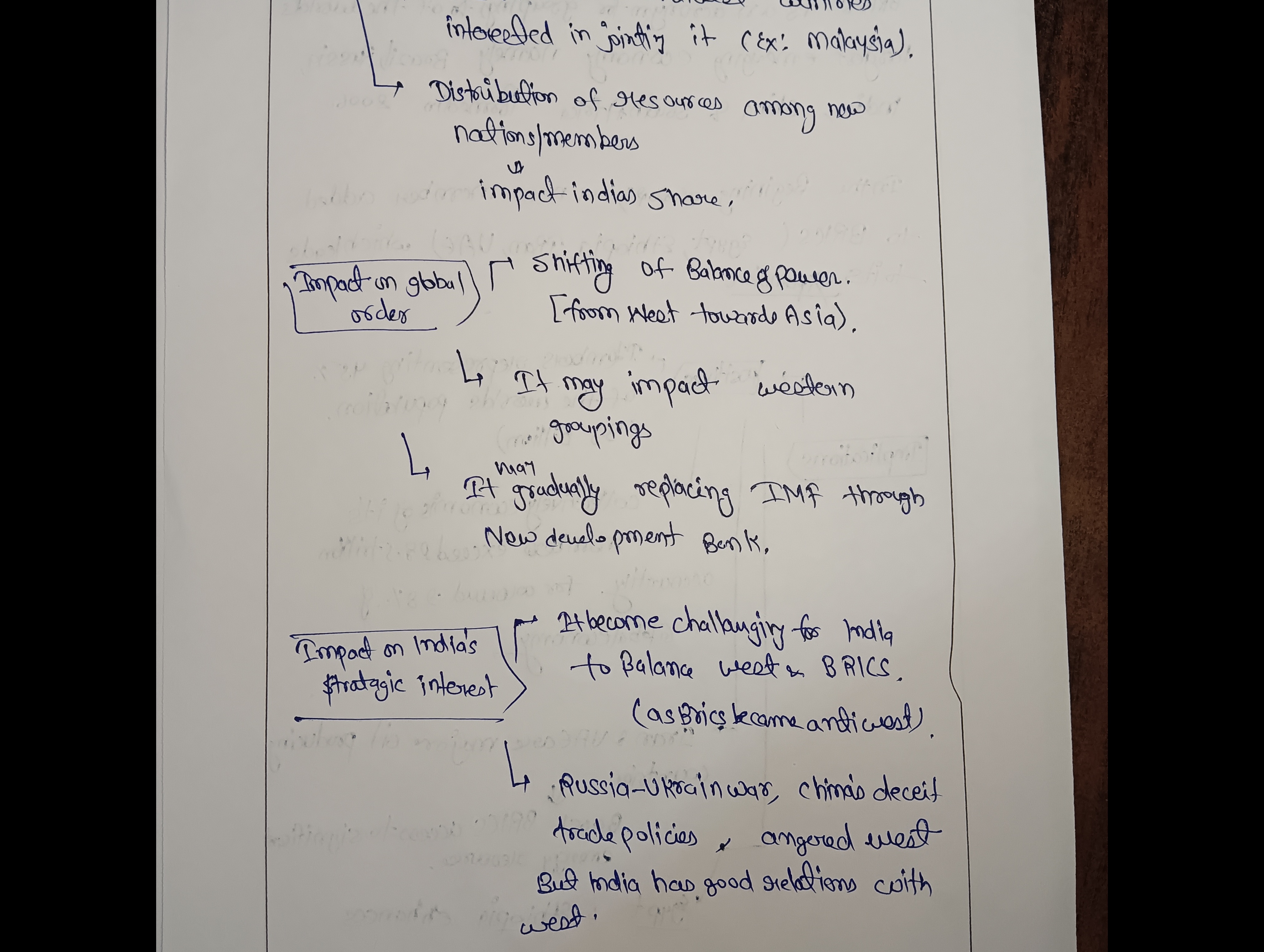 - Discuss the impact of expansion of BRICS on the existing global order.