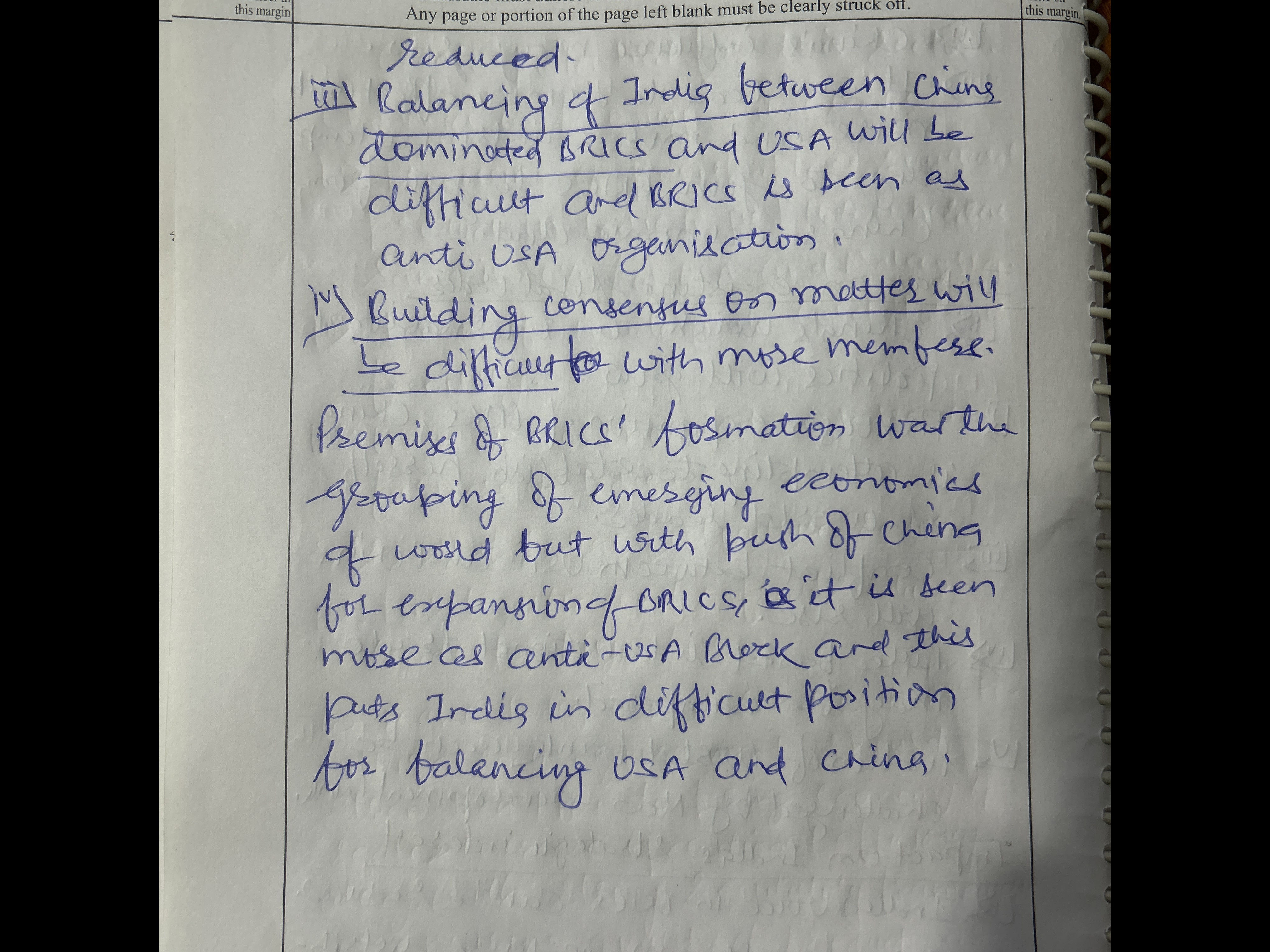 For example: India and Brazil might find their strategic interests overshadowed by the entry of new, assertive members like Saudi Arabia and Iran.