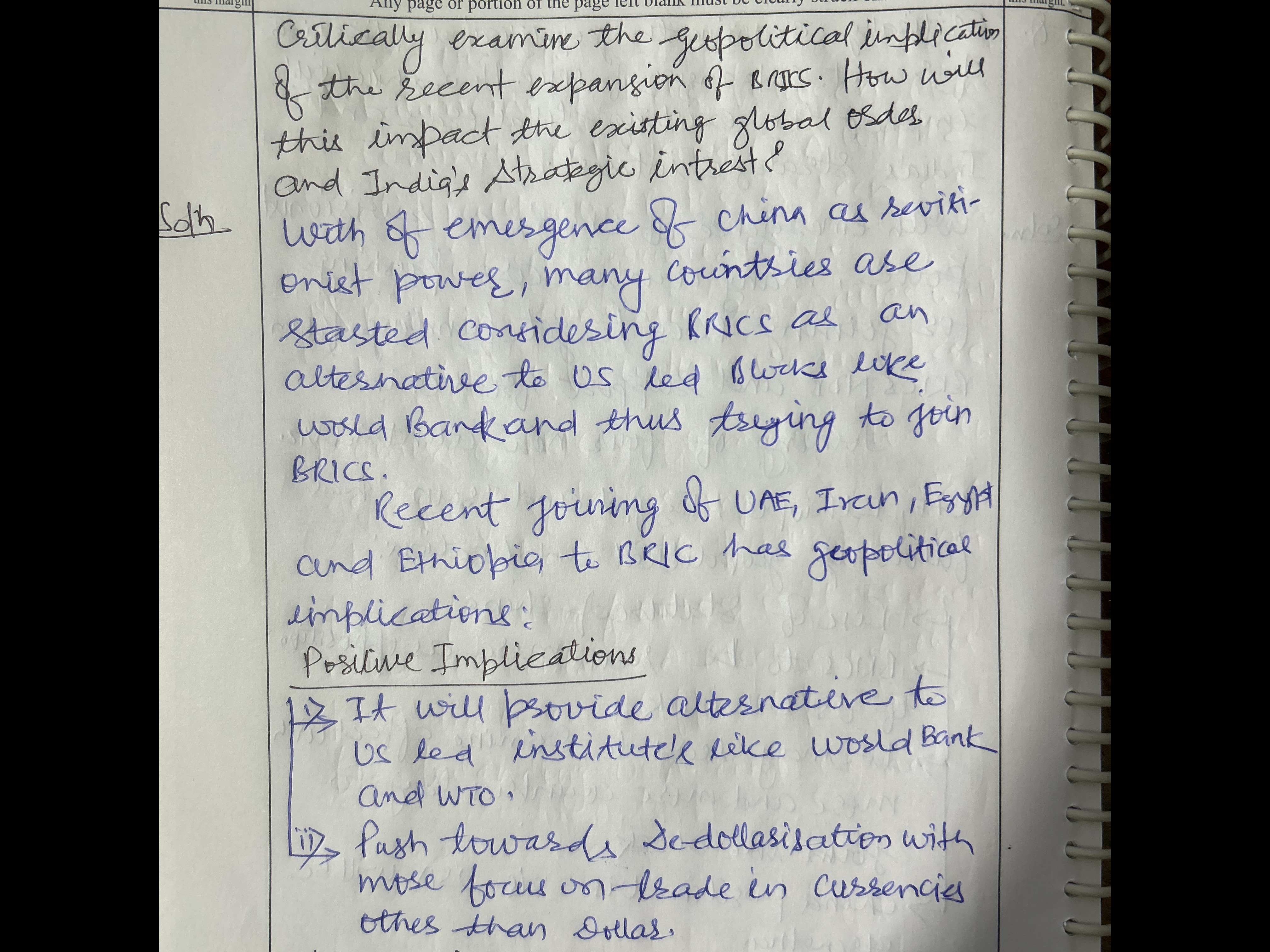 - Critically examine the geopolitical implications of the recent expansion of BRICS.