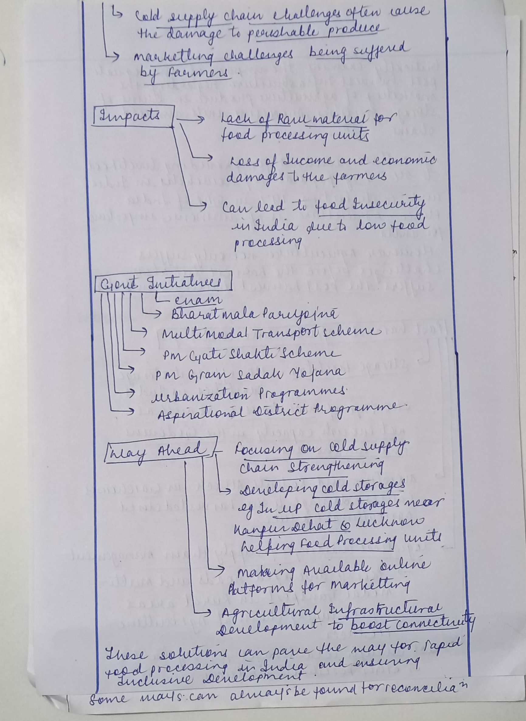 - Pradhan Mantri Kisan Sampada Yojna (PMKSY) scheme with the objective of creation of modern infrastructure along with efficient supply chain management for the entire processing value chain.