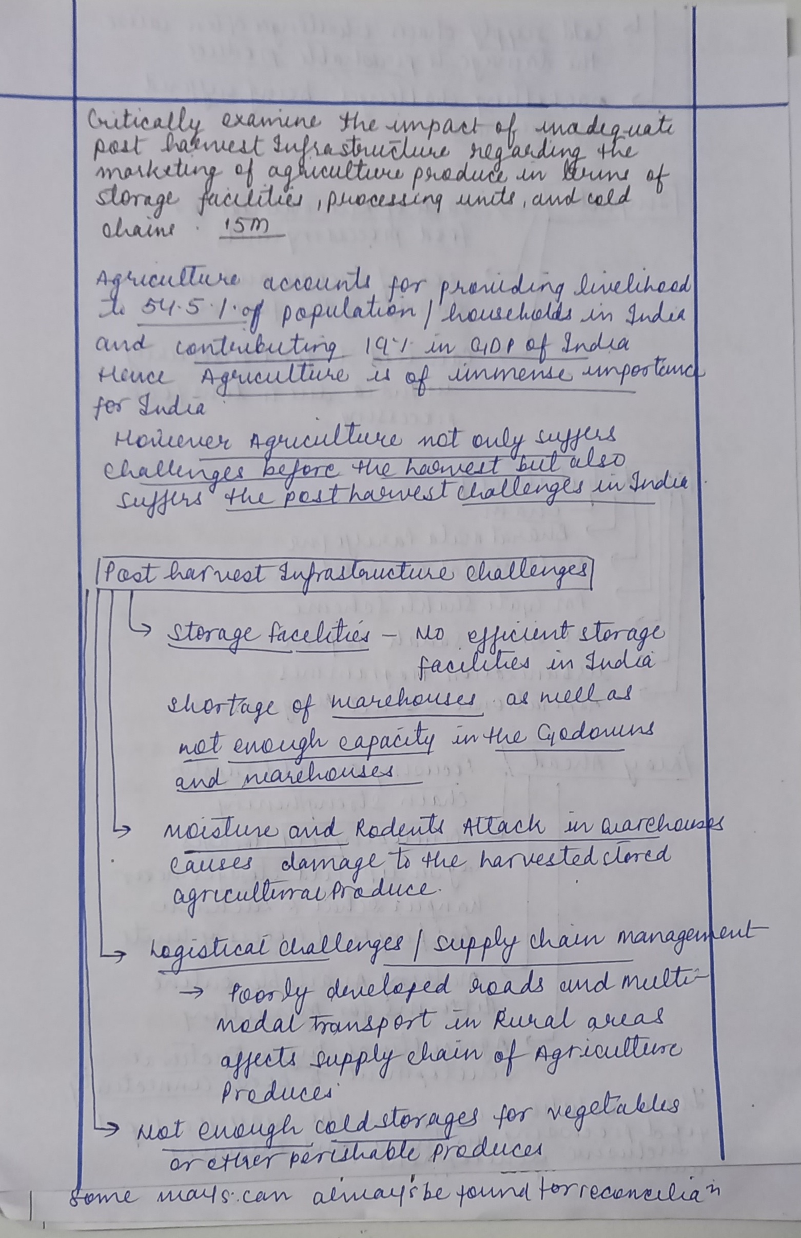 - Write briefly about the post-harvest infrastructure.