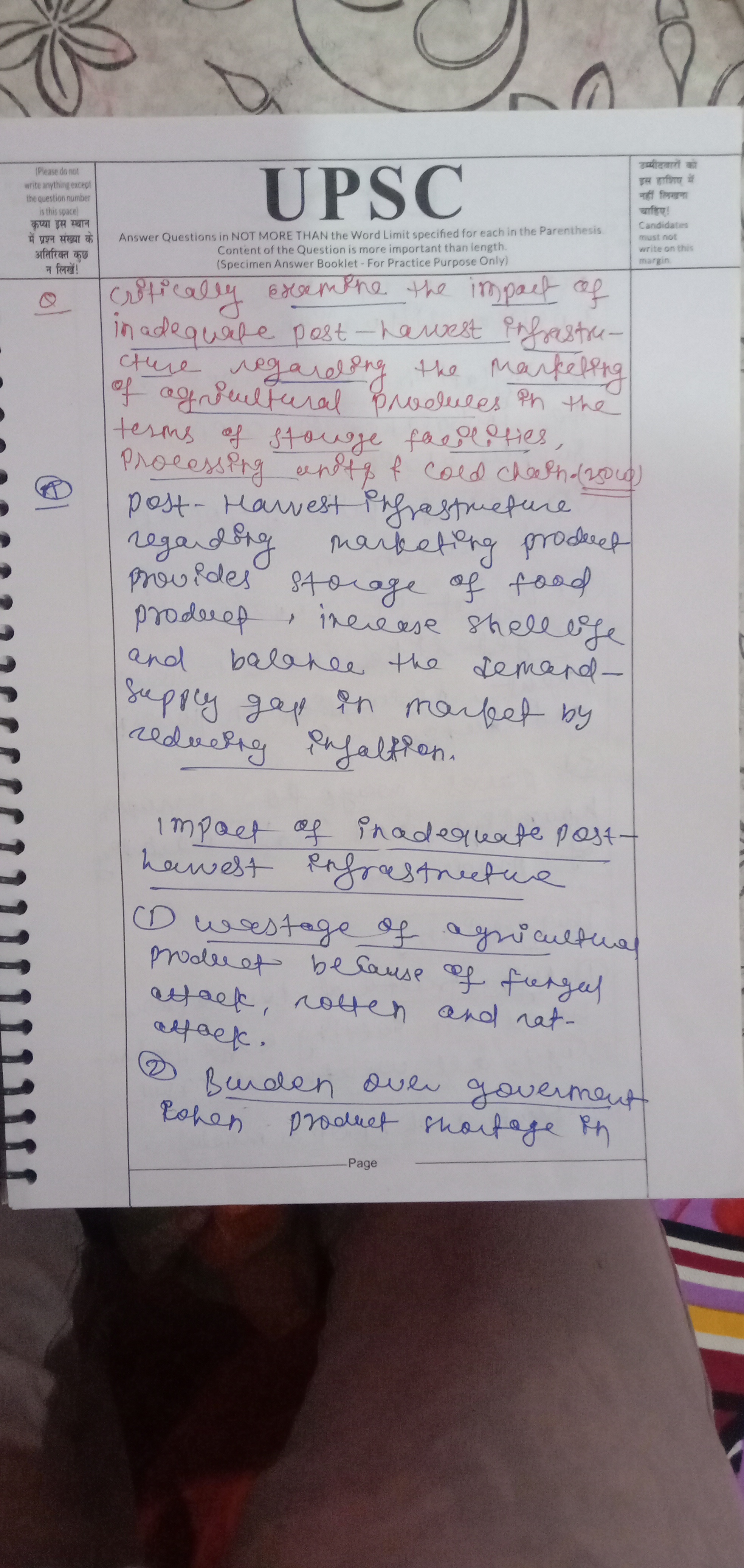 - Mention the impact of inadequate post-harvest infrastructure regarding the marketing of agricultural produce. Give a few examples.