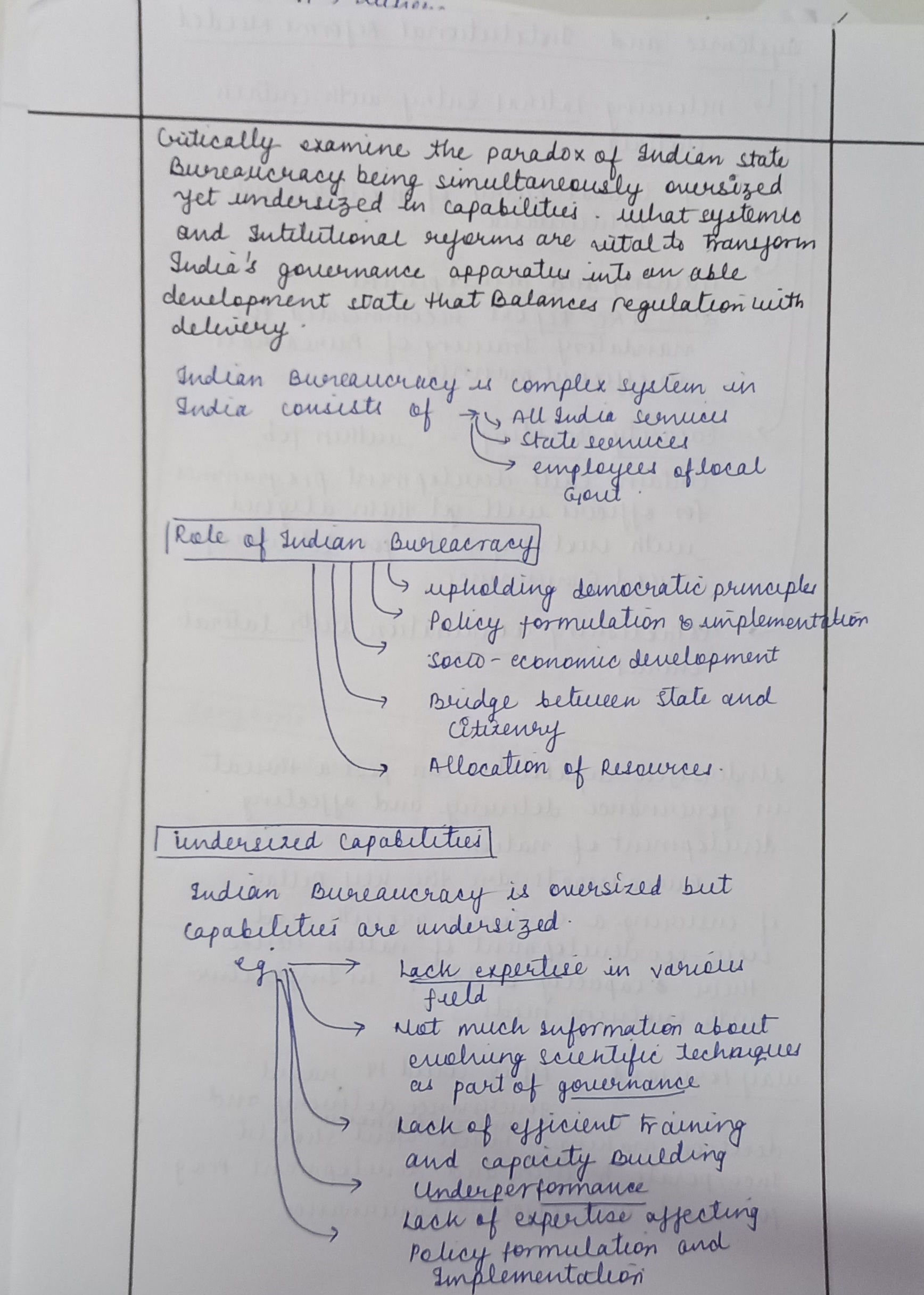 - Introduction: Outline the paradoxical nature of the Indian state bureaucracy, emphasizing its oversized bureaucratic processes yet undersized in actual capabilities.