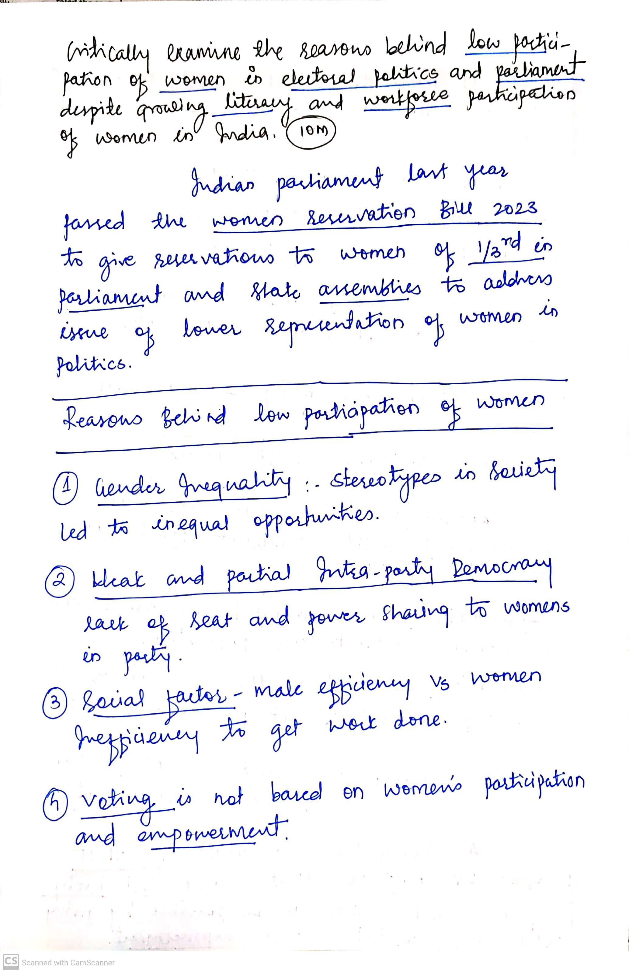 - Introduction: Highlight the paradox of increasing women’s literacy and workforce participation against their underrepresentation in Indian politics and Parliament, setting the stage for a discussion on the complexities behind this disparity.