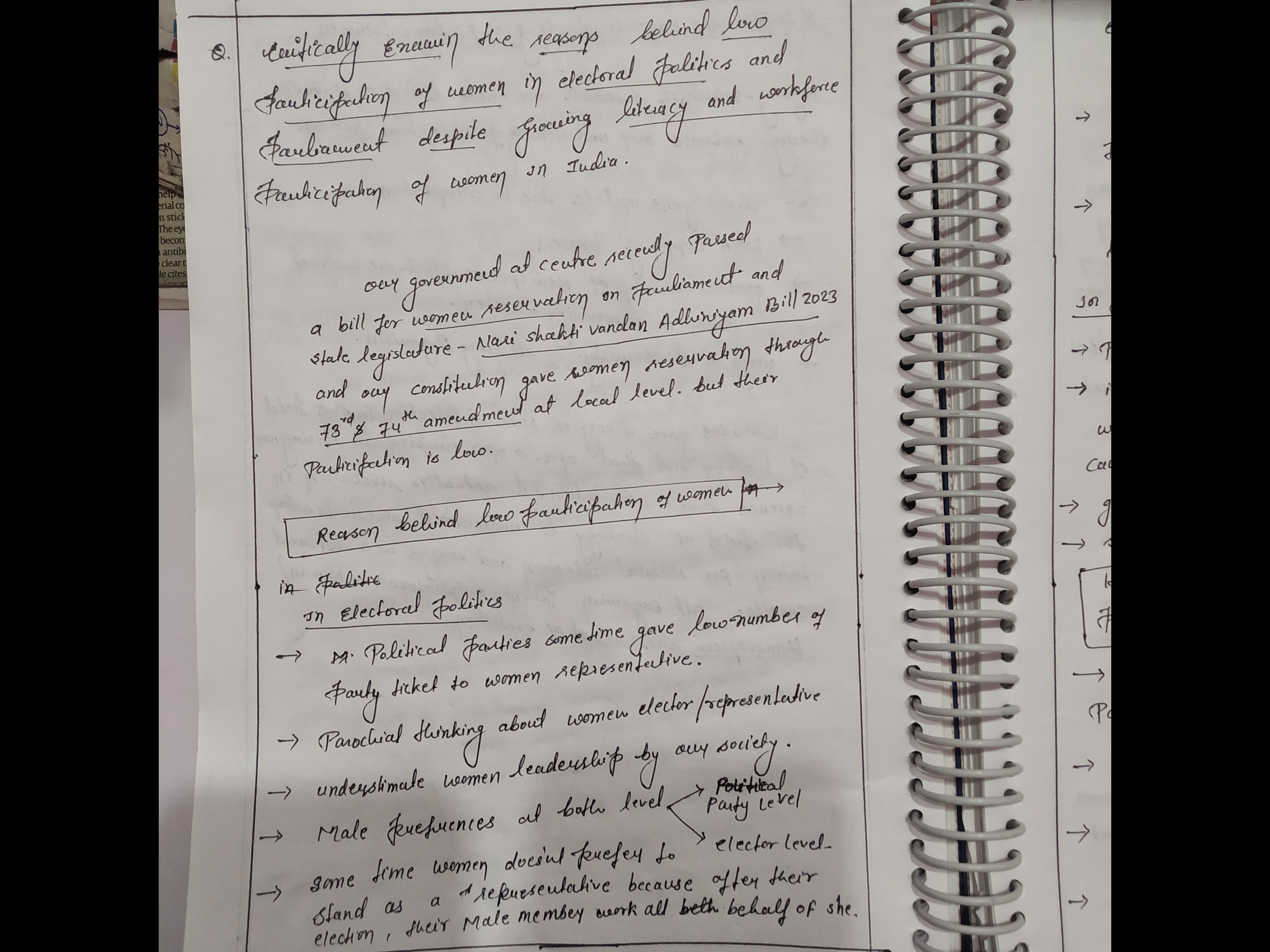 Despite significant advancements in women’s literacy and workforce participation in India, their representation in electoral politics and Parliament remains conspicuously low. This underrepresentation is a complex issue, stemming from various societal, structural, and political barriers that collectively hinder women’s political engagement.
