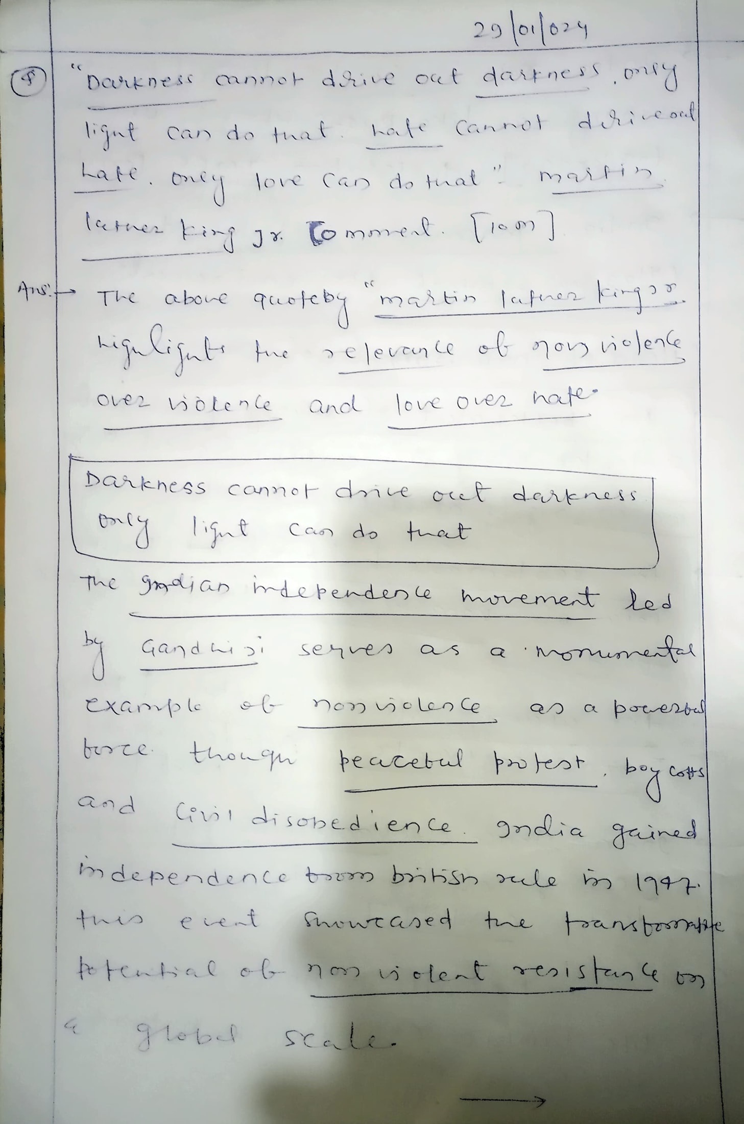- Write why “Darkness cannot drive out darkness, only light can do that”.