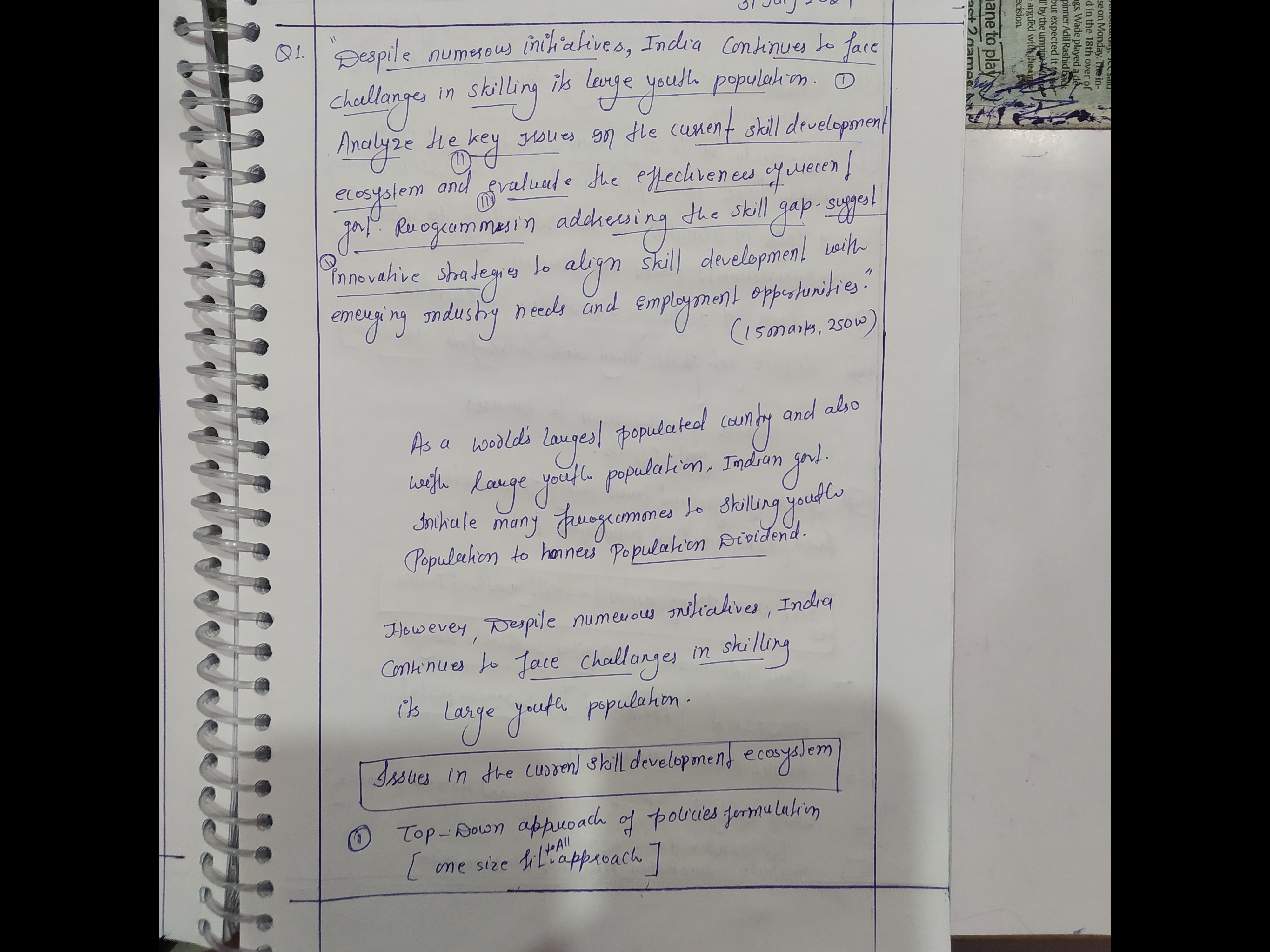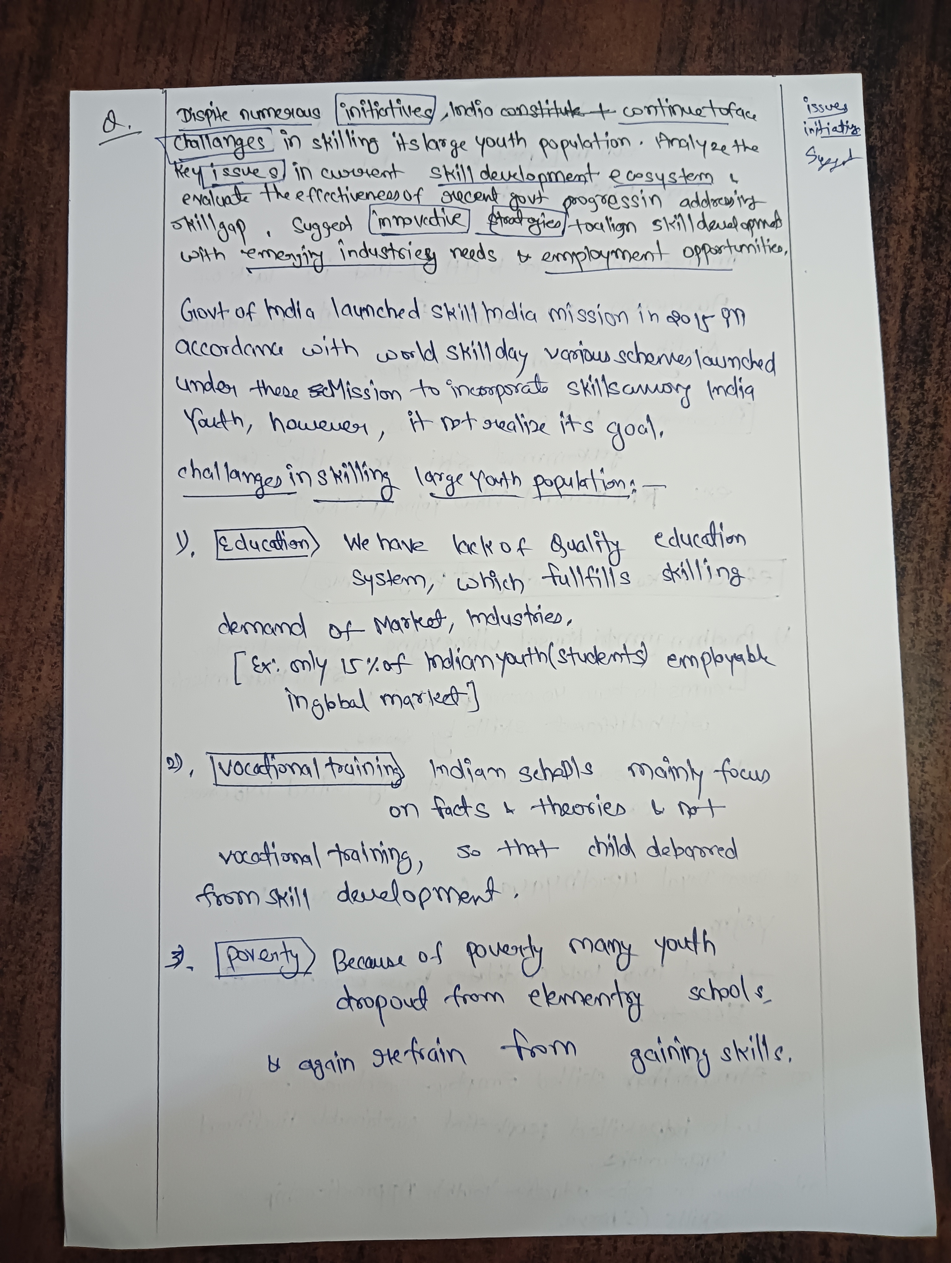 - Discuss how despite numerous initiatives, India continues to face challenges in skilling its large youth population.