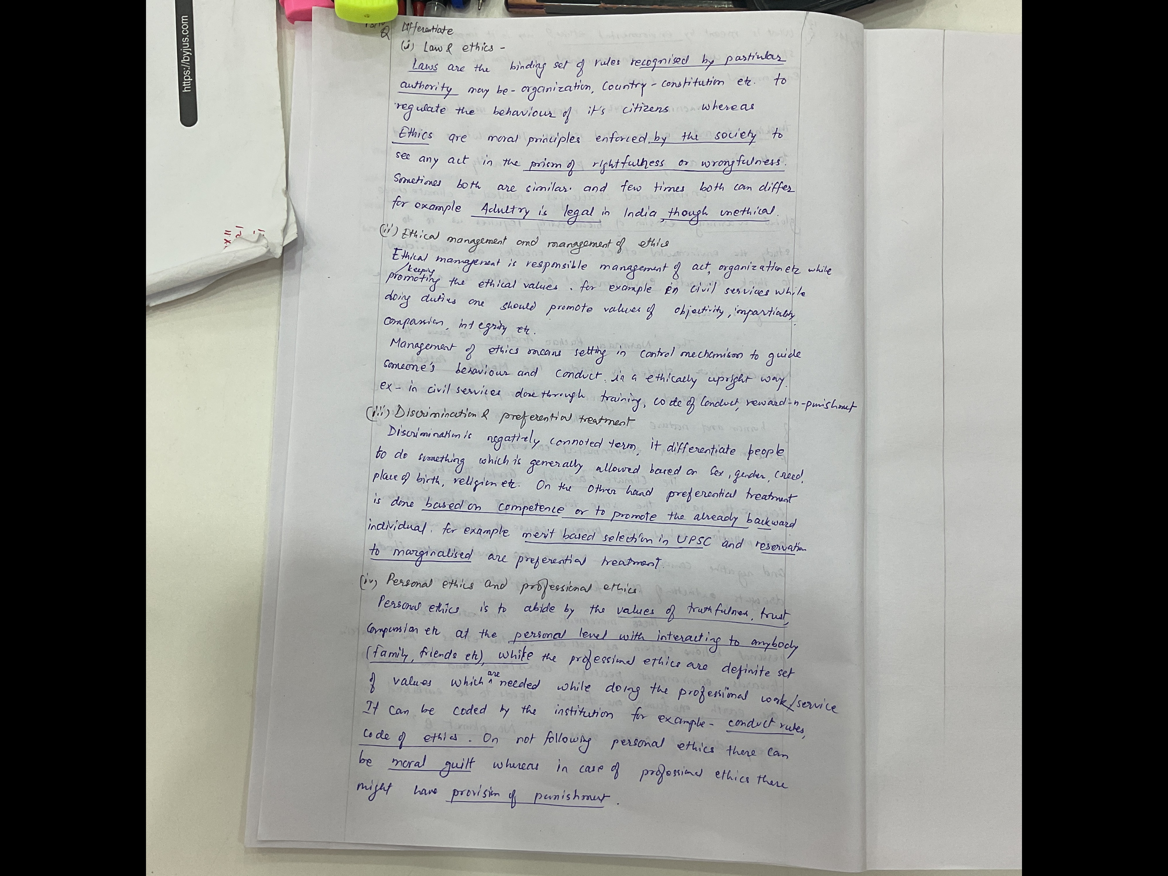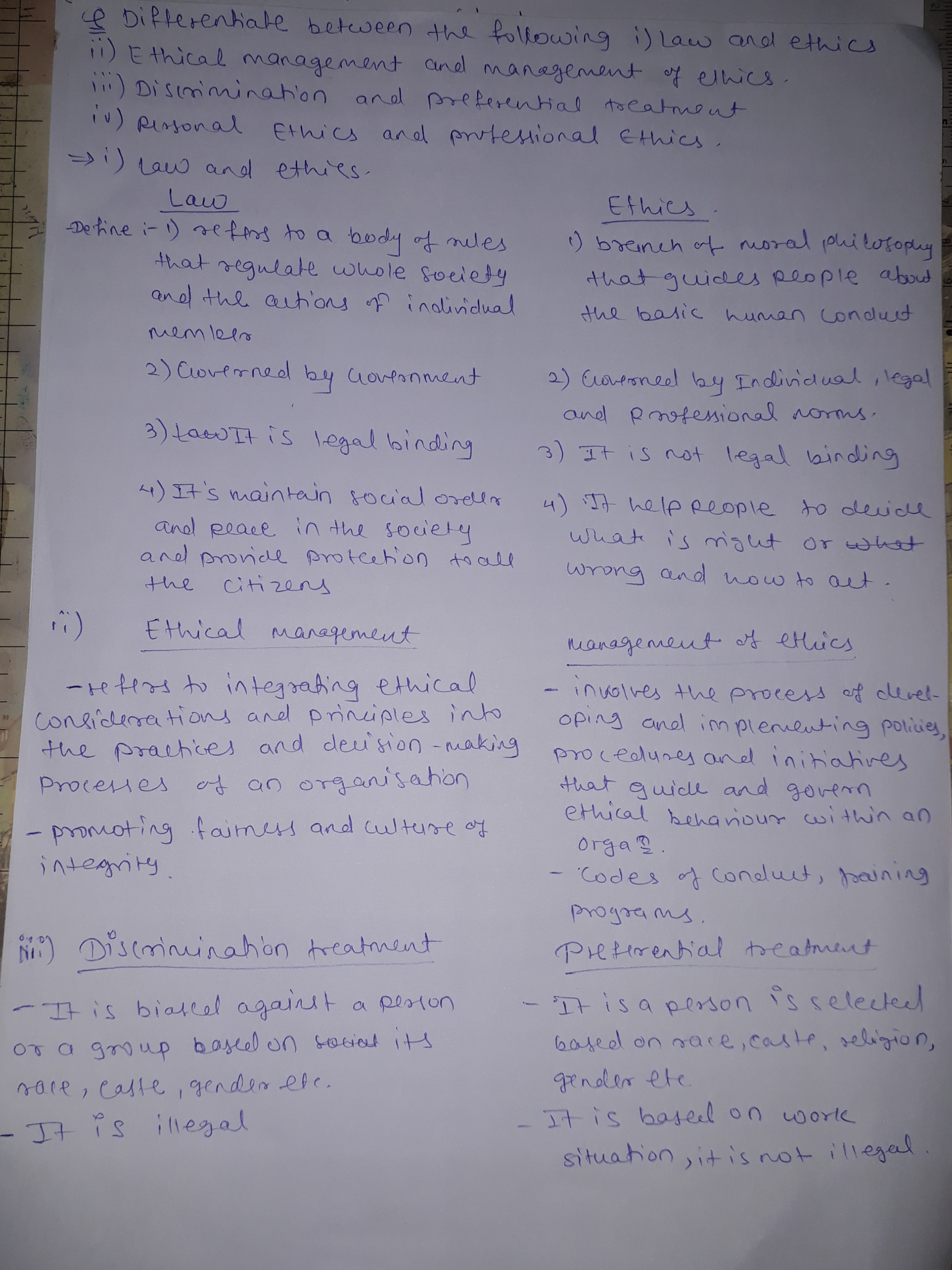 Law refers to the set of rules and regulations enforced by a government or authority, whereas ethics refers to a set of moral principles or values that guide an individual or a group’s behavior. Law and ethics can intersect, but they are not the same. Laws are mandatory and enforced by the government, and a violation of the law can result in legal action. Ethics, on the other hand, are voluntary and not enforced by the government, but rather by an individual’s moral compass.