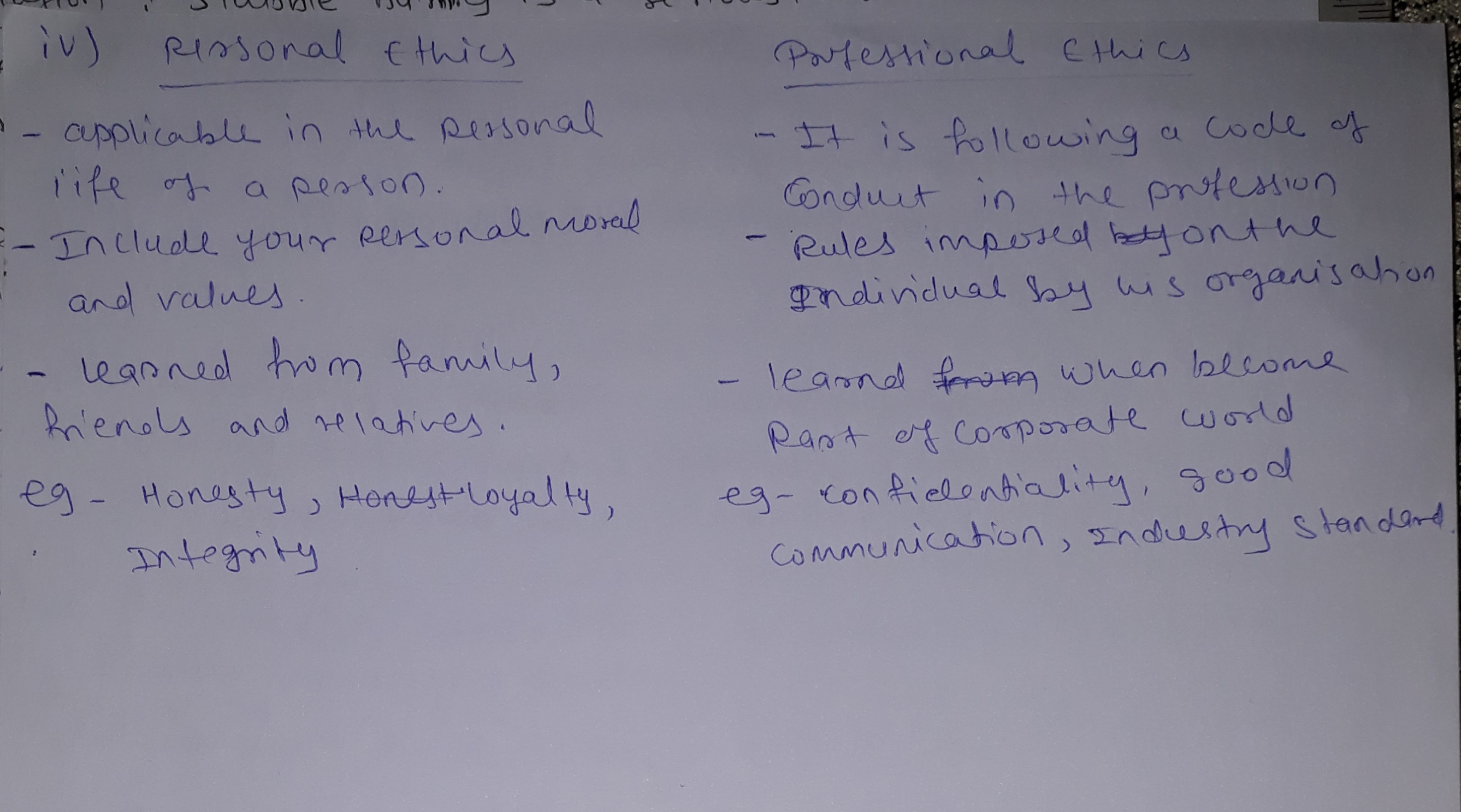 Personal ethics refers to an individual’s moral beliefs and values that guide their personal behavior and decision-making. Professional ethics, on the other hand, are the principles and values that govern the behavior of individuals in a professional setting. Professional ethics may differ from personal ethics, as professionals are held to higher standards of conduct and must adhere to specific codes of ethics within their profession.