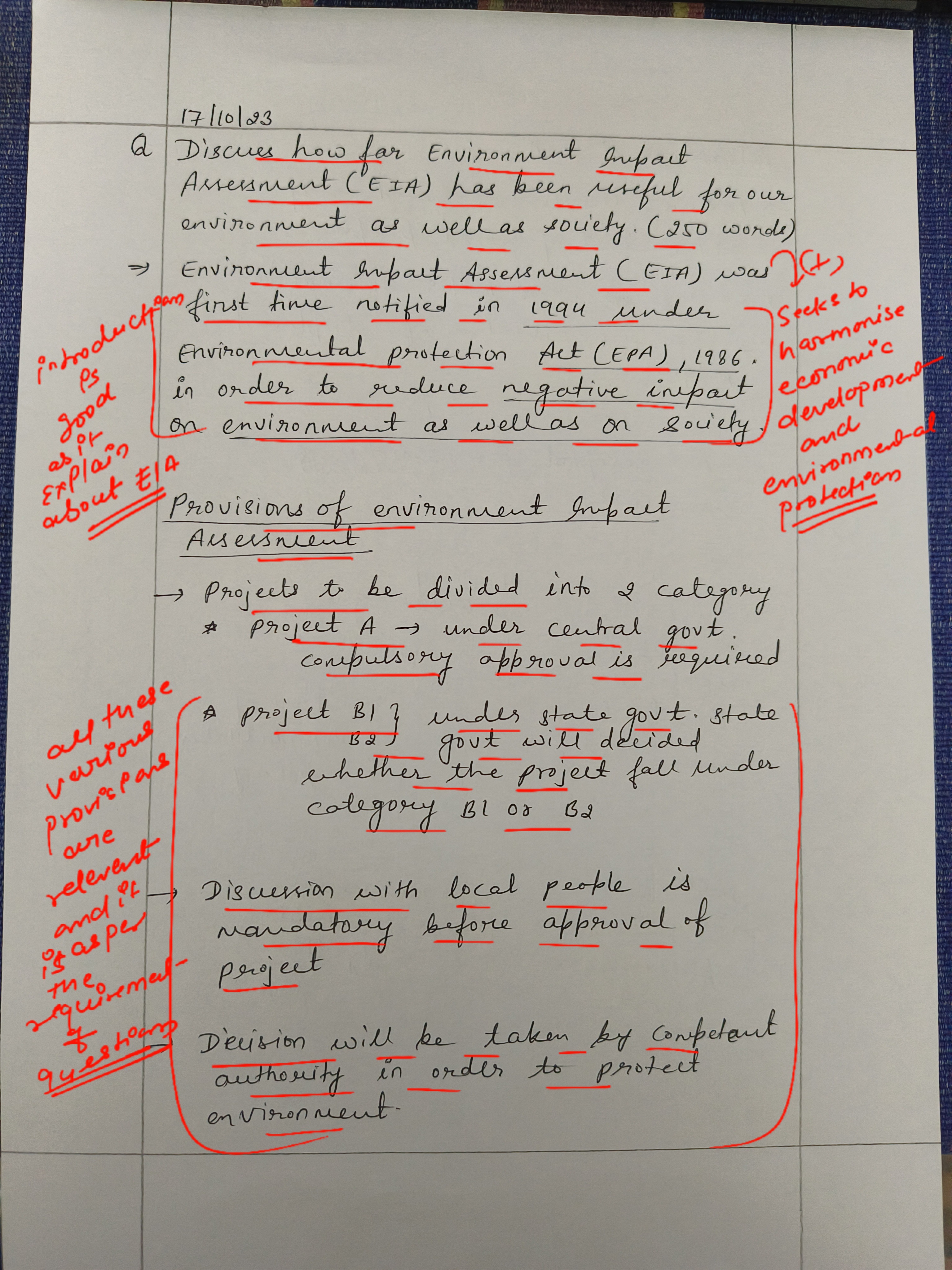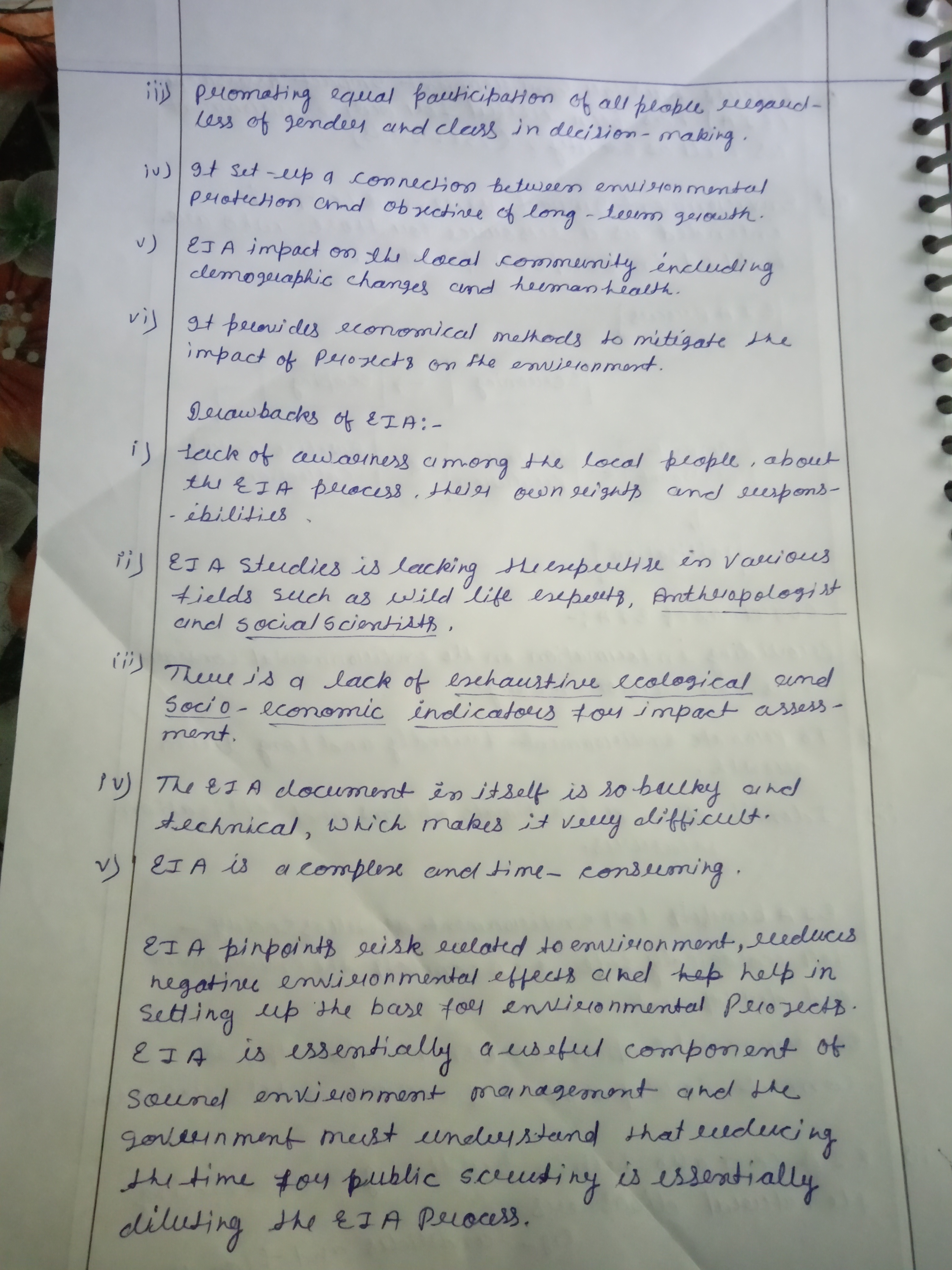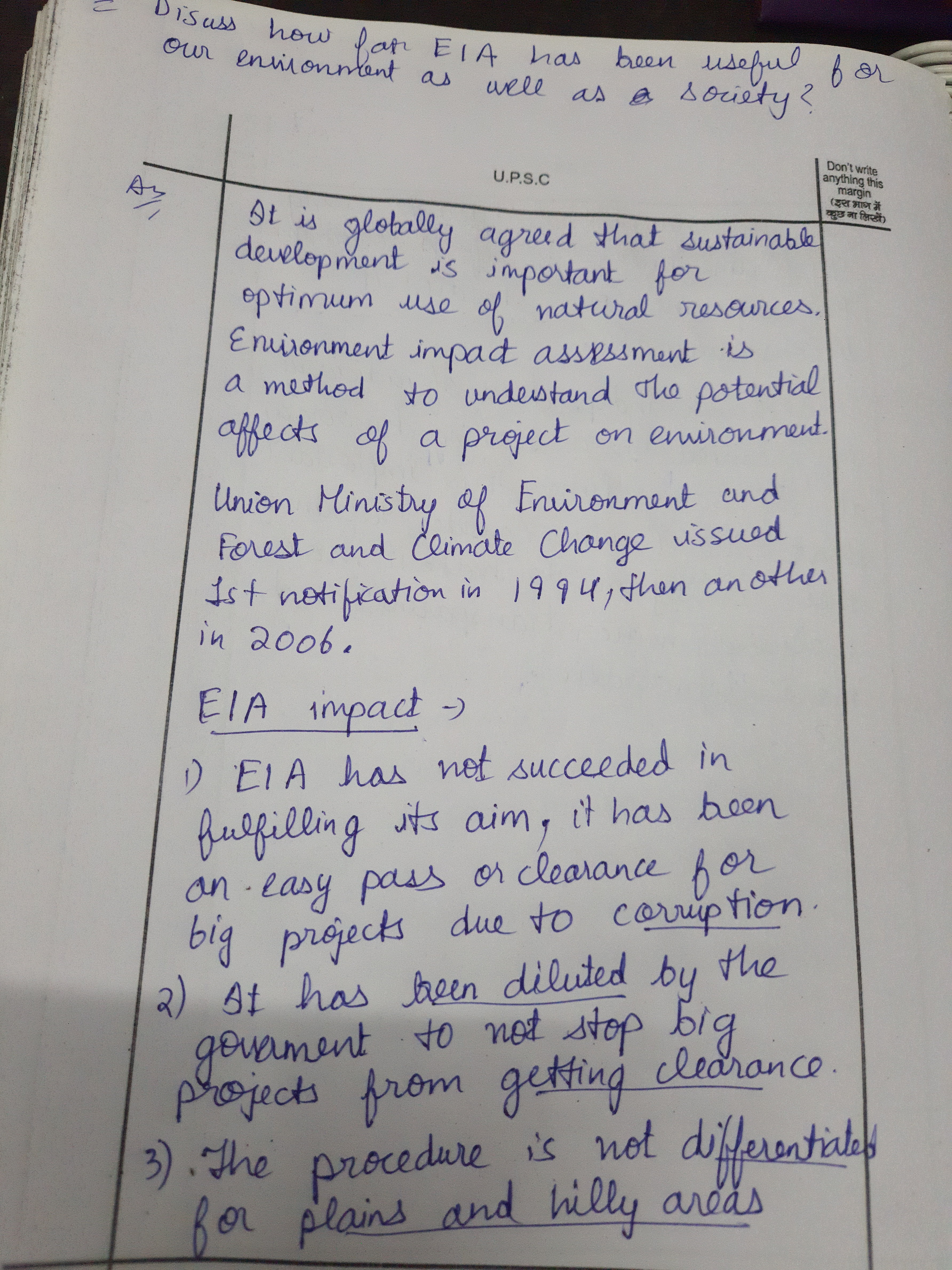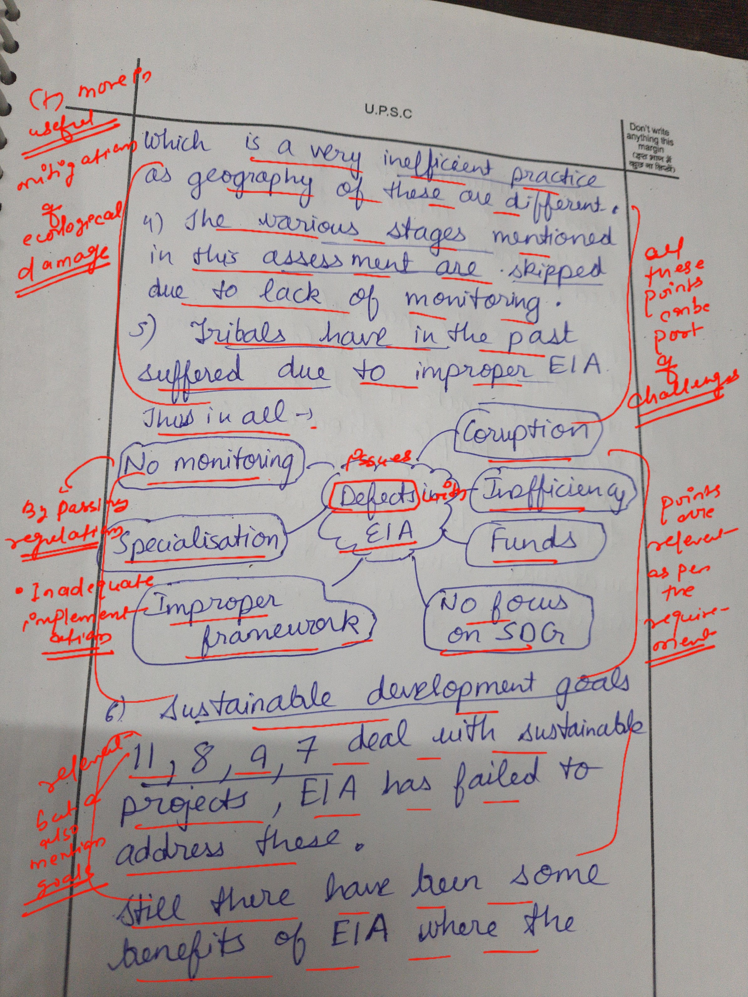 - Address the criticism of EIA overlooking socio-economic impacts on communities, using instances like the Sardar Sarovar Dam.
