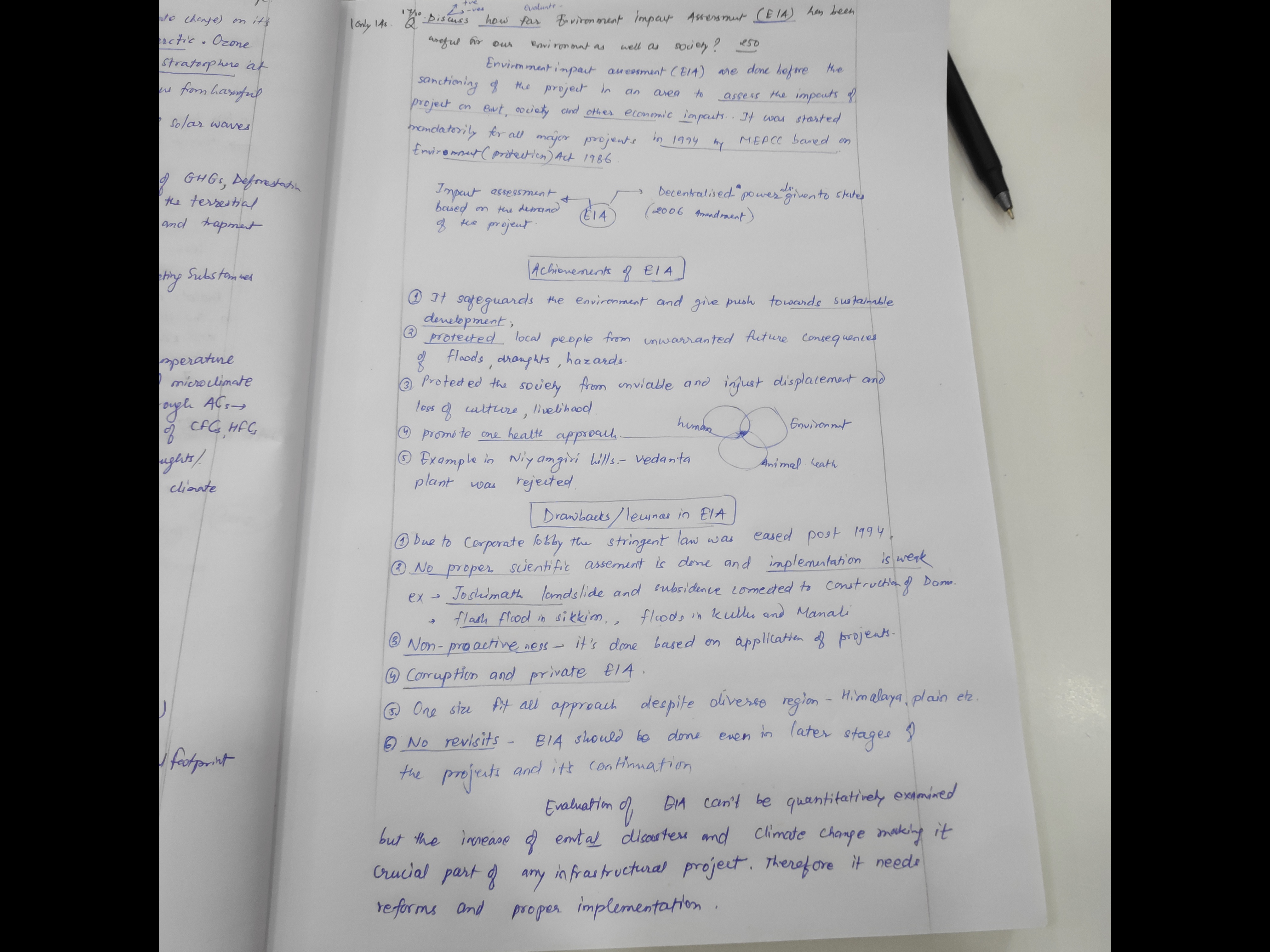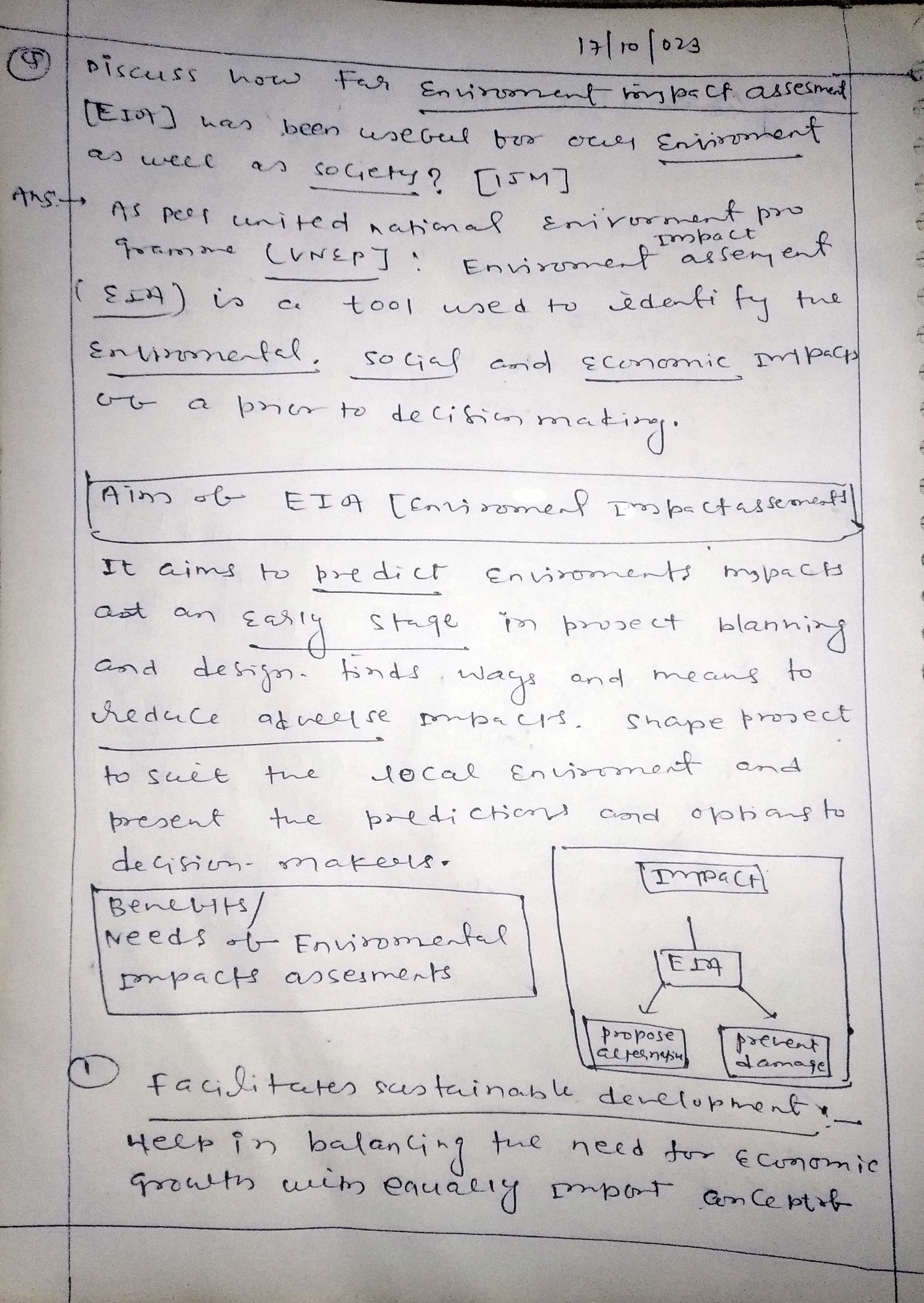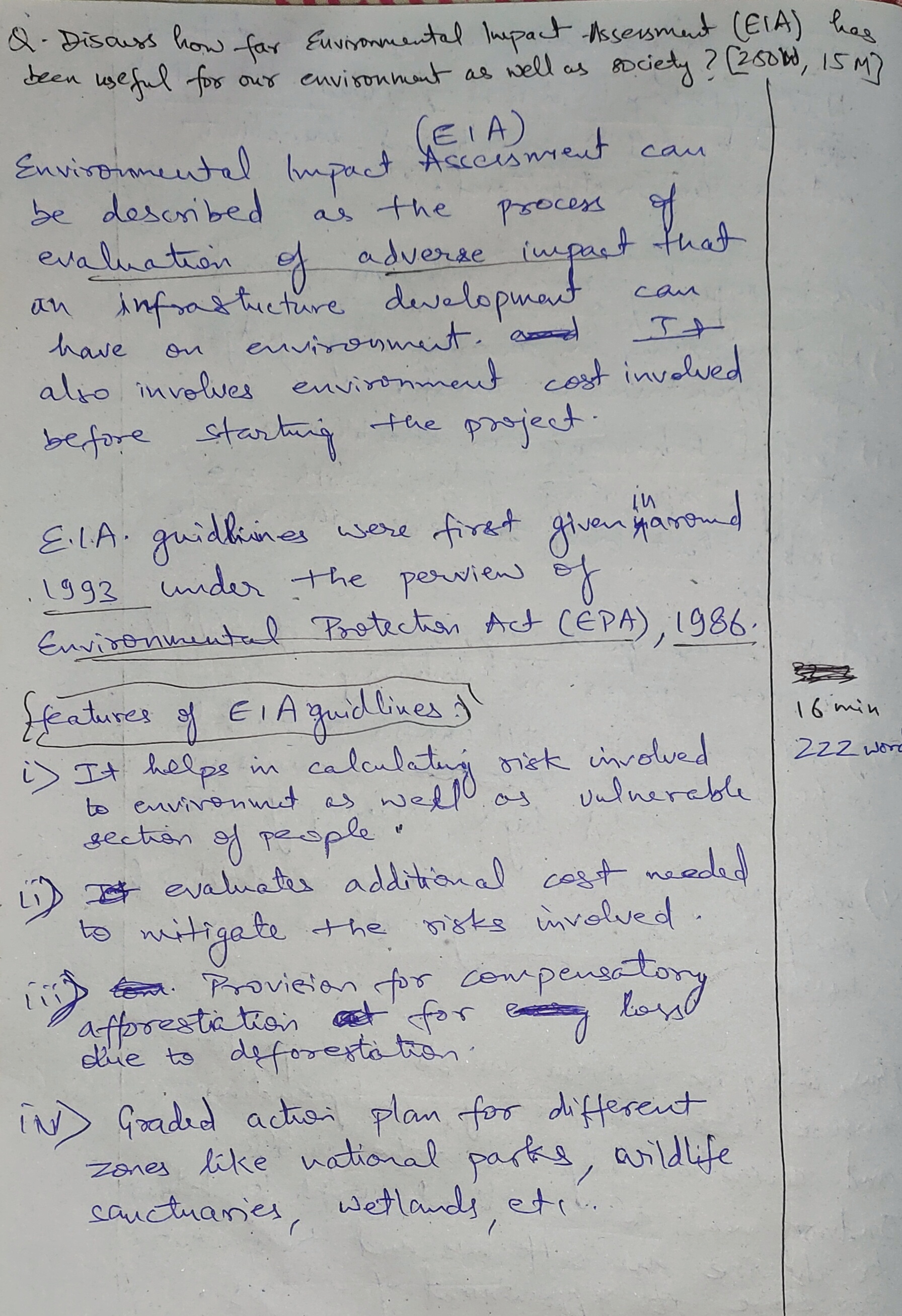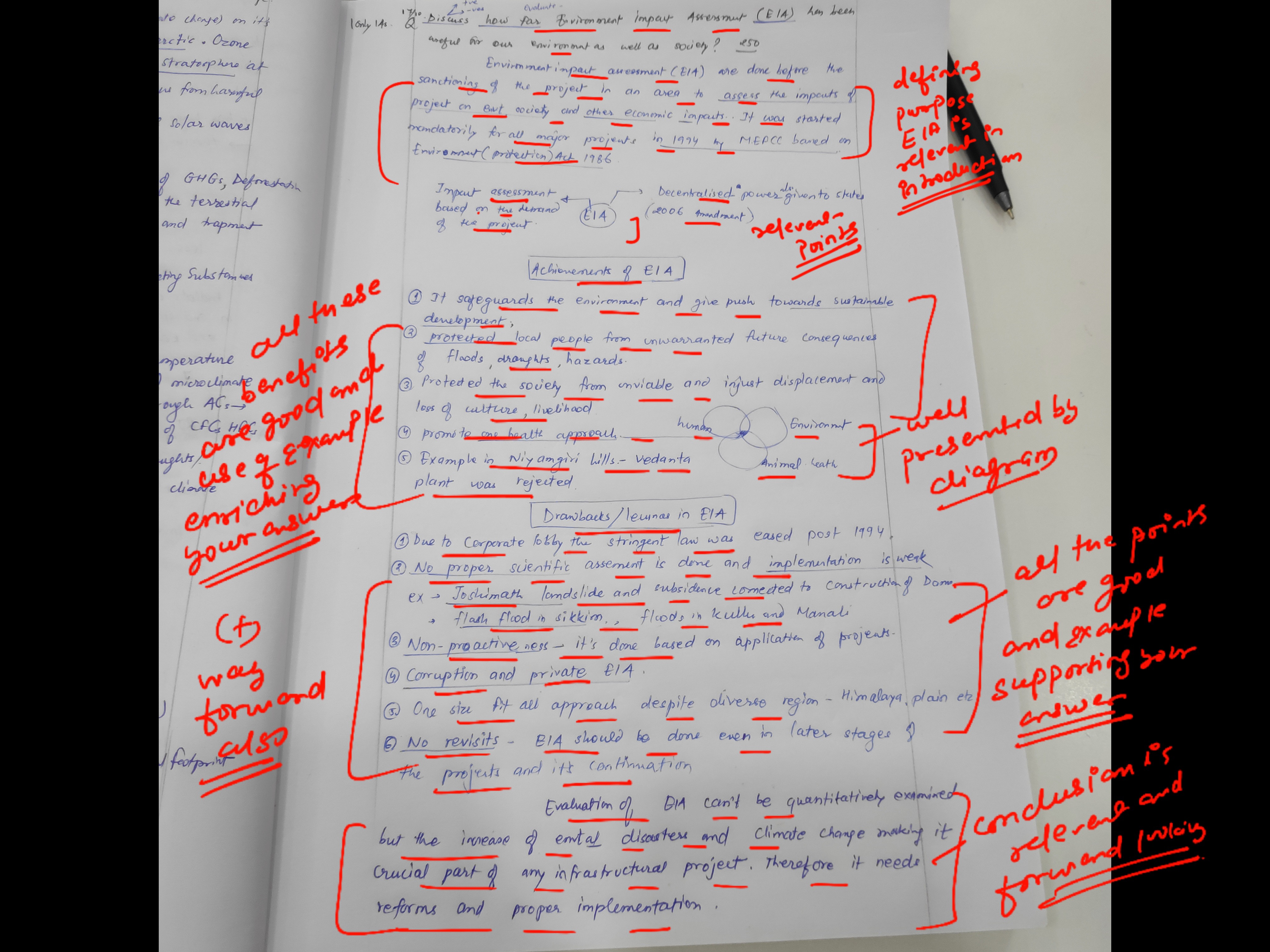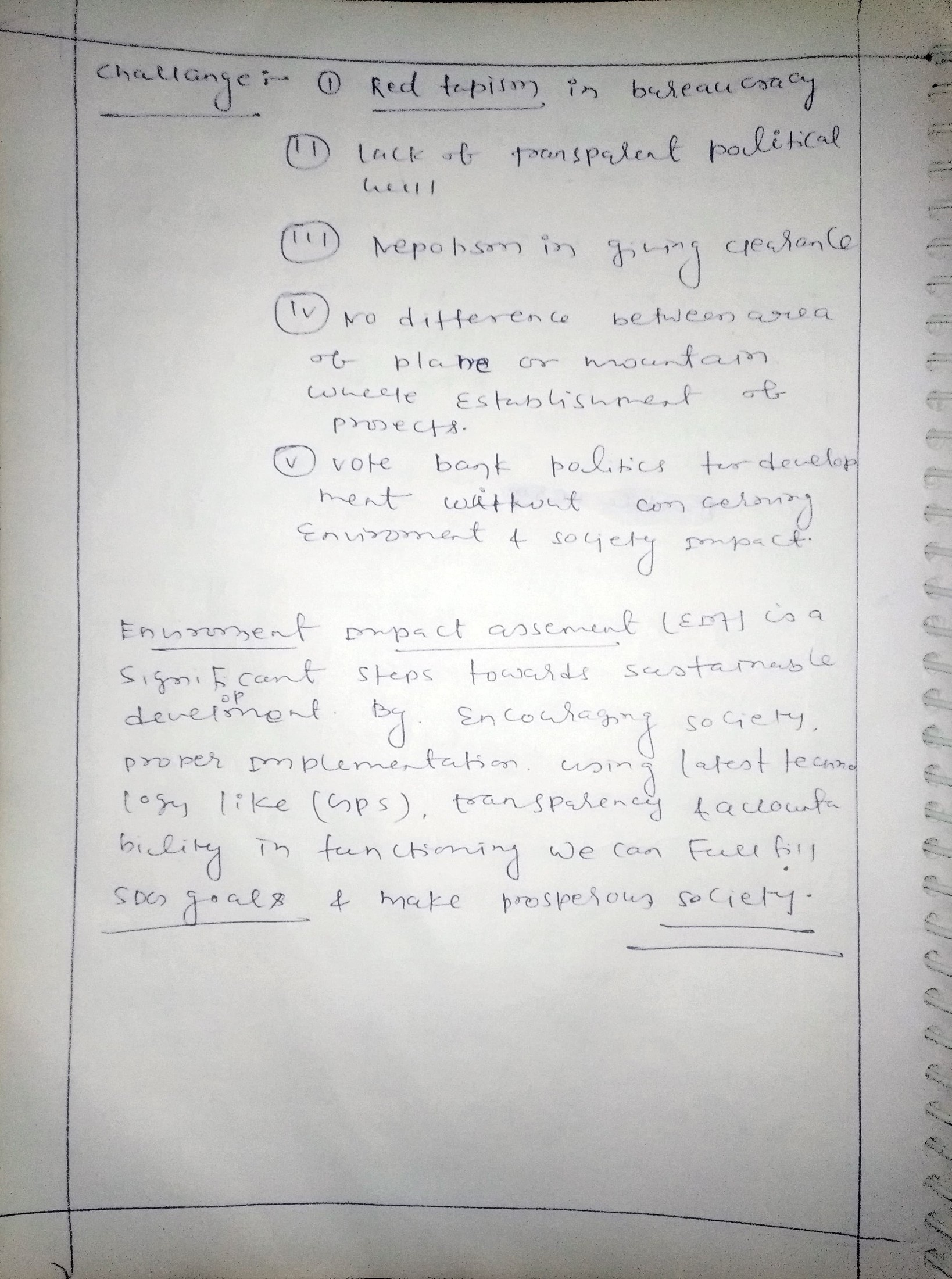 - Address the criticism of EIA overlooking socio-economic impacts on communities, using instances like the Sardar Sarovar Dam.