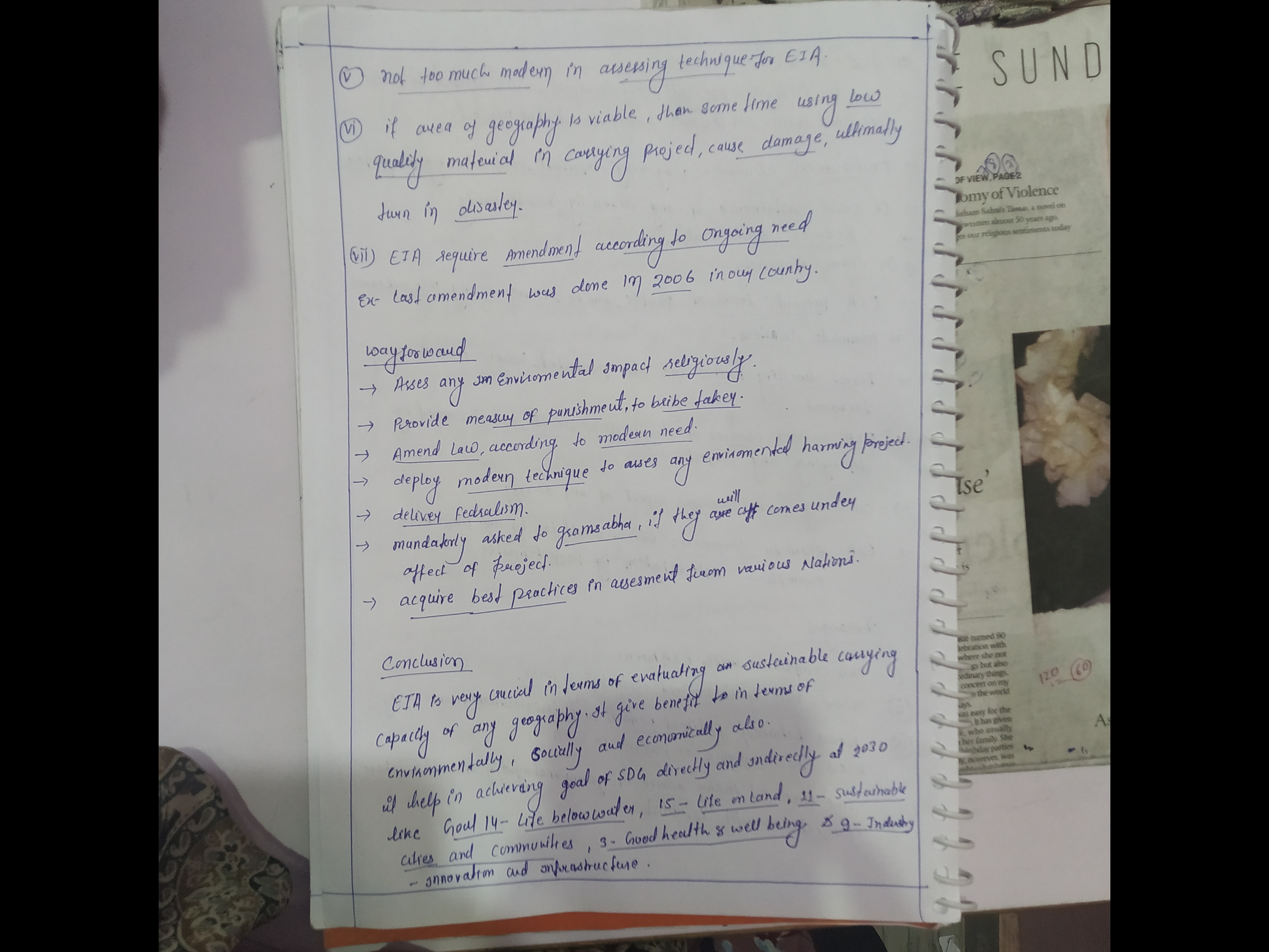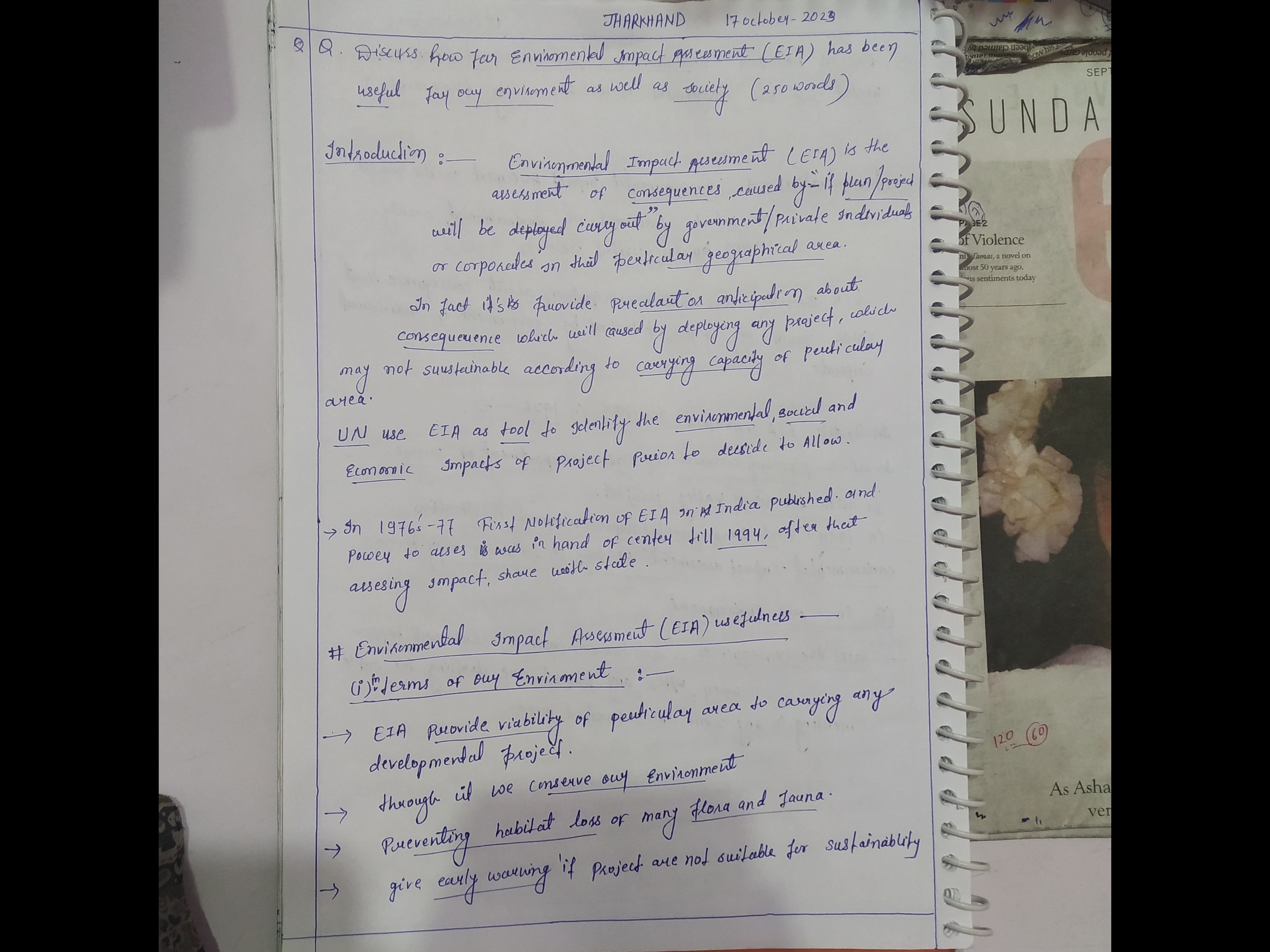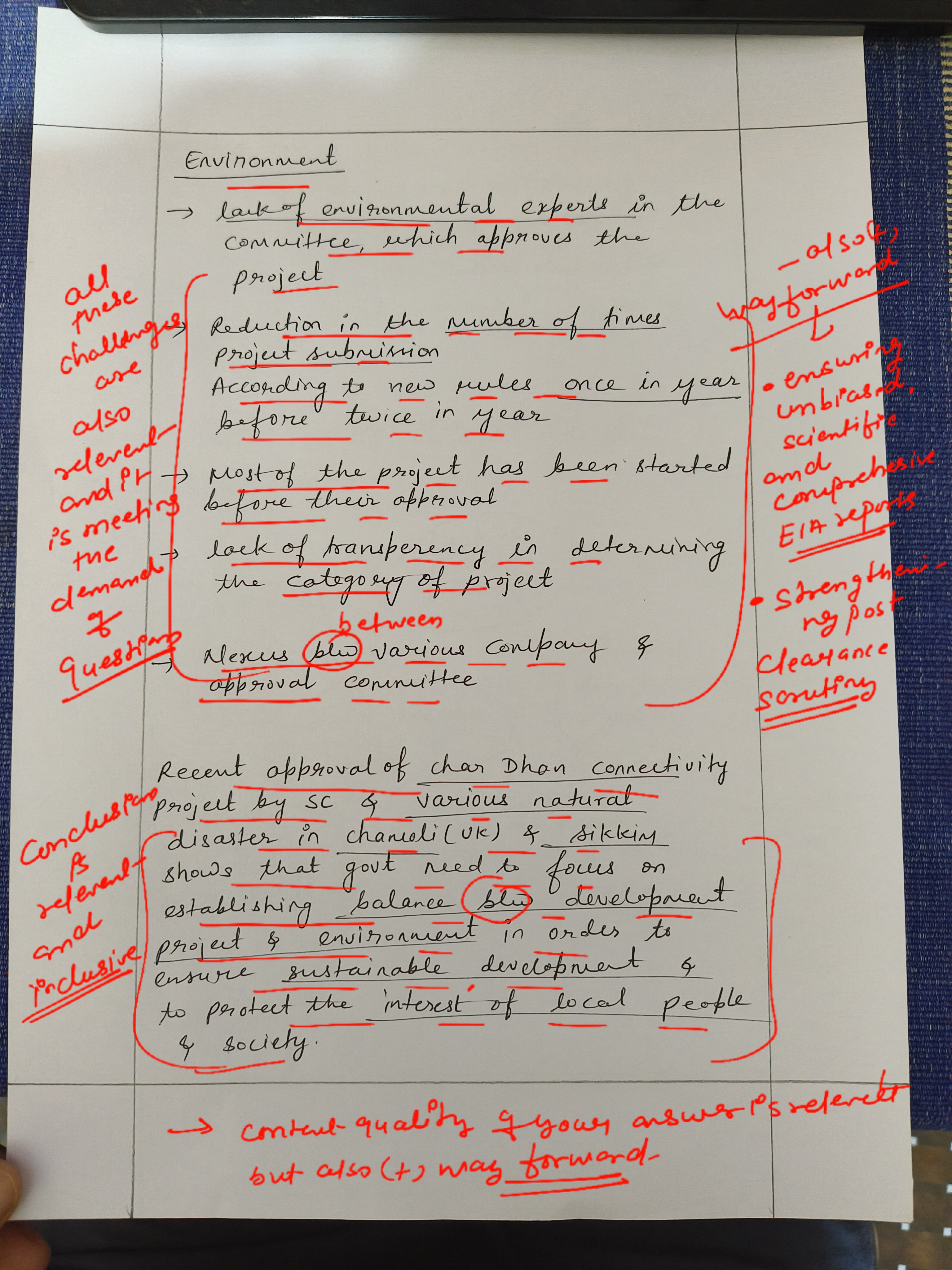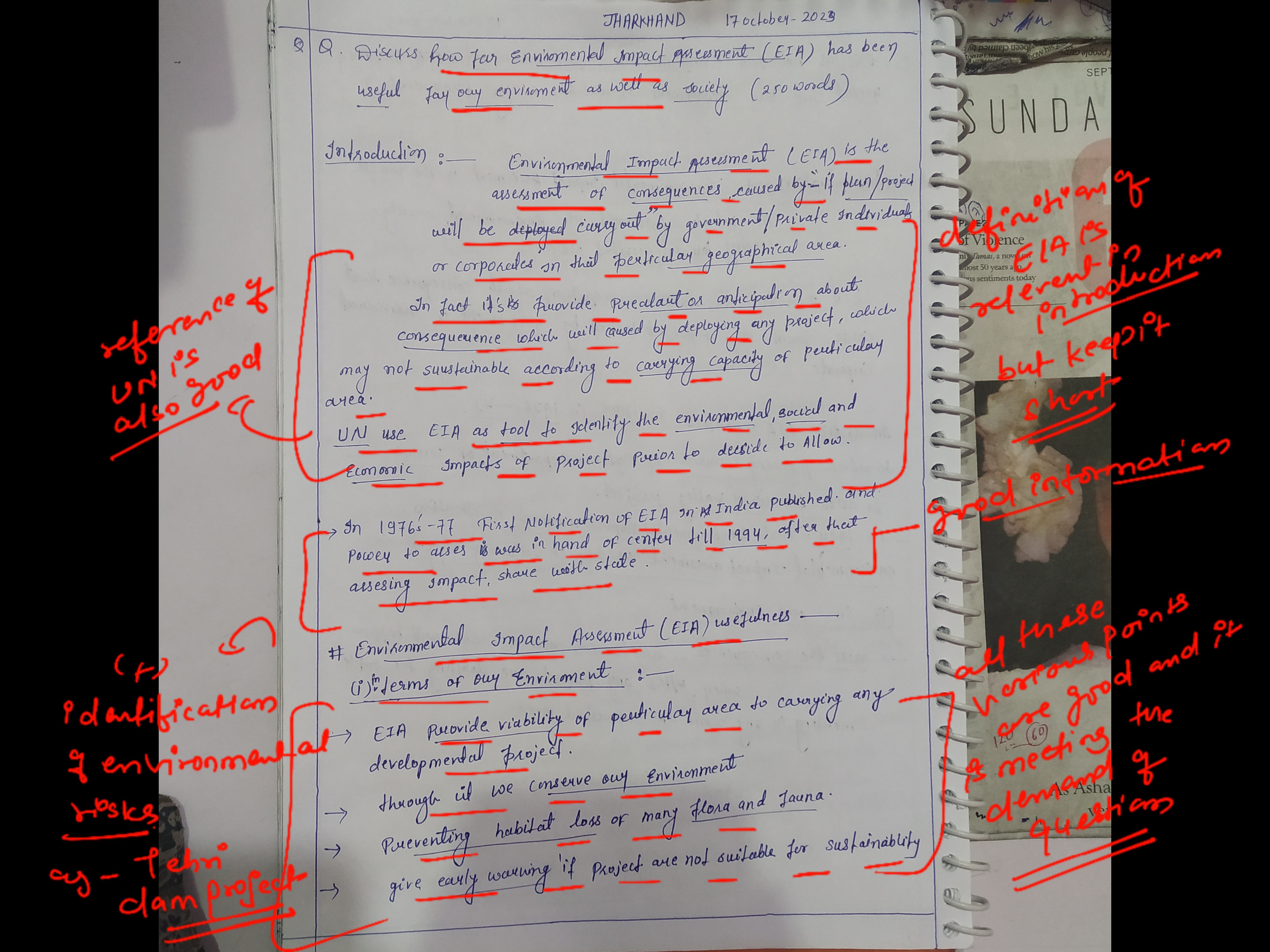 - Address the criticism of EIA overlooking socio-economic impacts on communities, using instances like the Sardar Sarovar Dam.
