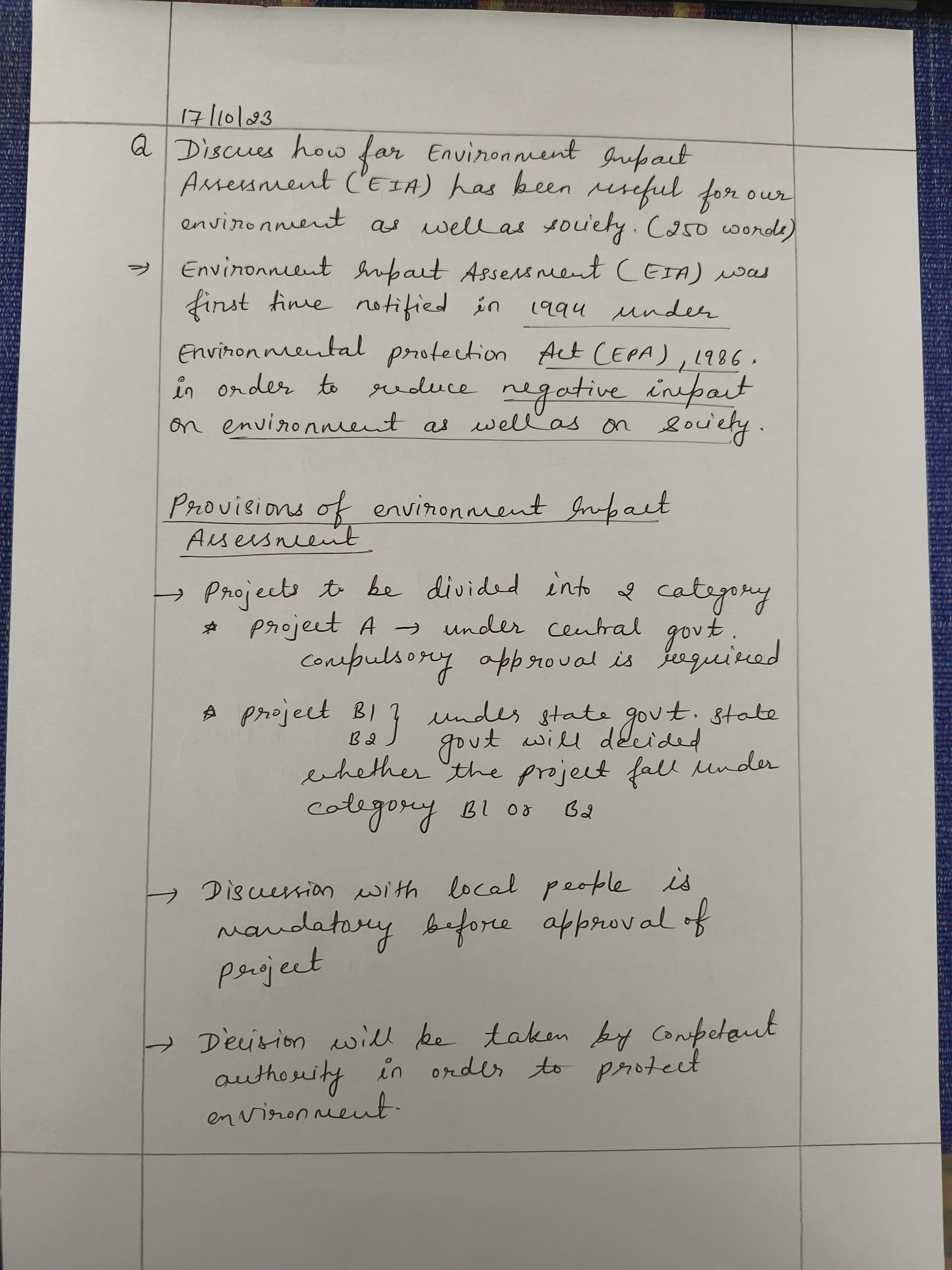- Introduction: Start by defining the Environmental Impact Assessment (EIA) and its fundamental role in integrating environmental concerns with developmental activities.