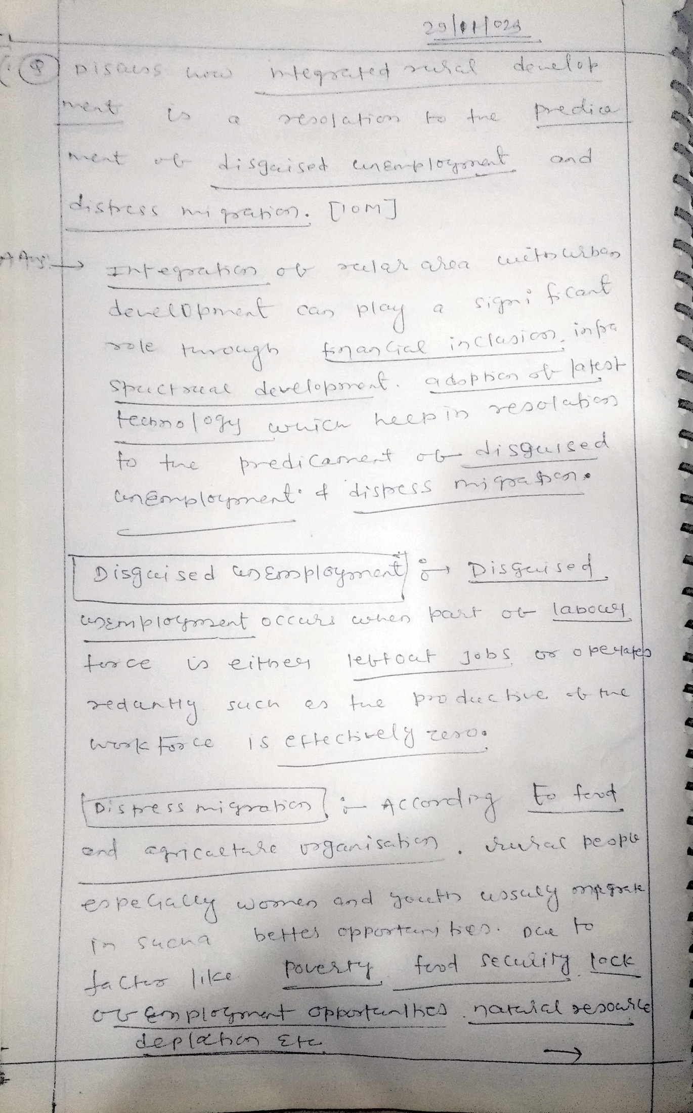 - Describe the ways through which IRD helps to solve the issues of disguised unemployment and distress migration.