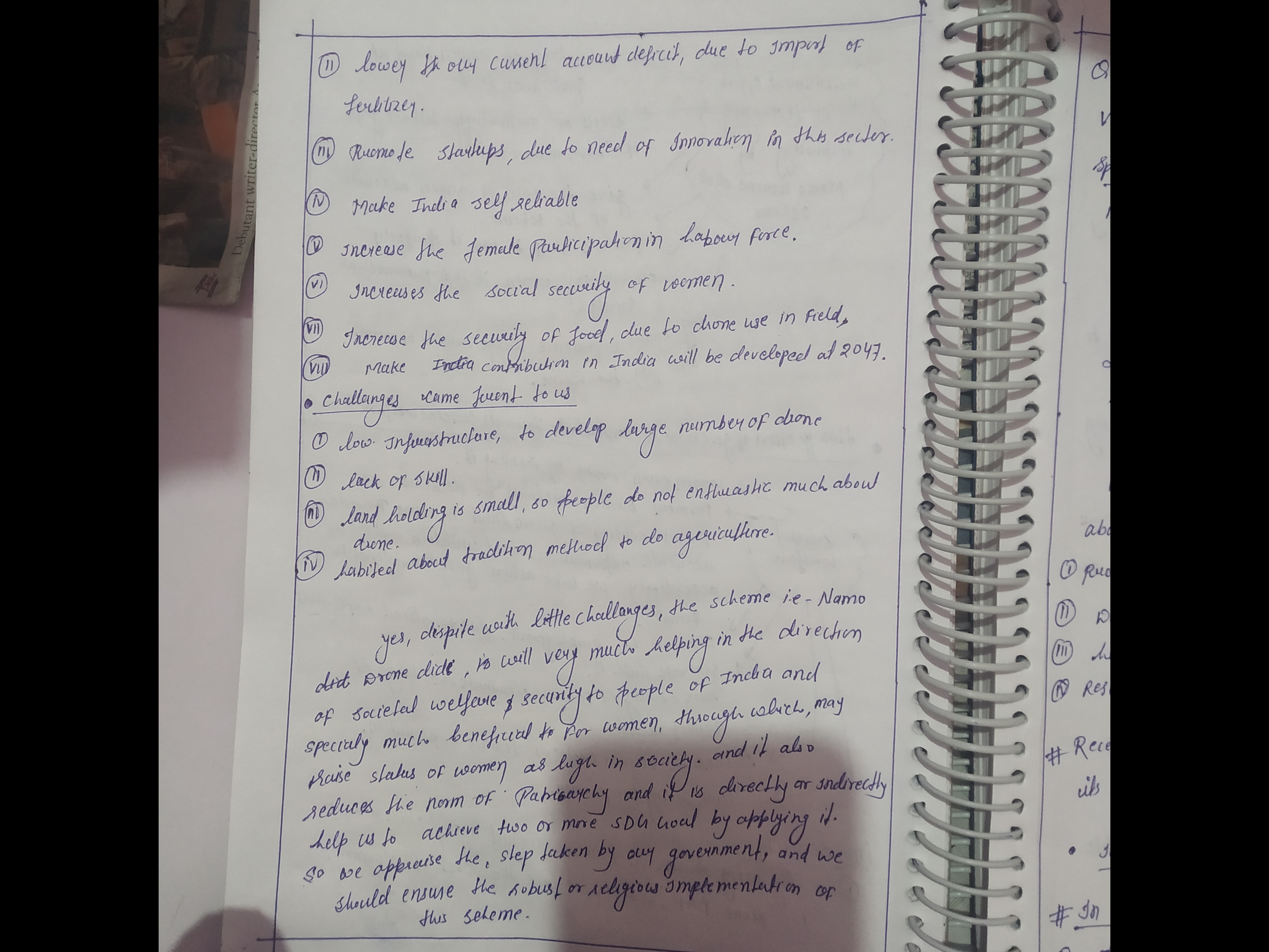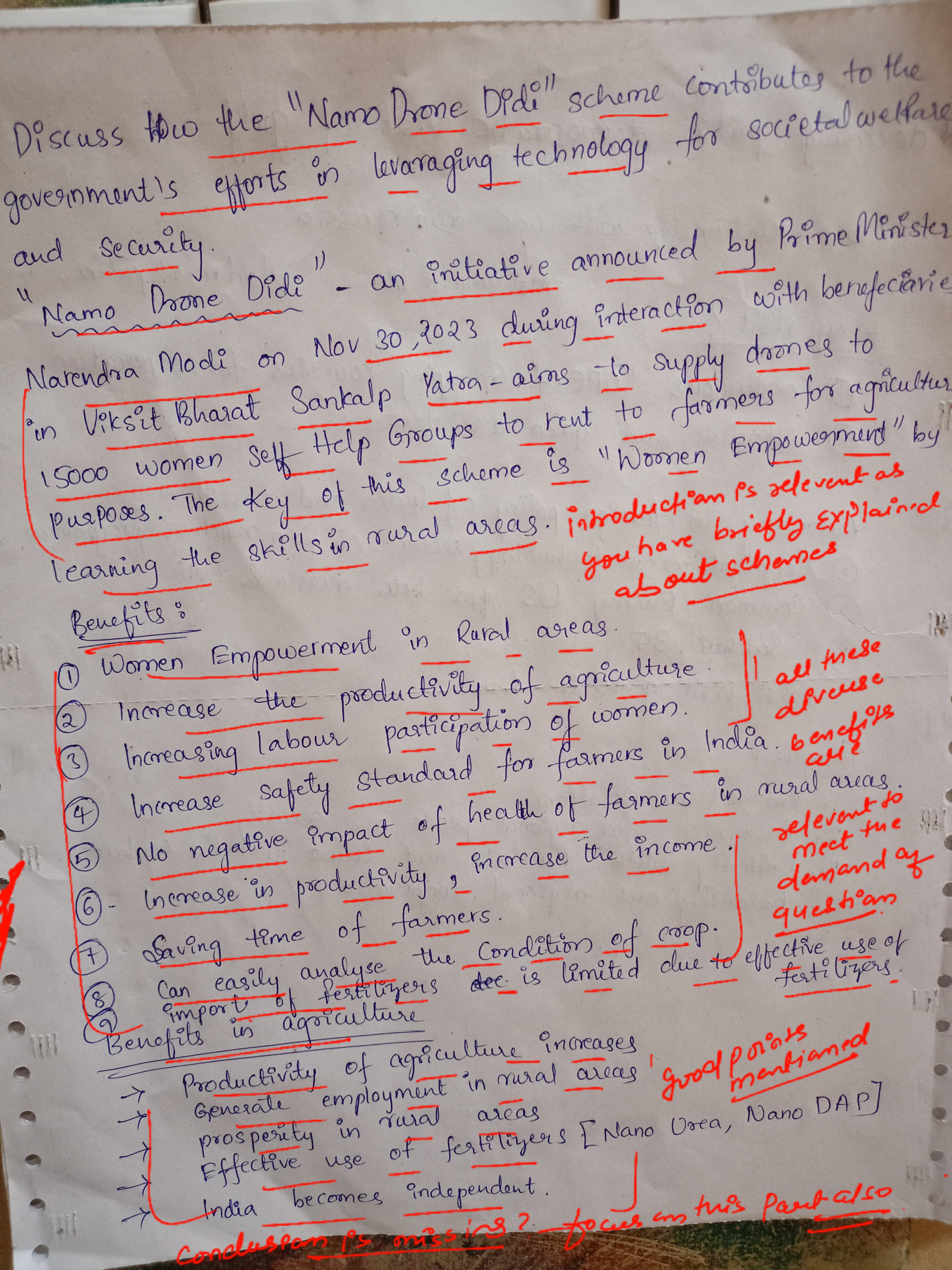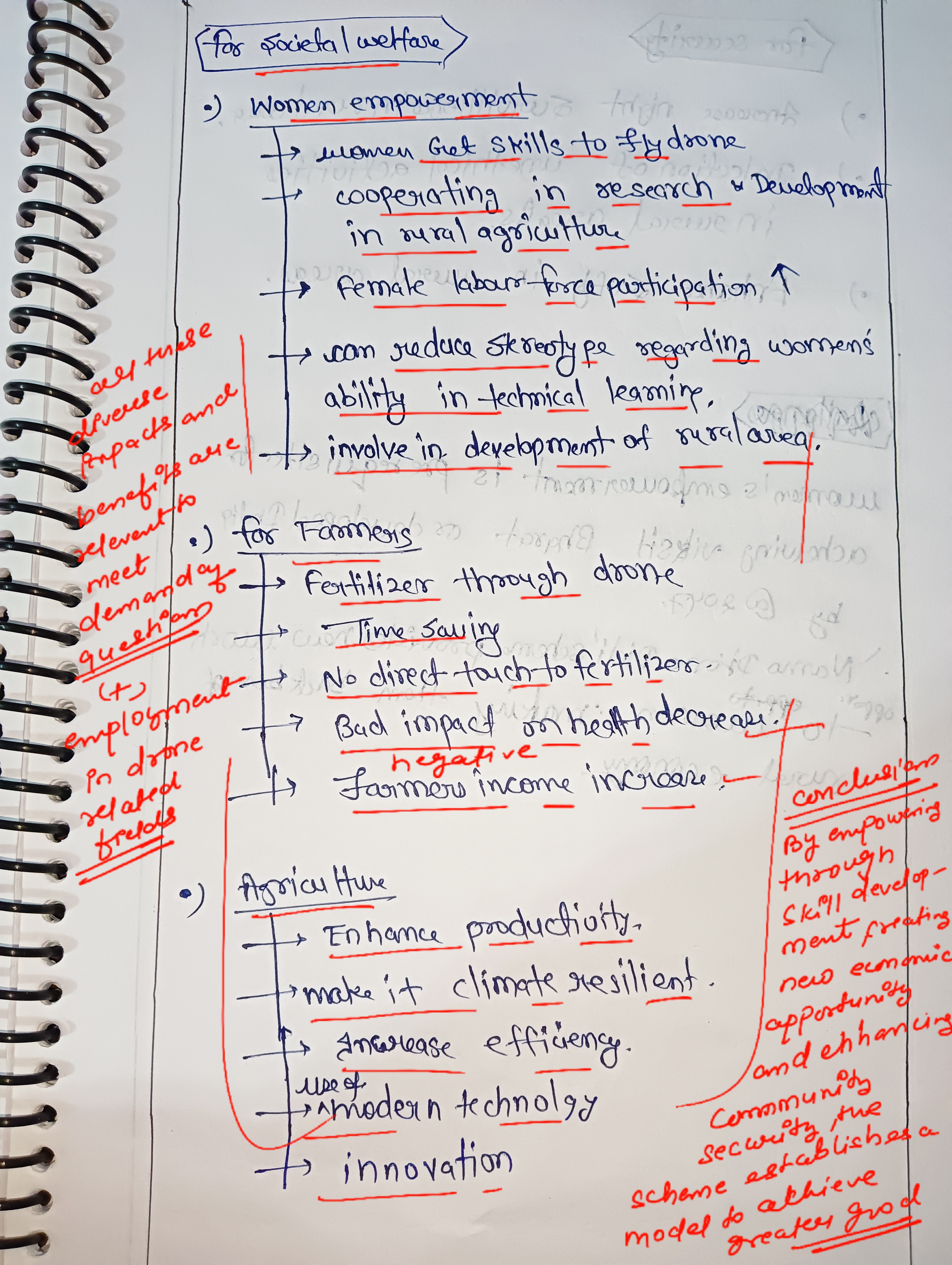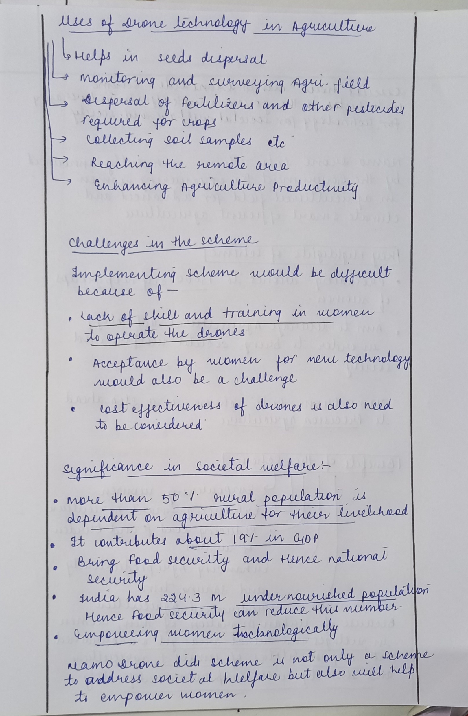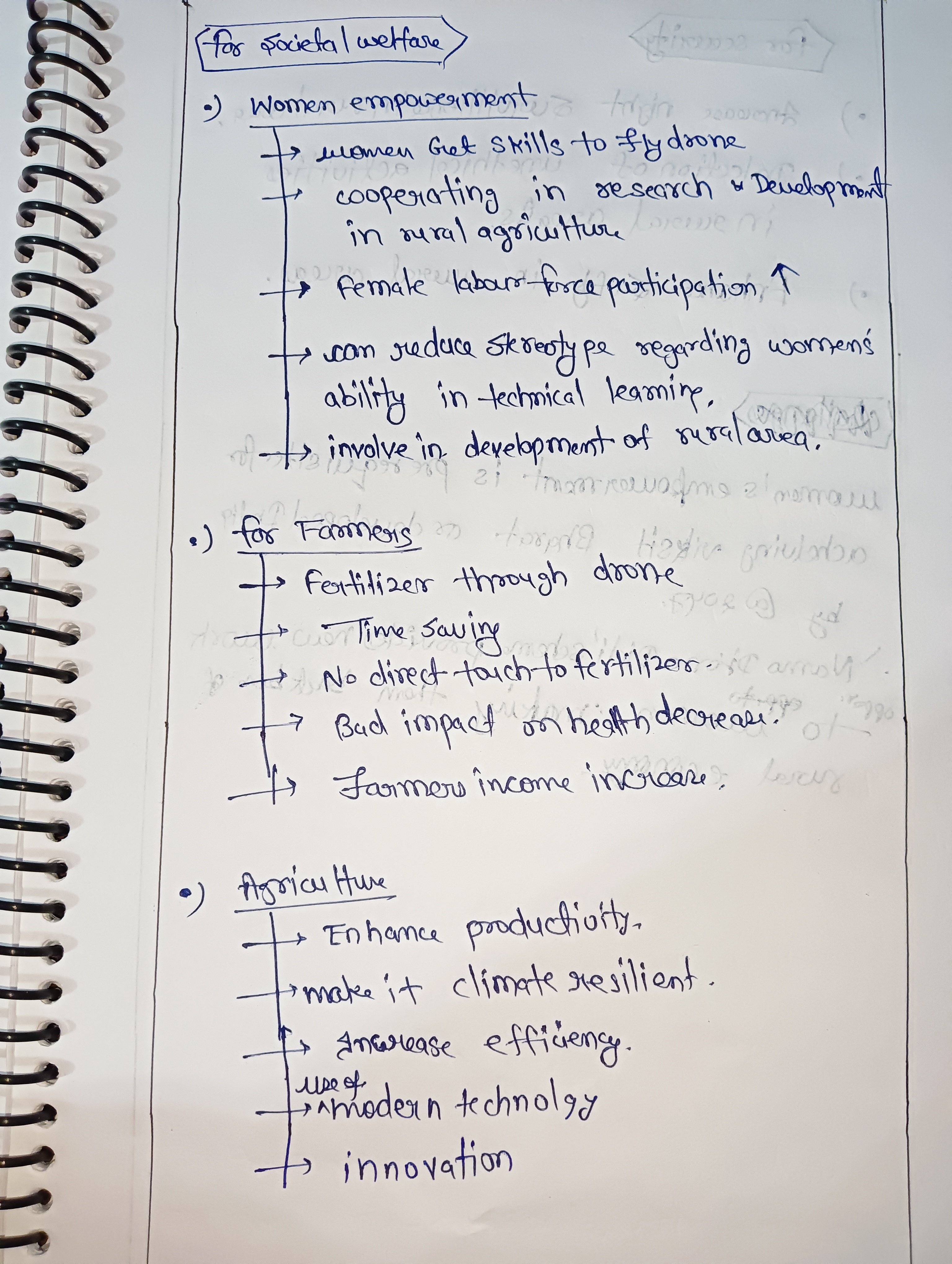 - Enhancing Agricultural Productivity and Efficiency: By empowering women as drone pilots, the scheme strengthens agrarian family culture and improves agricultural efficiency, contributing to societal welfare.