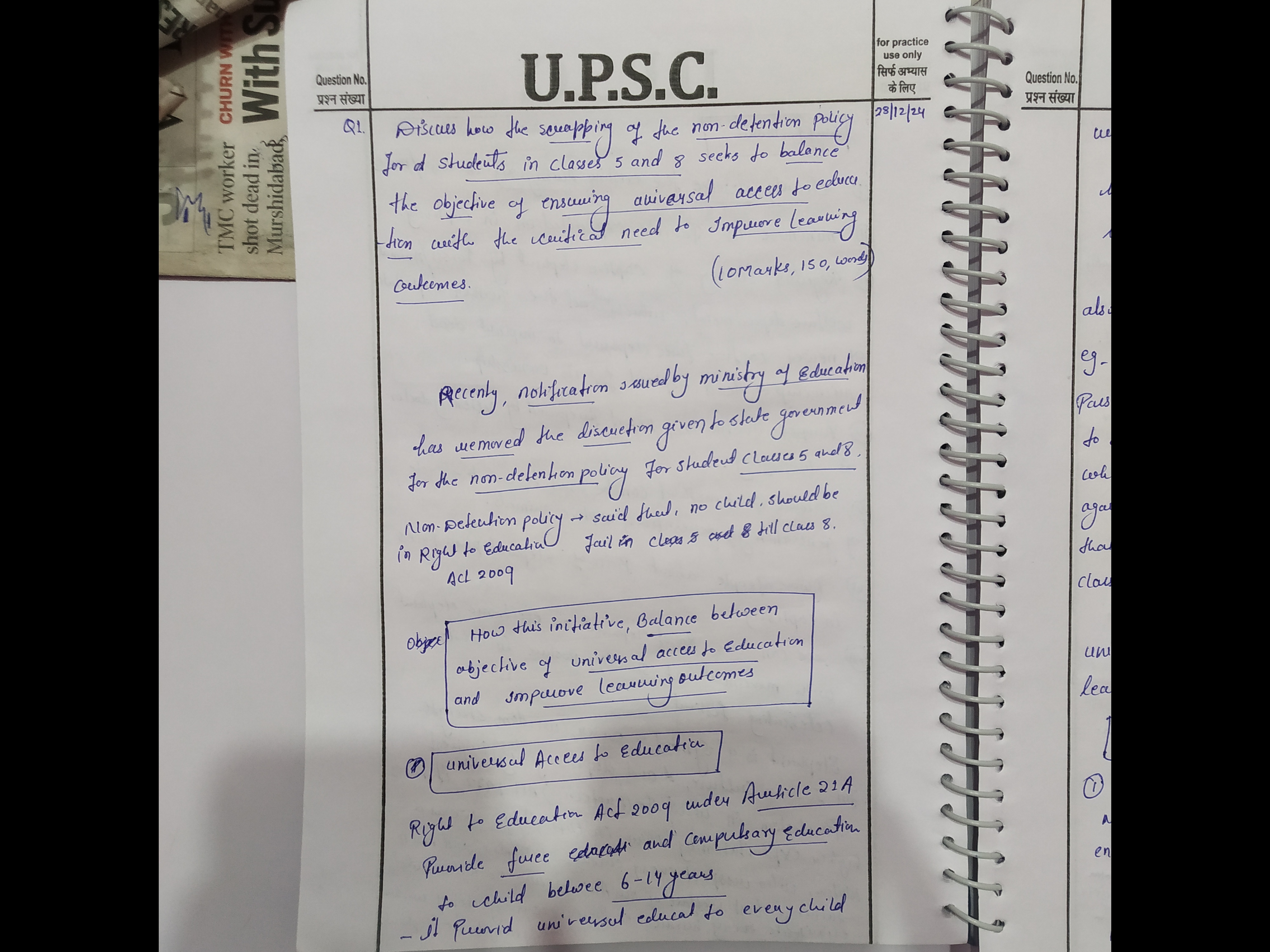 - Discuss how the scrapping of the no-detention policy for students in classes 5 and 8 aligns with the objective of ensuring universal access to education.