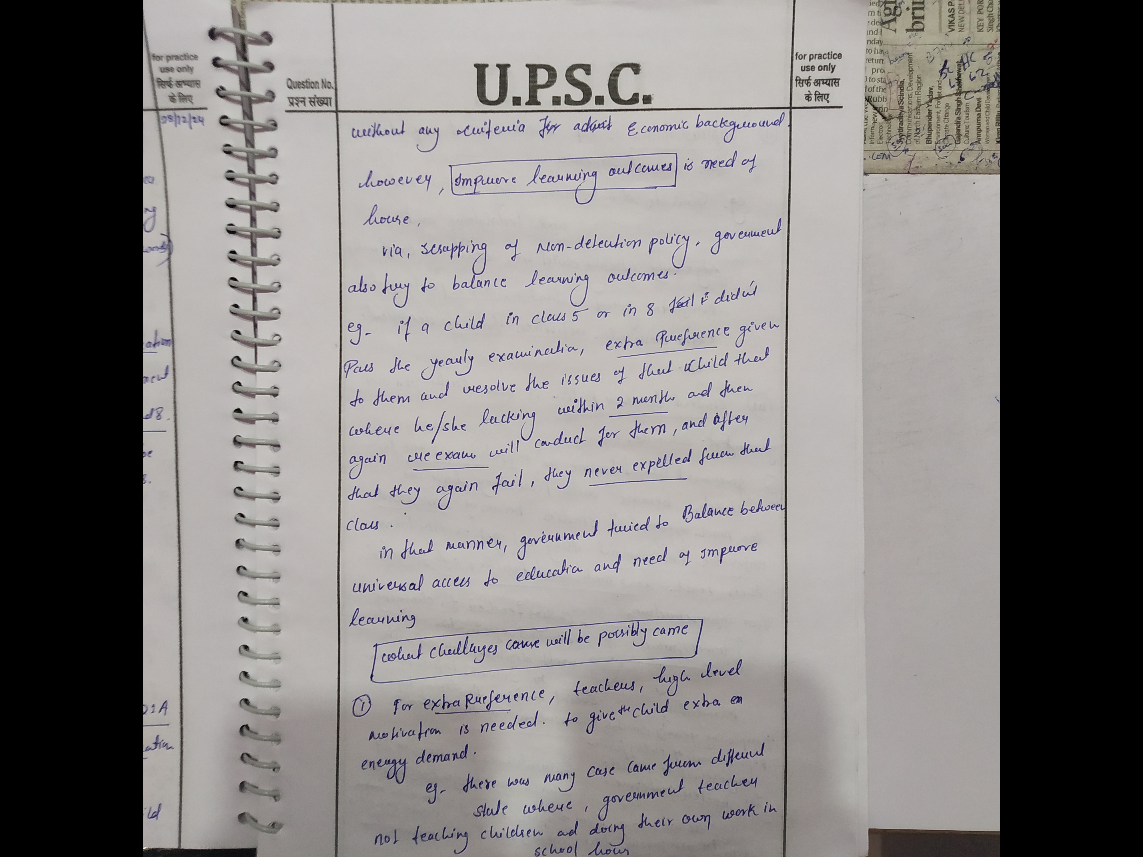For example: After the policy change, students failing in grade 8 are offered another chance to appear for the exam, reducing dropout rates.