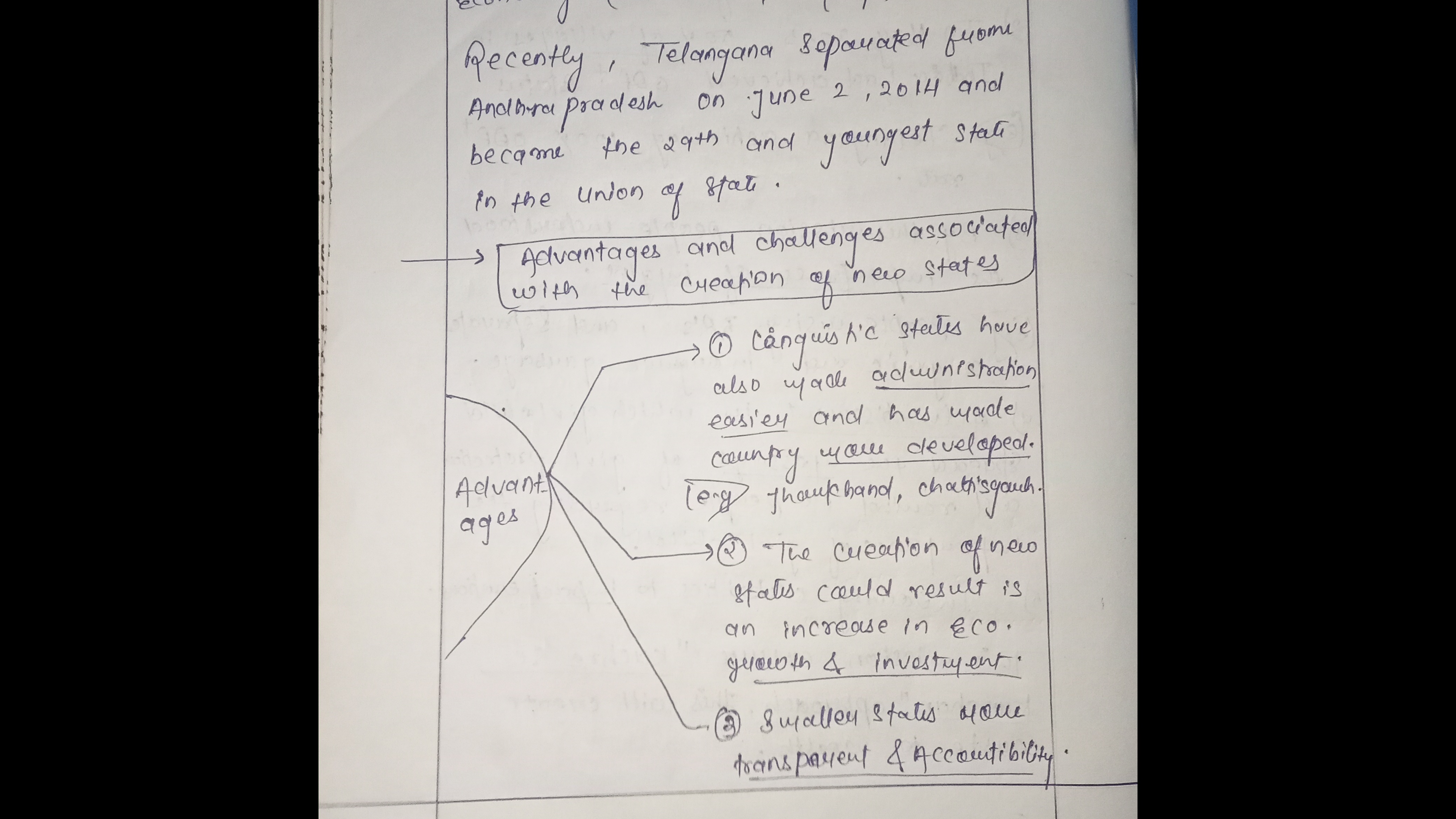 - The formation of Telangana, for example, was a result of distinct regional aspirations.