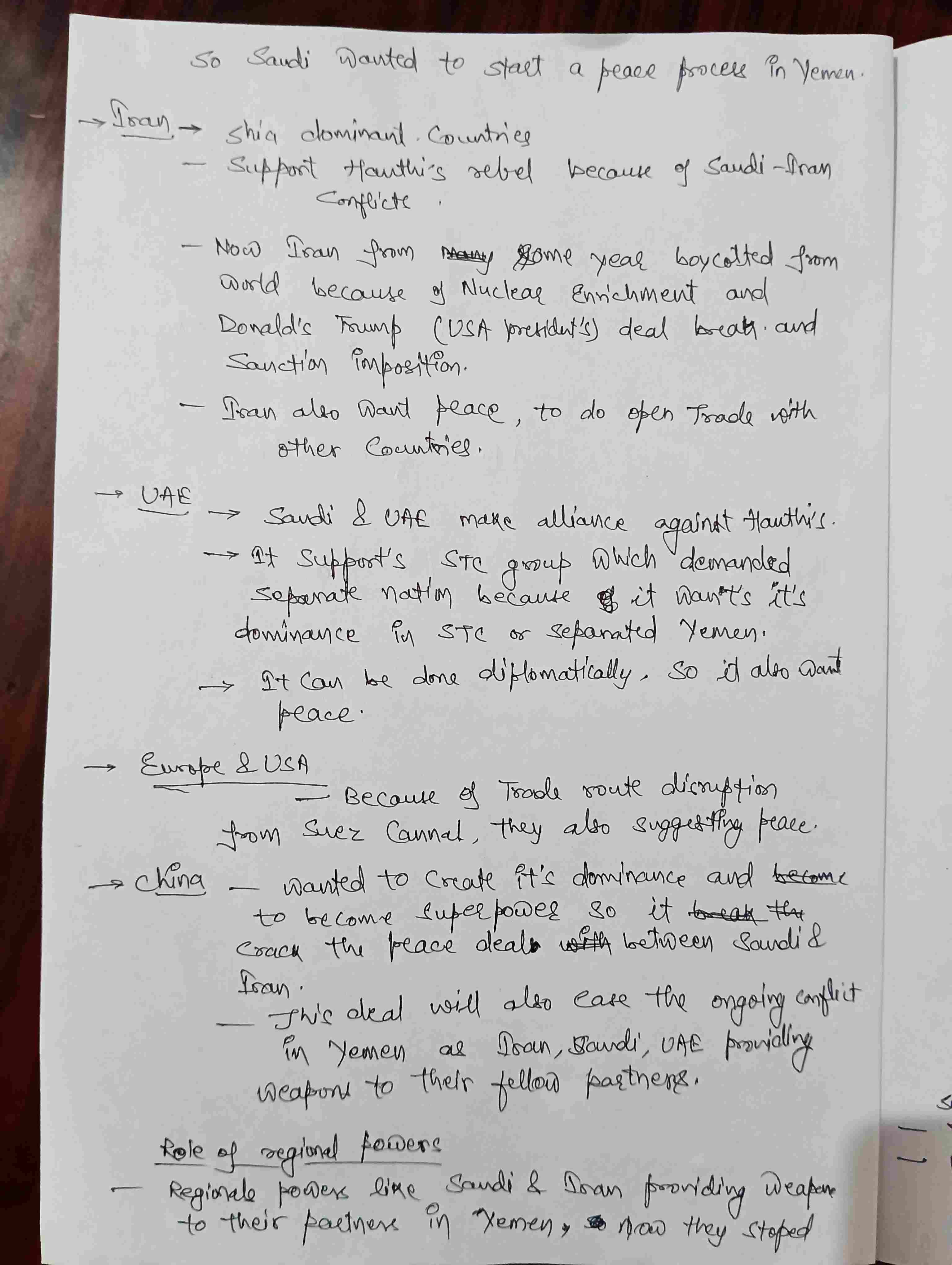 - Discuss the roles of Saudi Arabia and Iran, highlighting the regional rivalry that complicates the peace process.