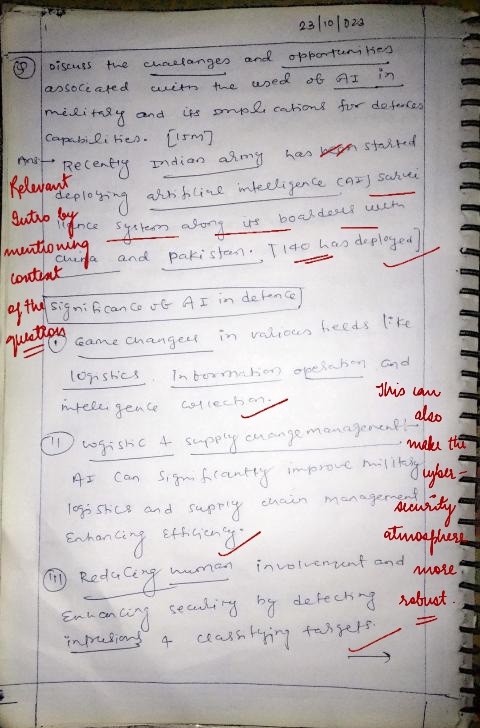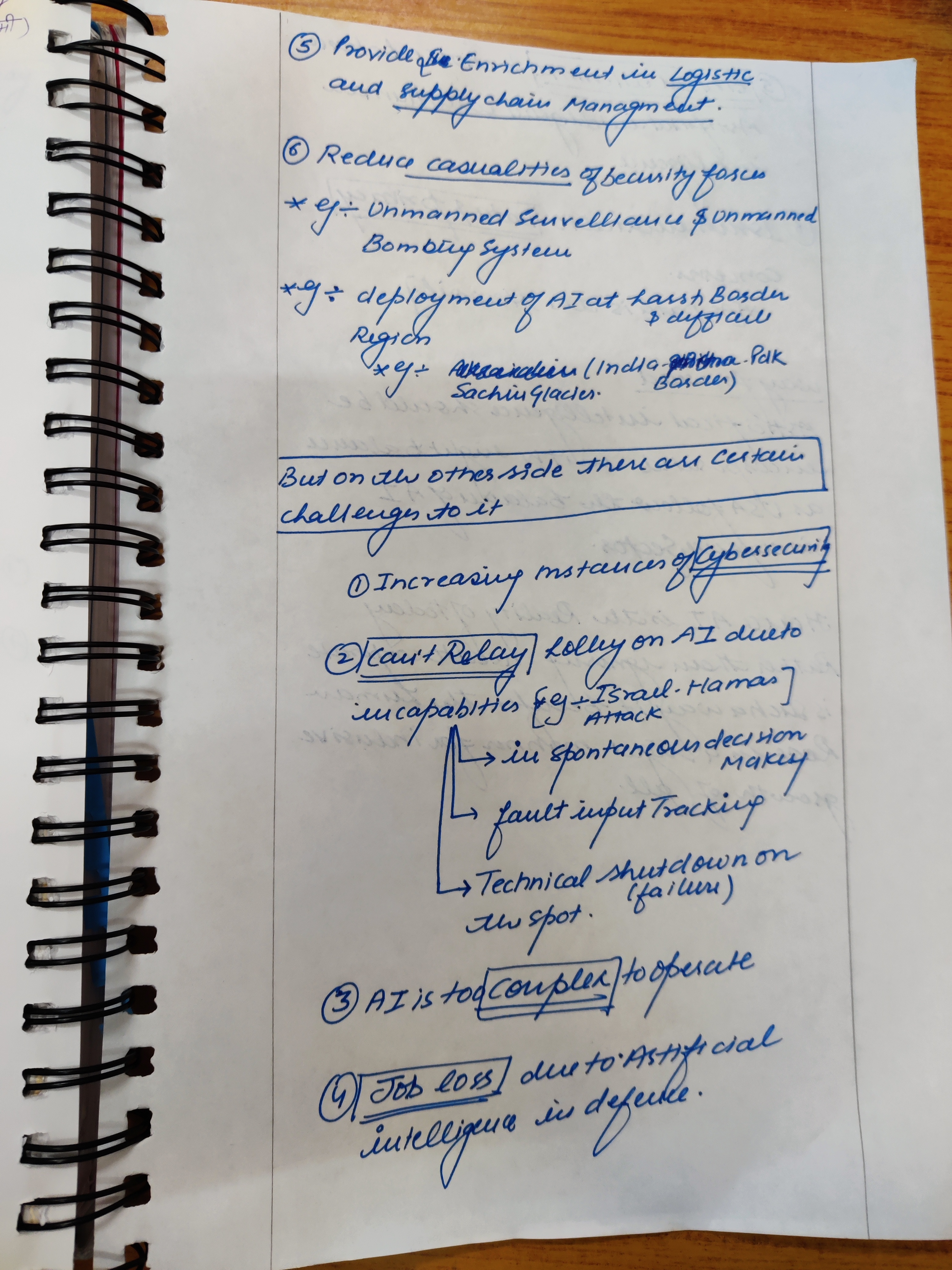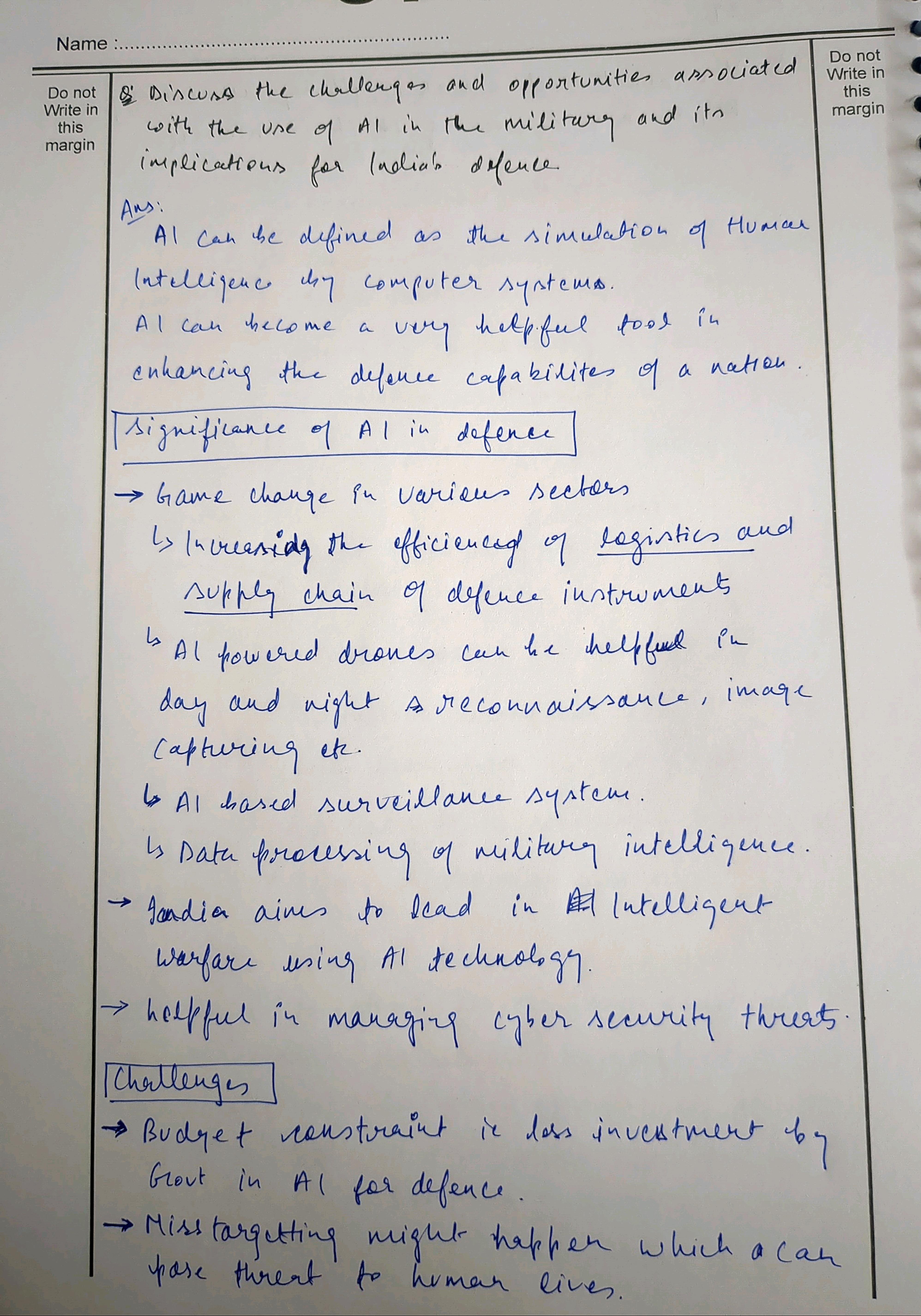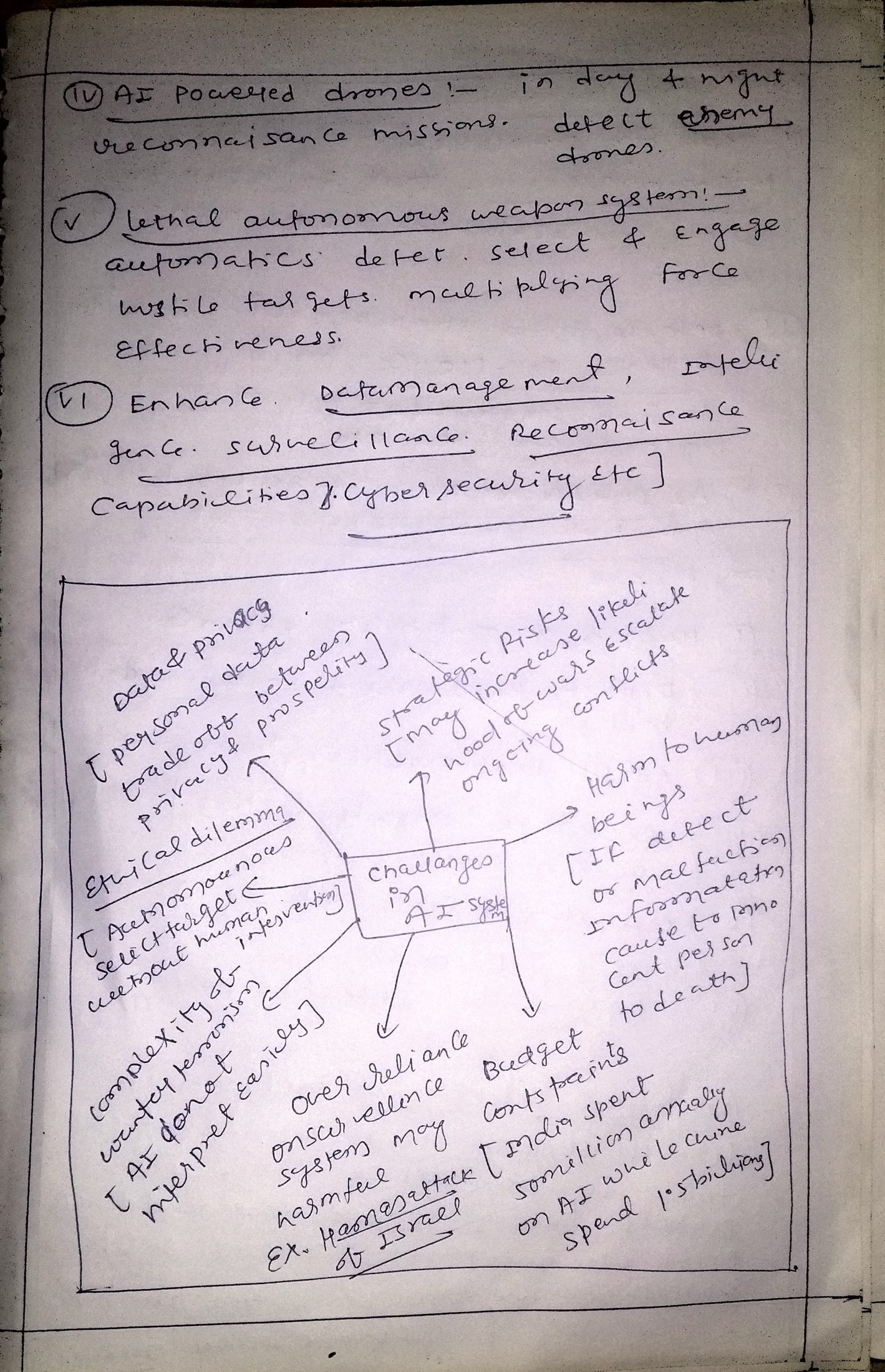 - Body: Discuss the challenges and opportunities AI presents in the military context, specifically for India, providing examples.