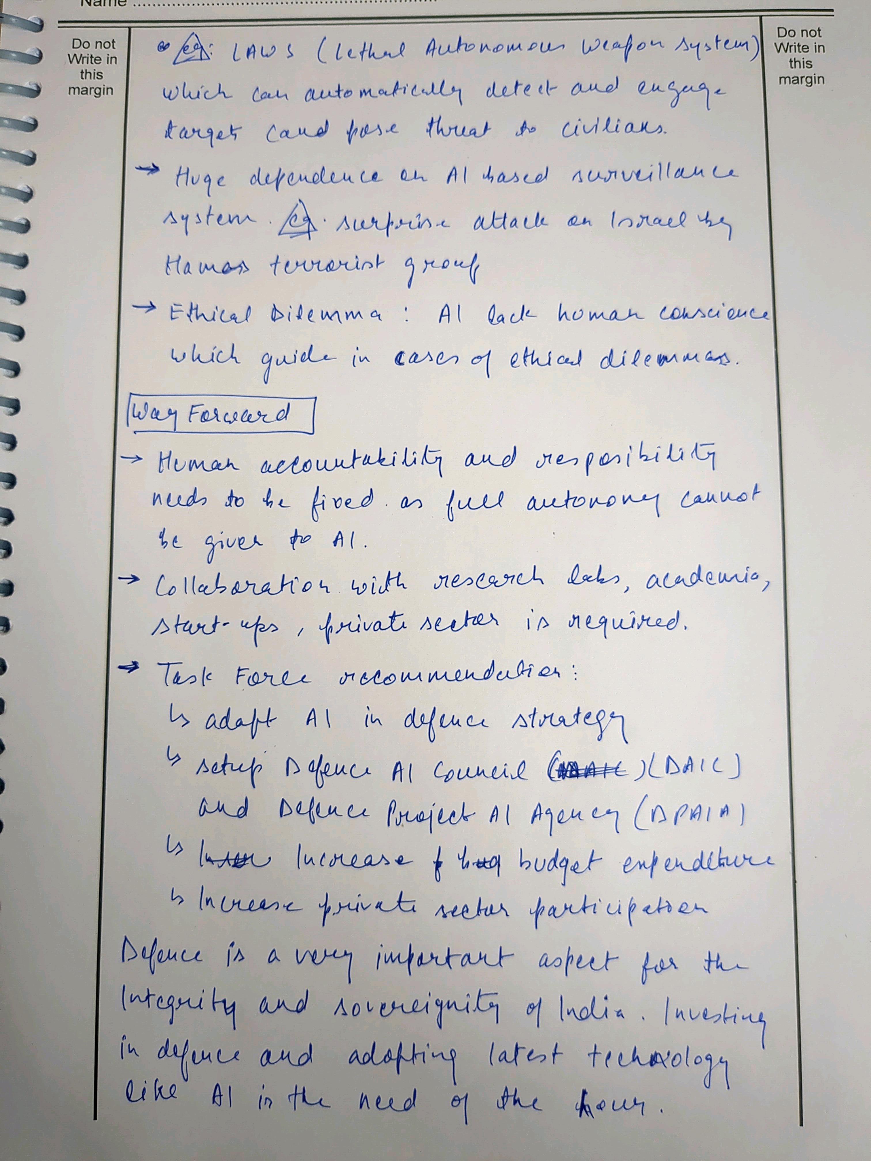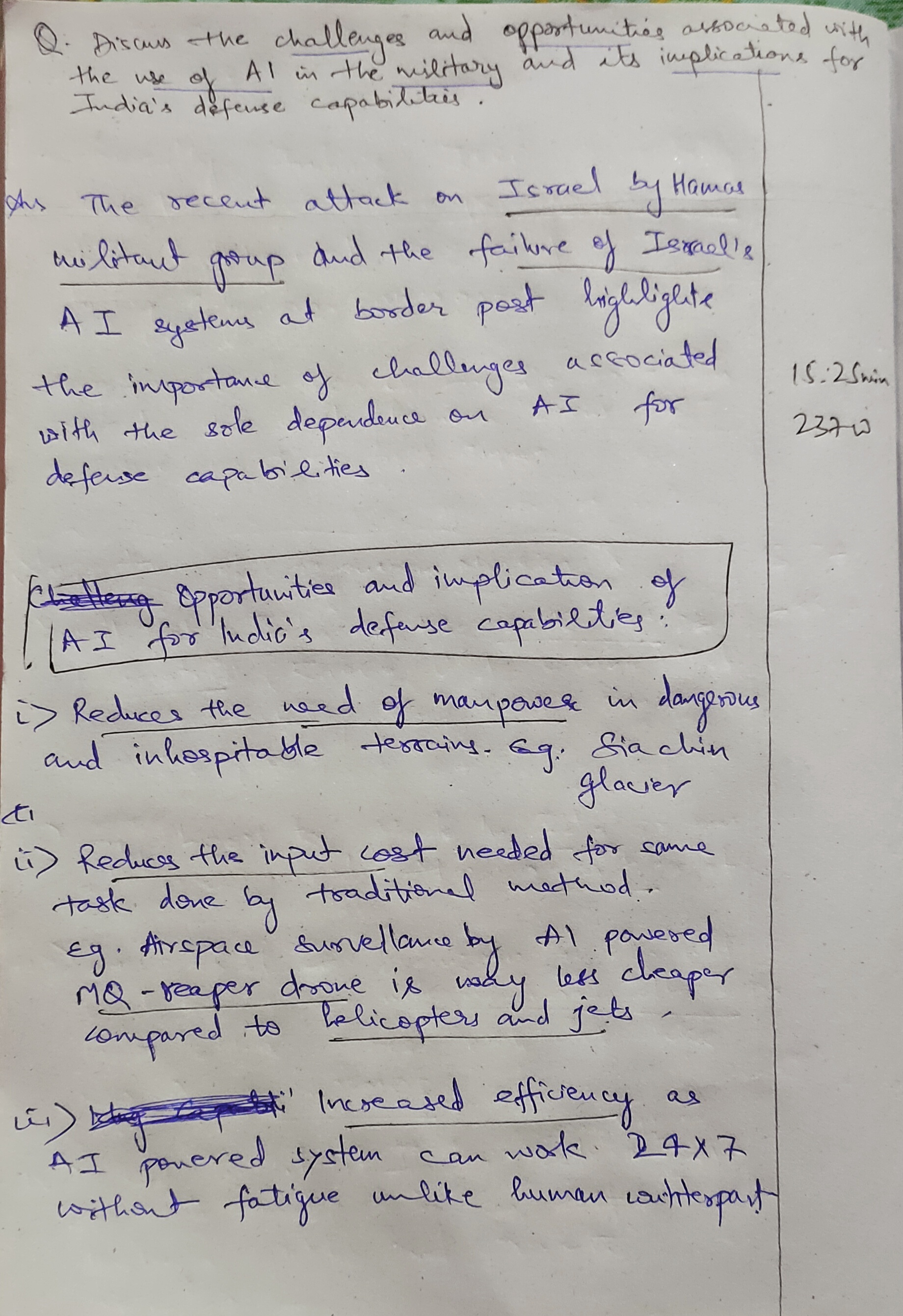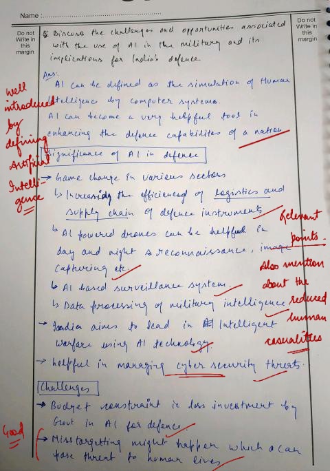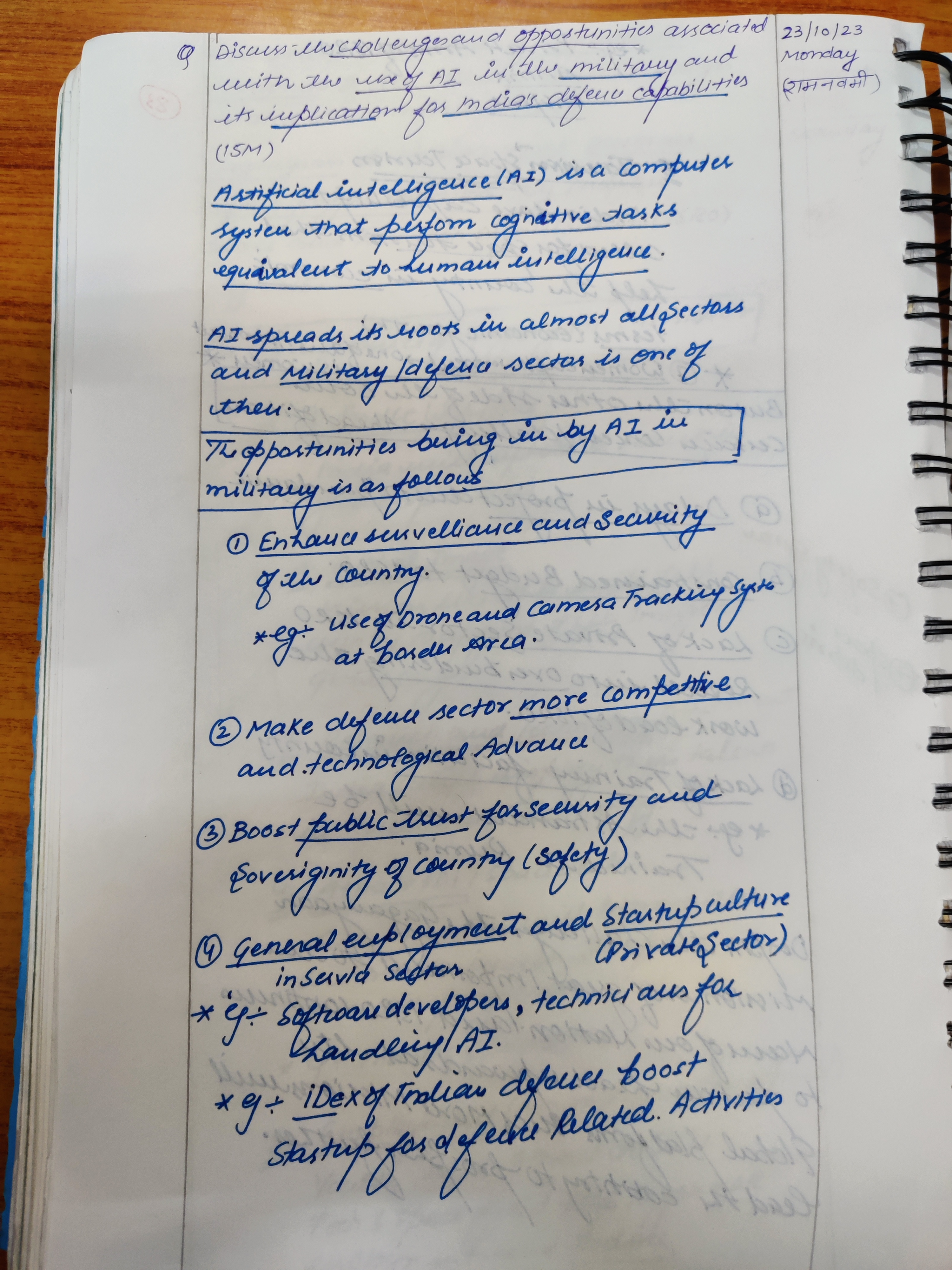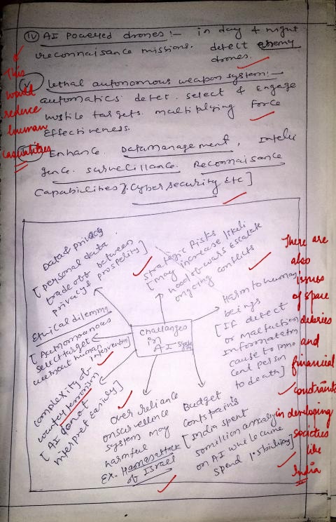 - Body: Discuss the challenges and opportunities AI presents in the military context, specifically for India, providing examples.