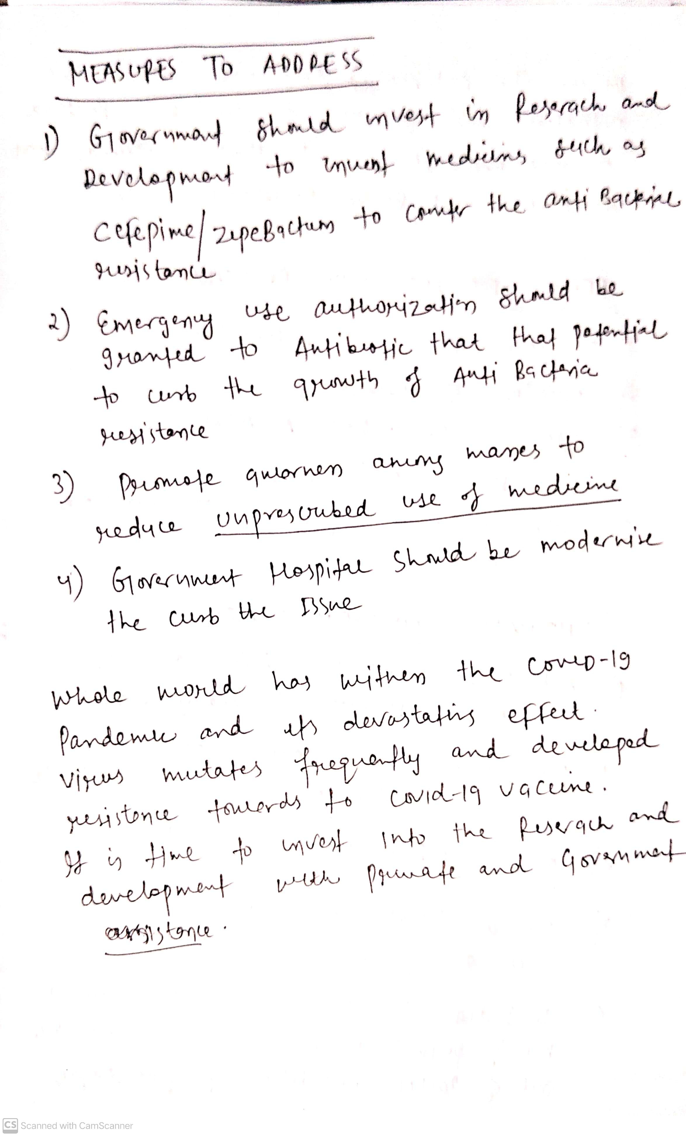 - The government, in collaboration with the private sector, should invest in research for new antibiotics, rapid diagnostic tests, vaccines, and alternative treatment strategies.