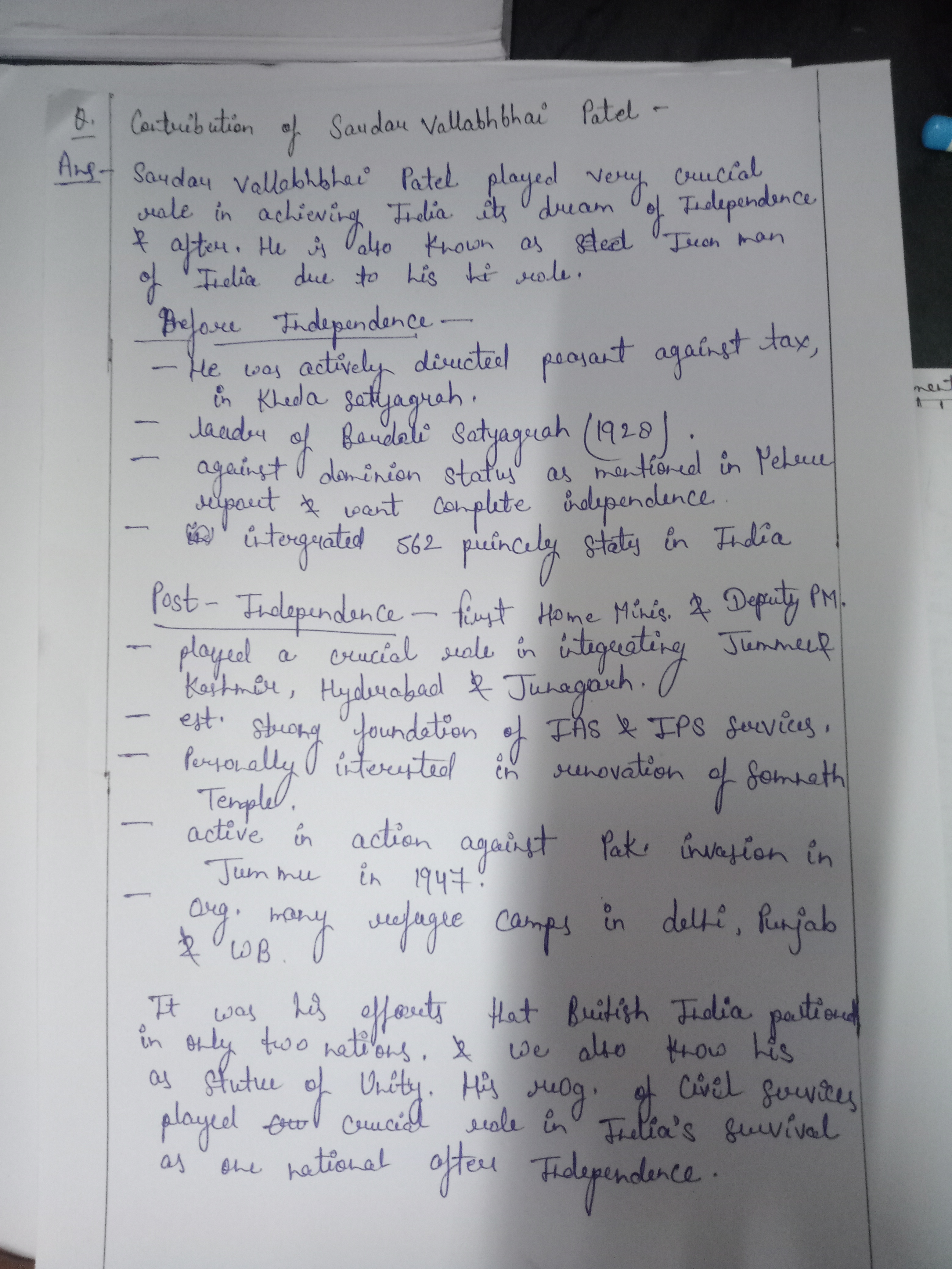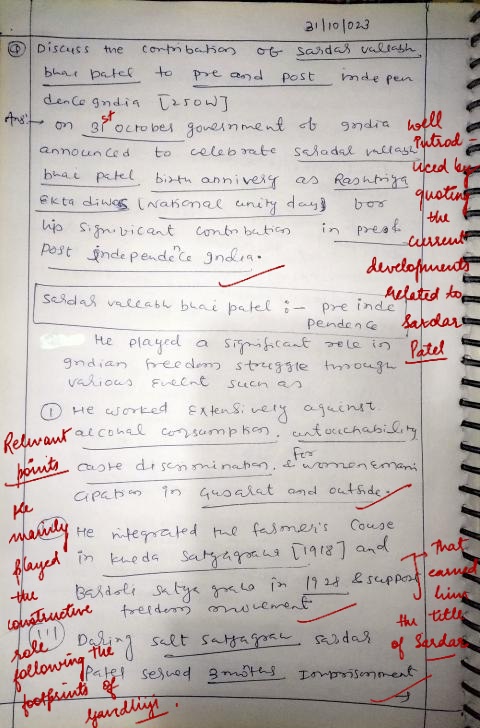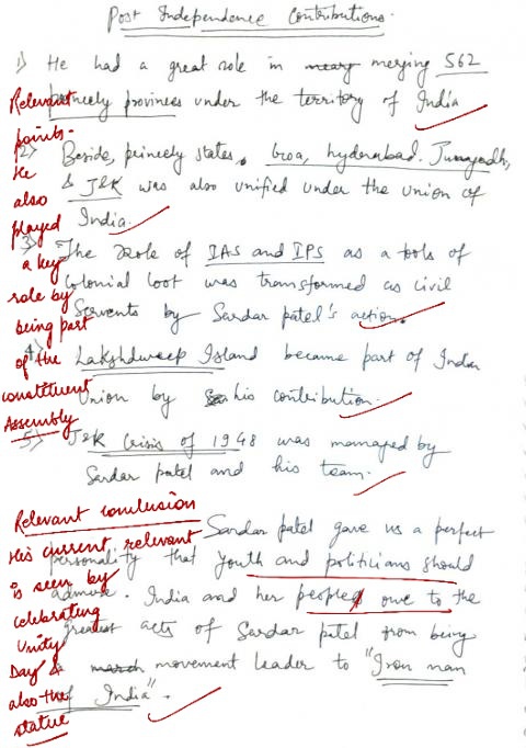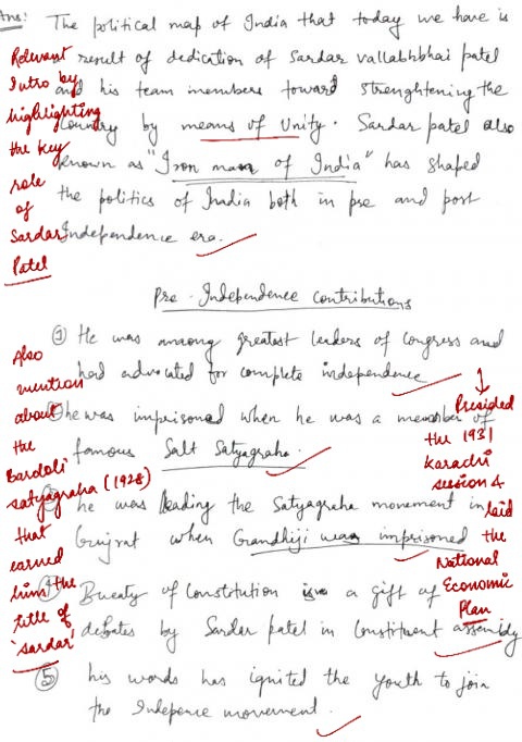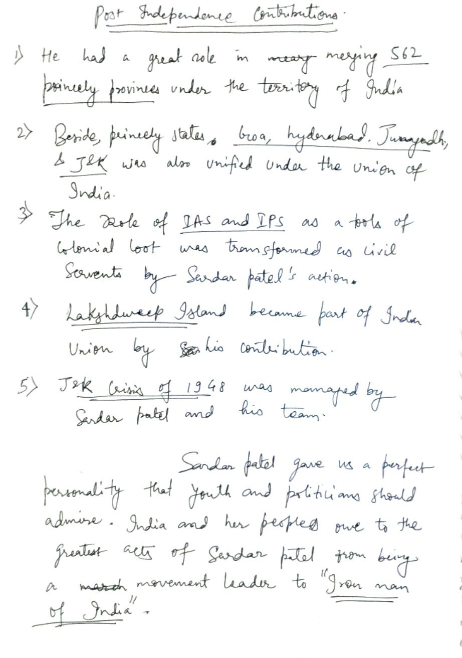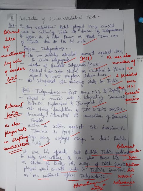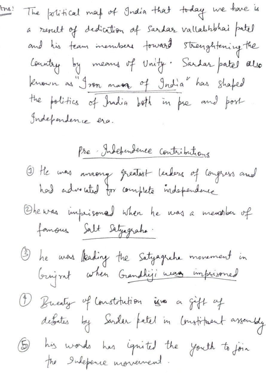Q. Discuss the contribution of Sardar Vallabhbhai Patel to pre-and post-independent India. (250 words, 15 Marks)