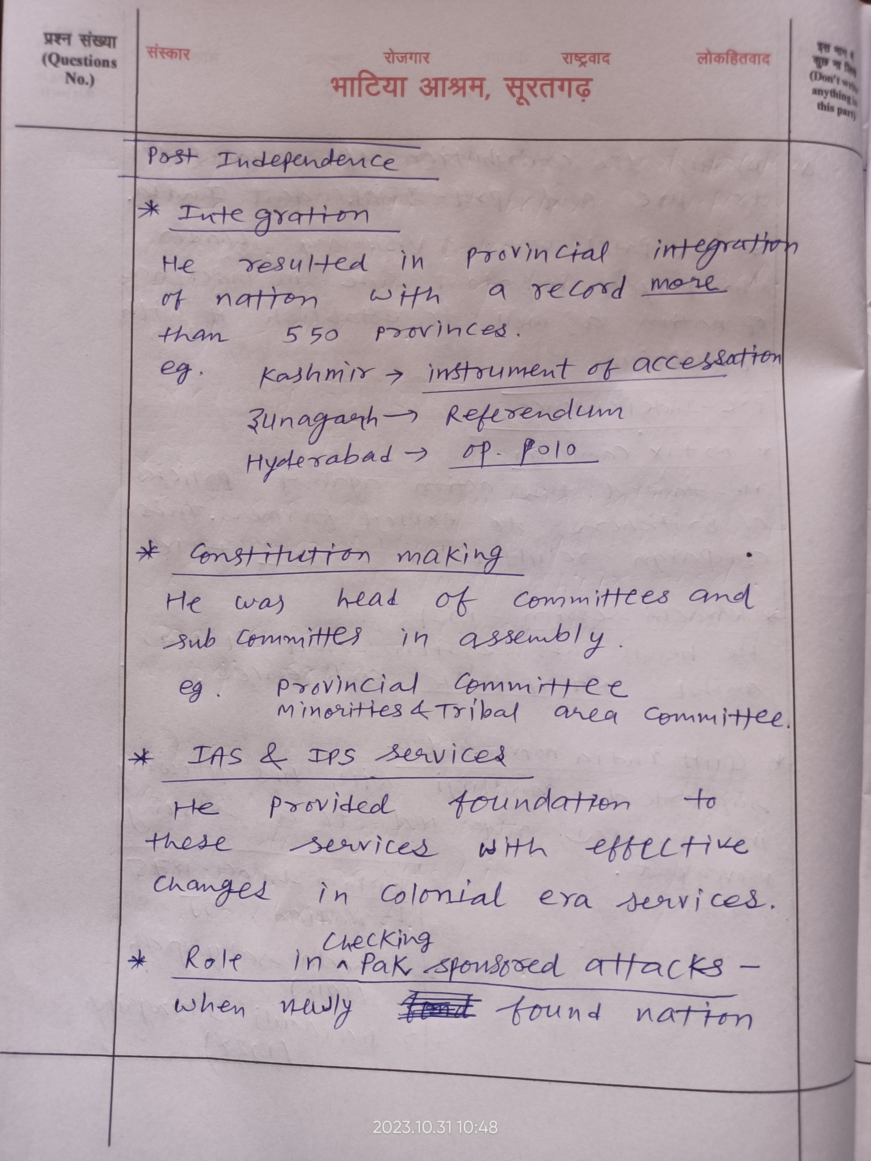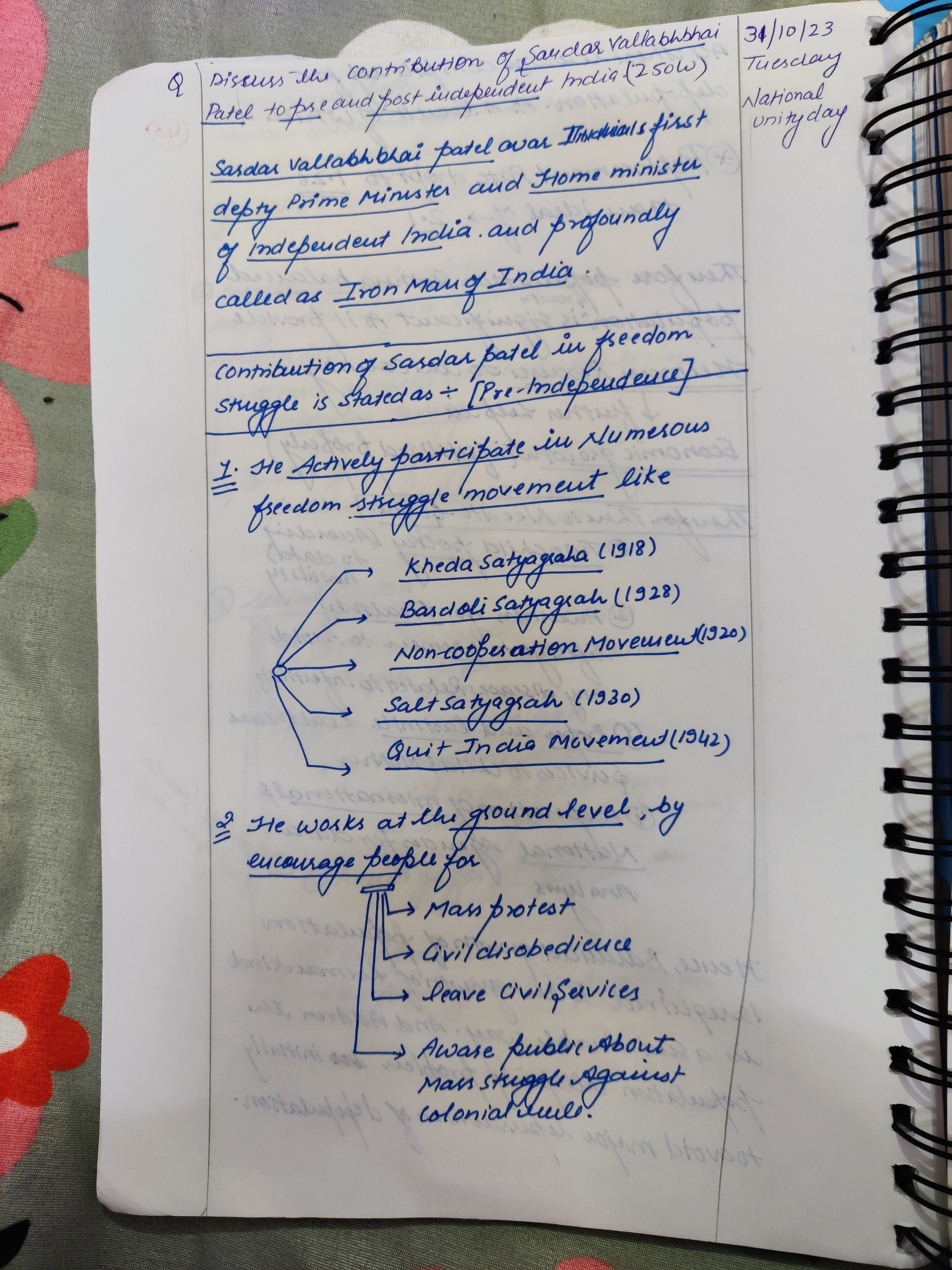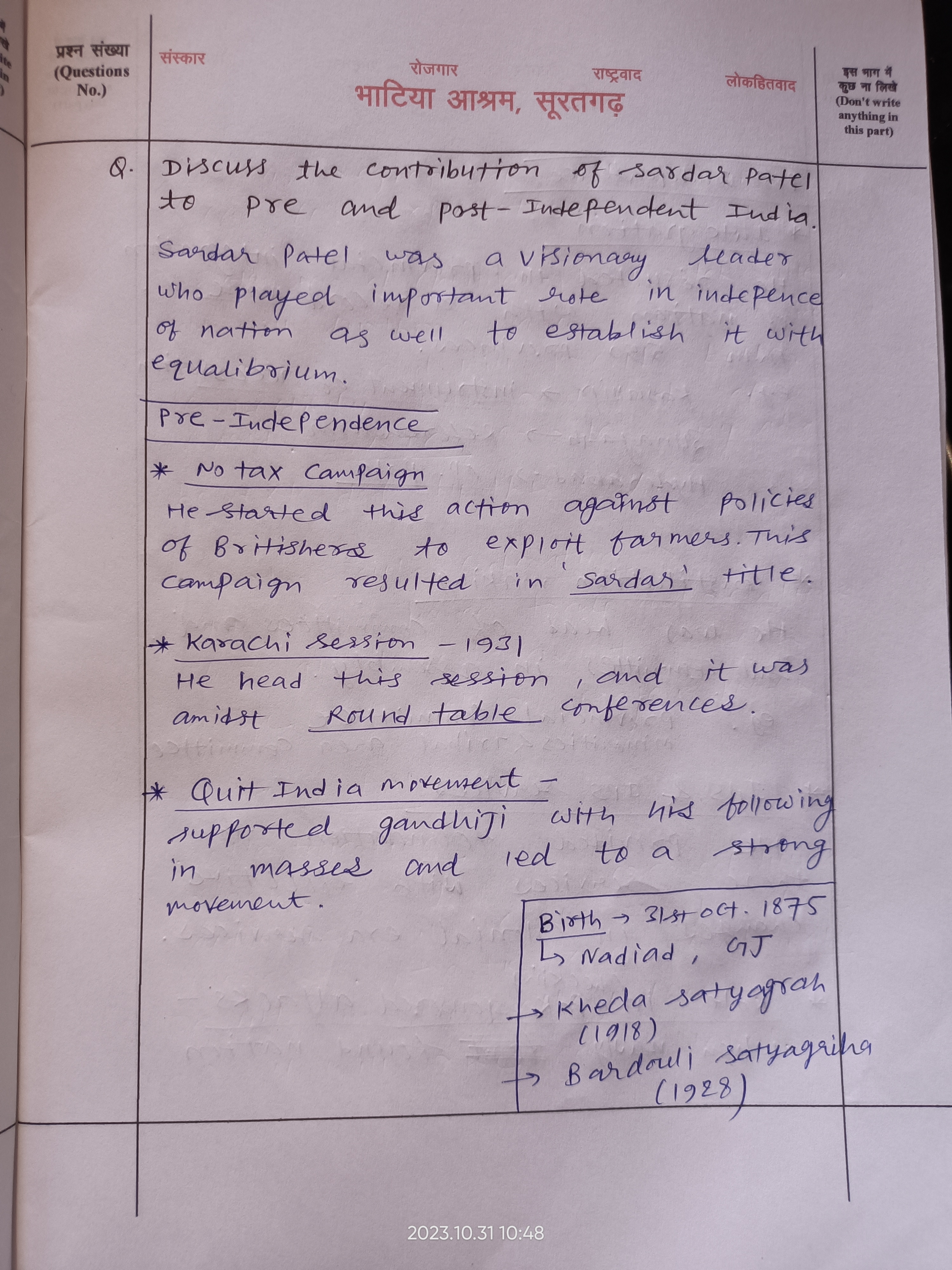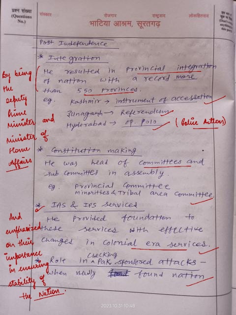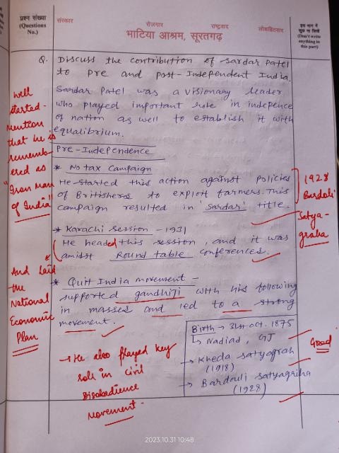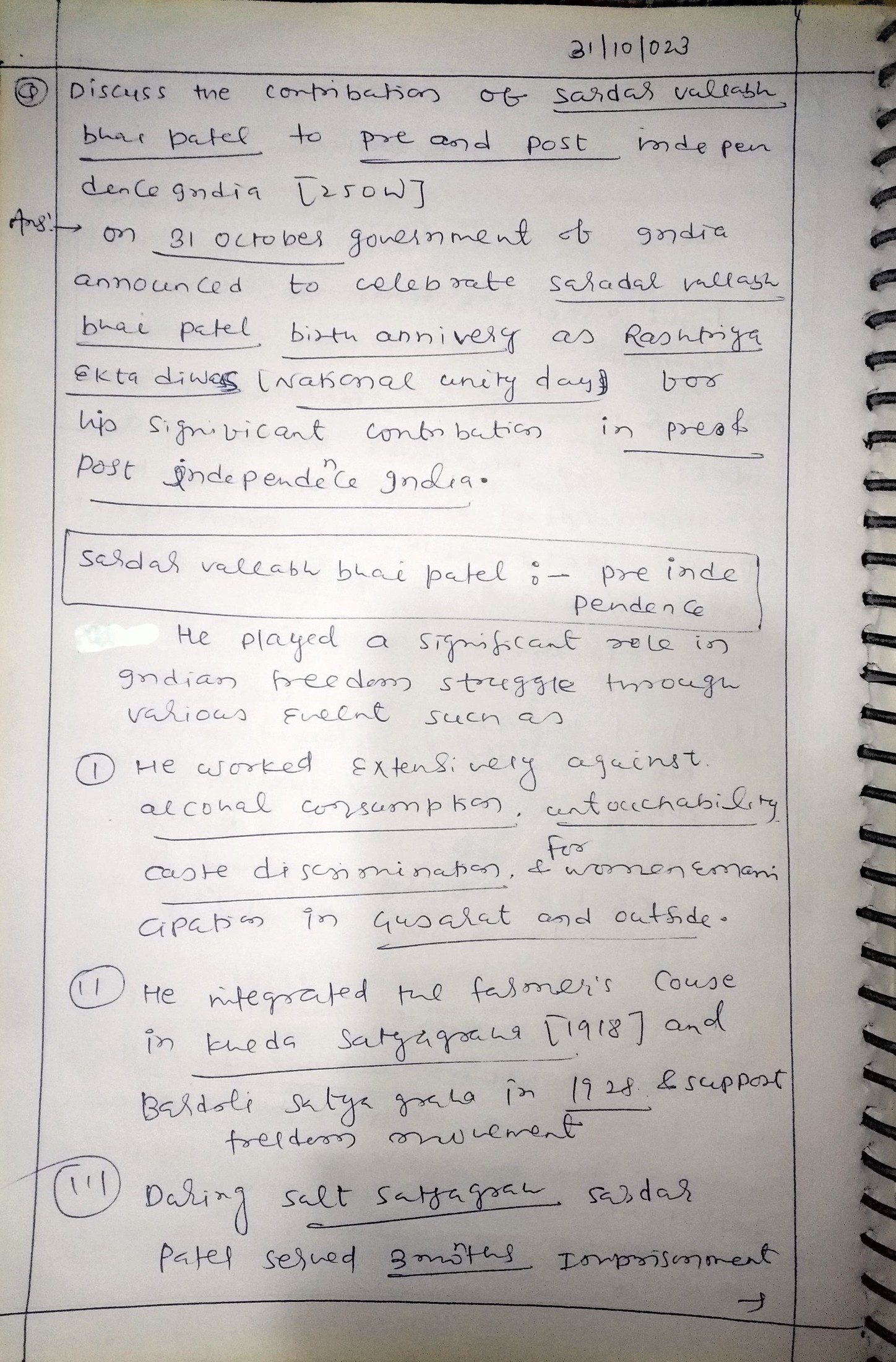 Q. Discuss the contribution of Sardar Vallabhbhai Patel to pre-and post-independent India. (250 words, 15 Marks)