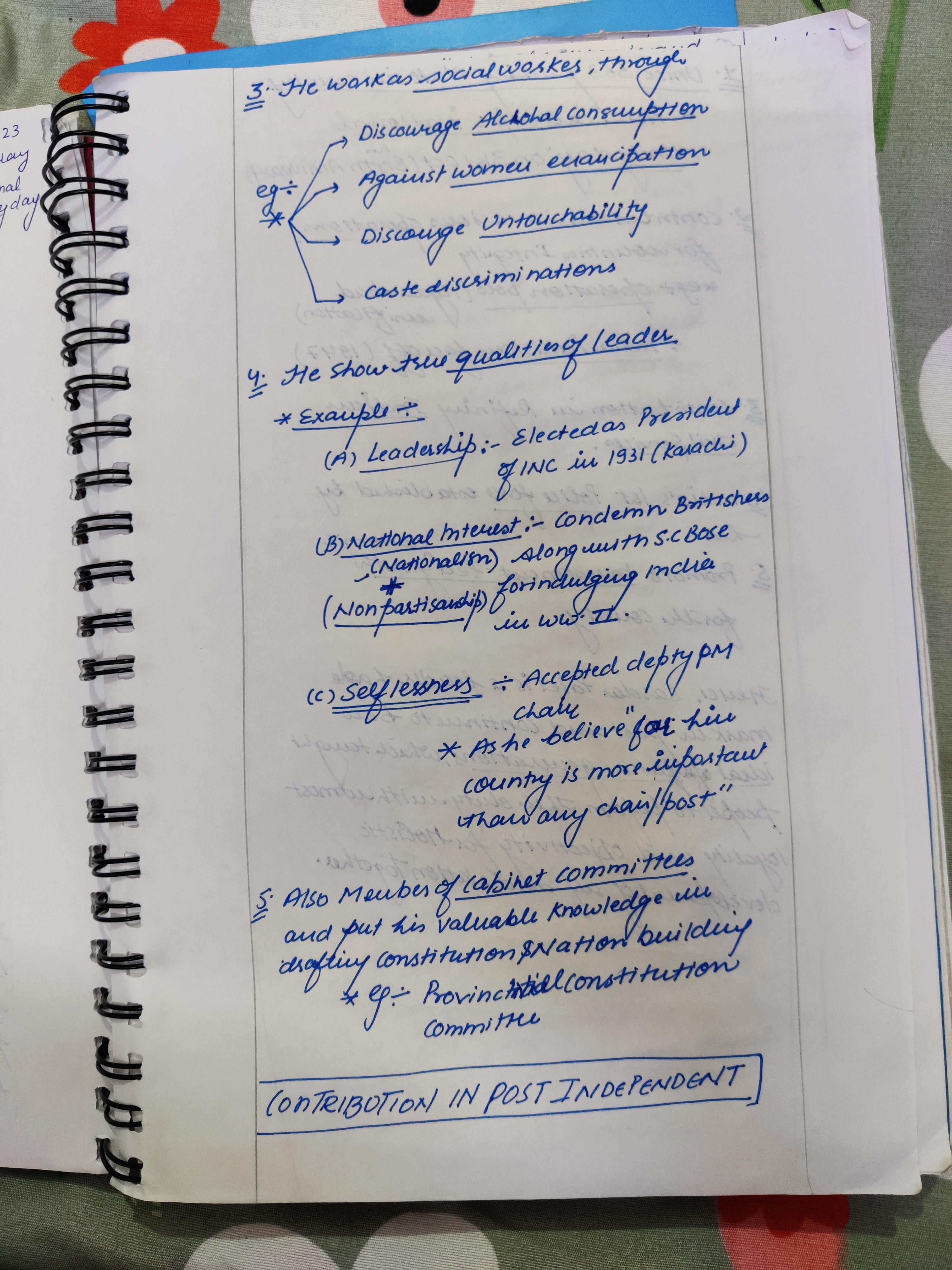 • His leadership was evident in his election as the President of Congress in 1931.