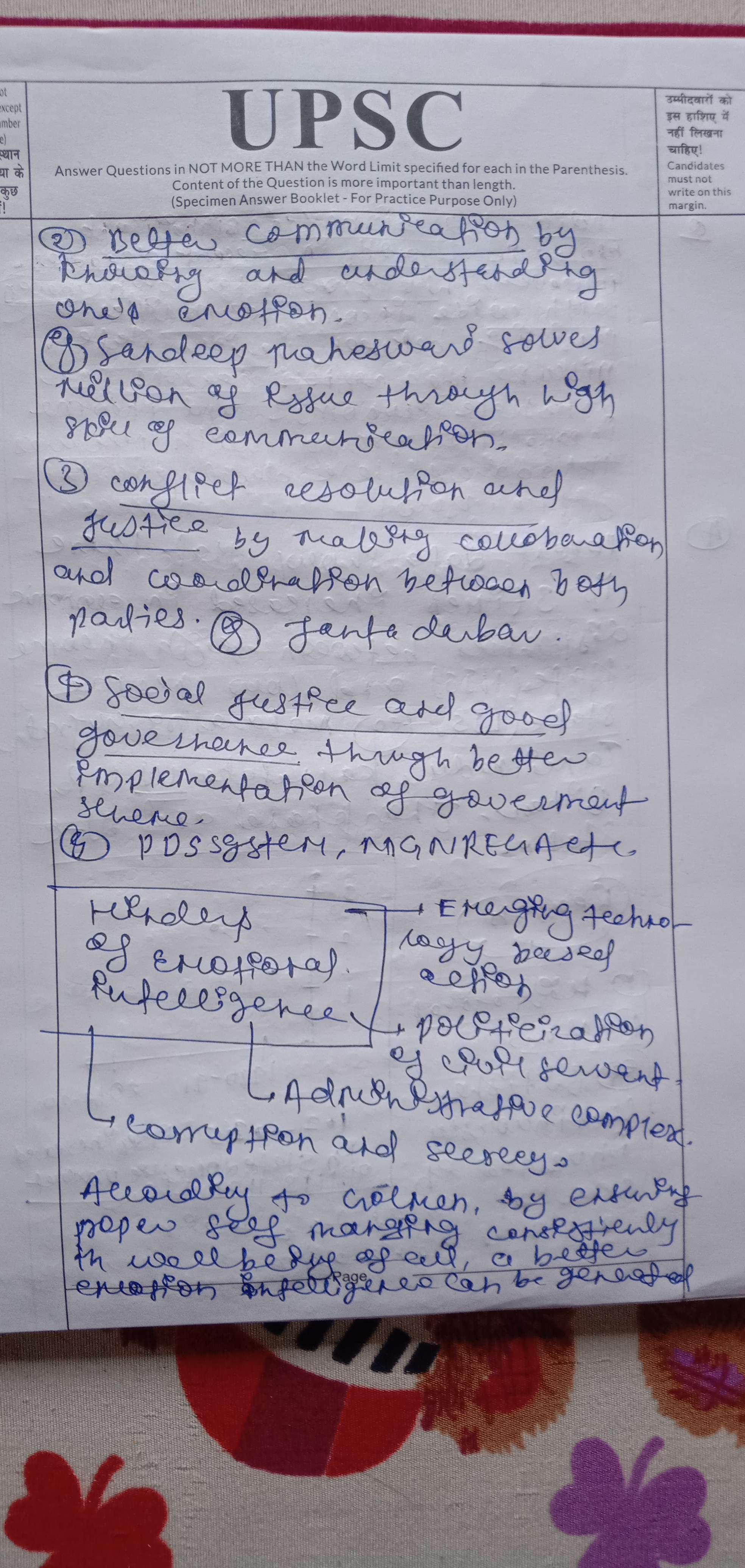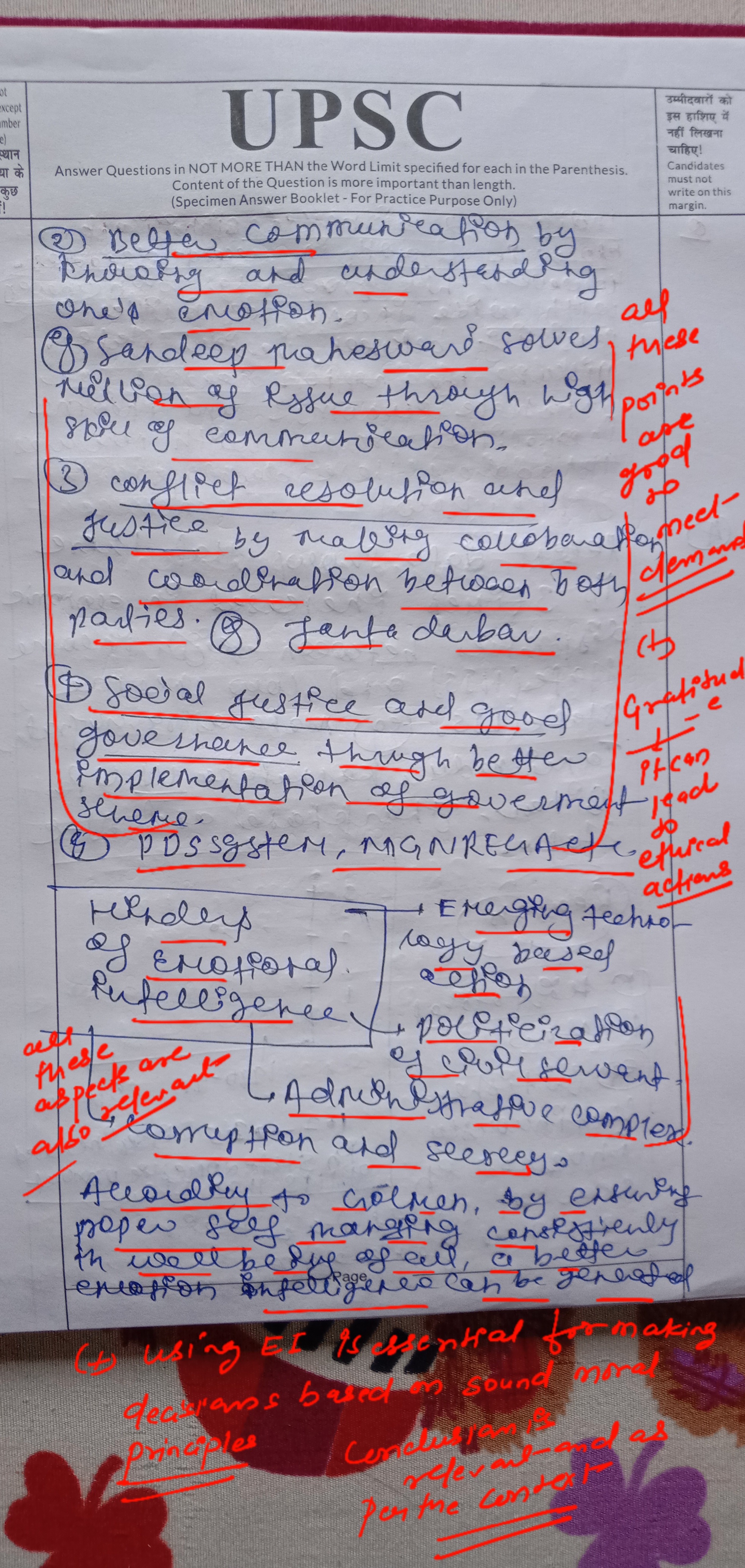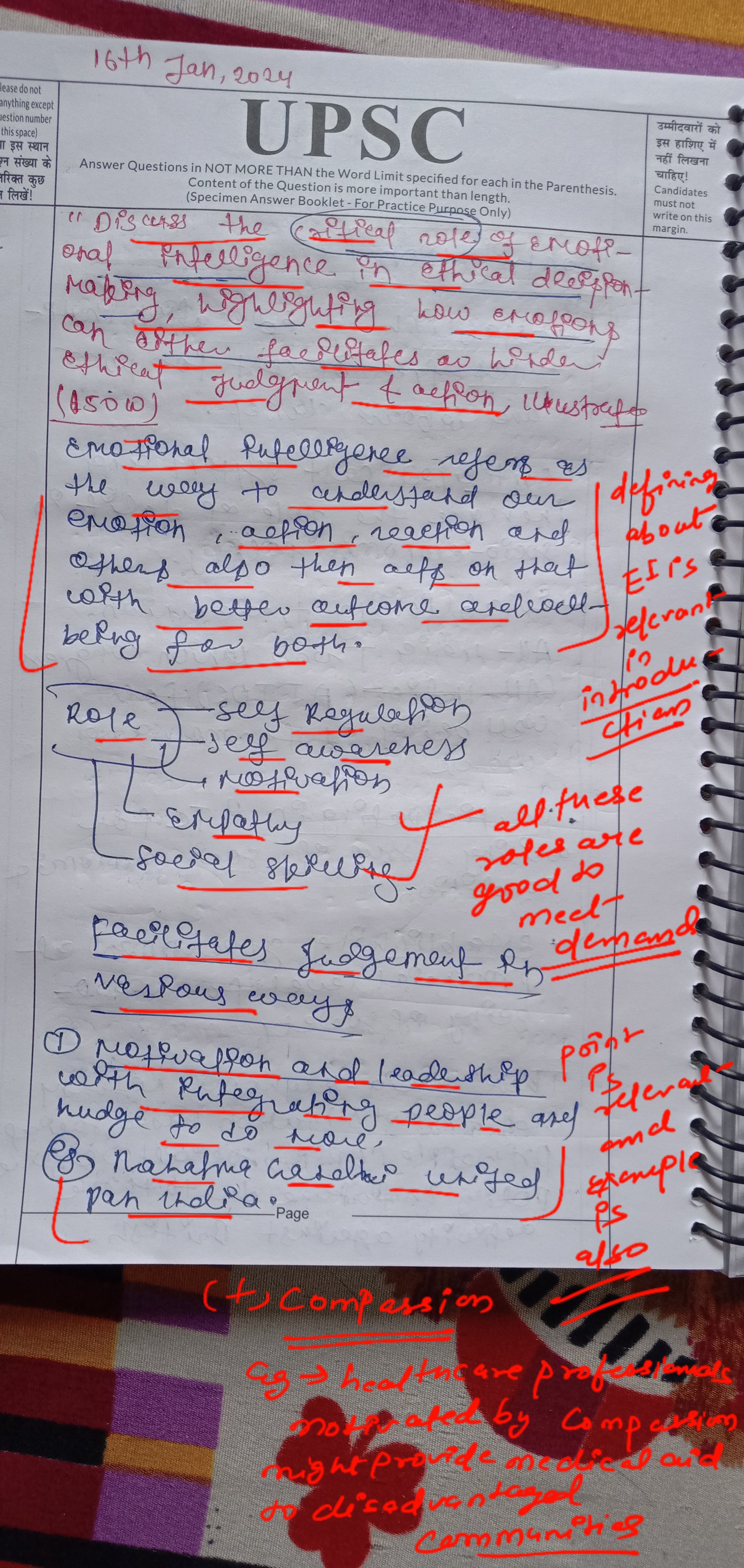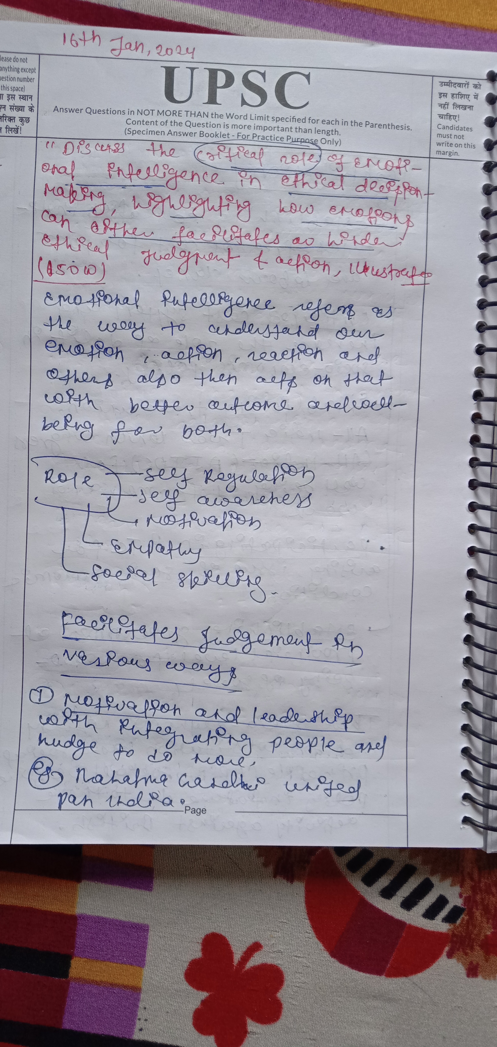 Q. “Discuss the critical role of emotional intelligence in ethical decision-making, highlighting how emotions can either facilitate or hinder ethical judgment and actions, Illustrate.(10 Marks, 150 Words) additional