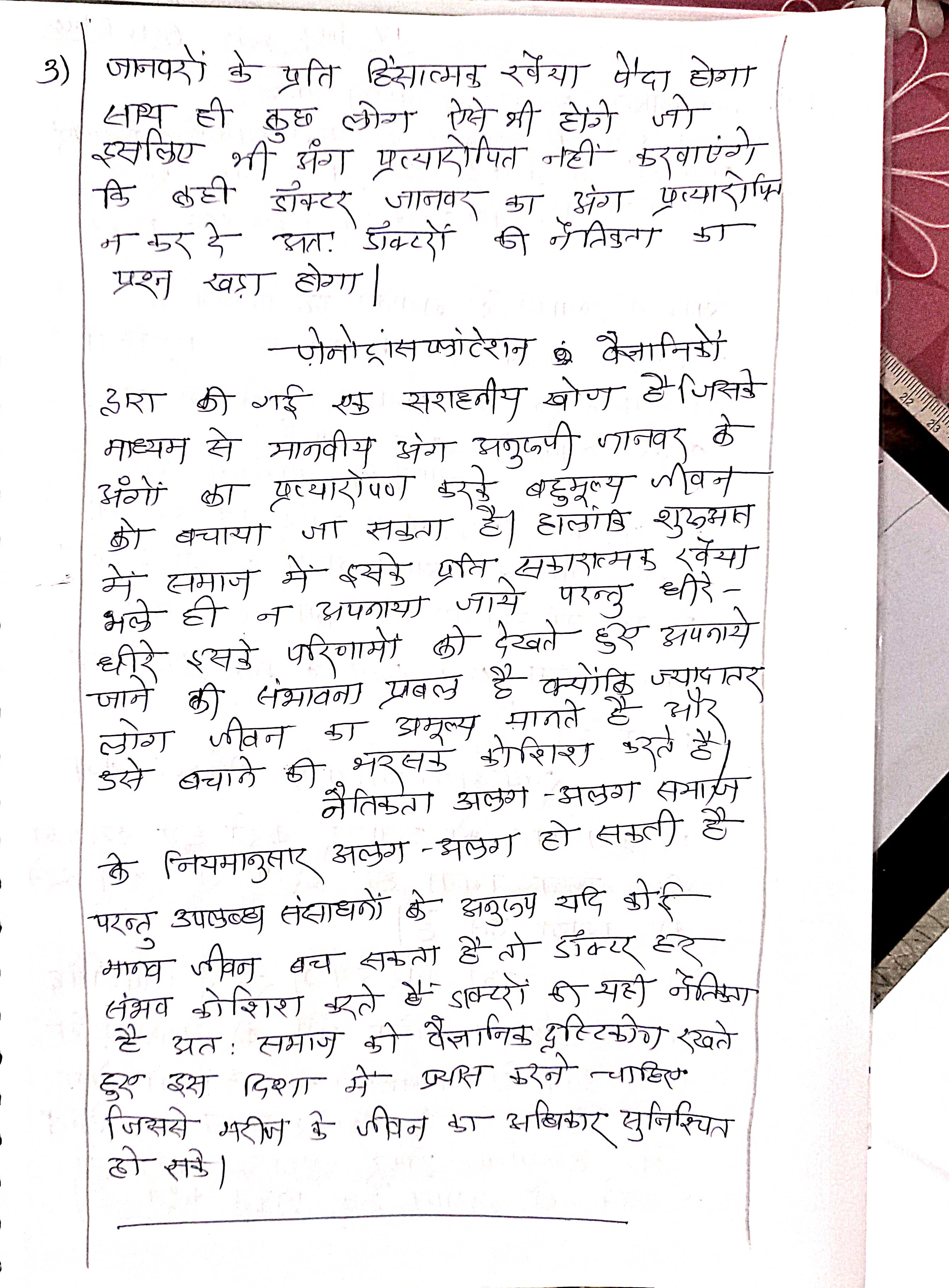 - कुछ धर्म या संस्कृतियाँ मनुष्यों द्वारा जानवरों के अंग प्राप्त करने या जानवरों का इस तरह से उपयोग करने पर आपत्ति कर सकती हैं।