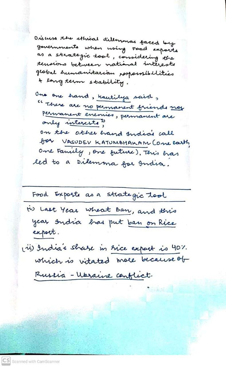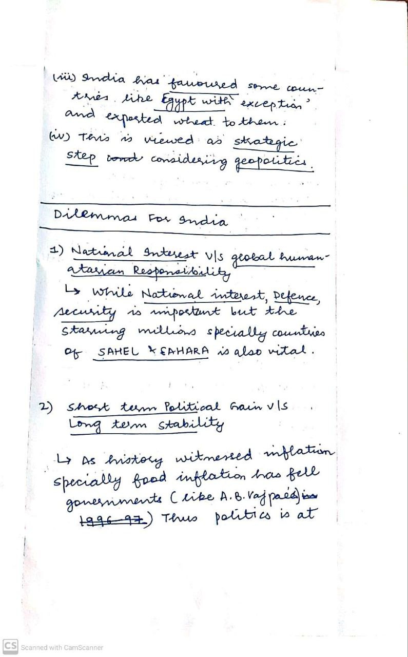 - For example, A sudden restriction in India’s wheat exports can create food security concerns in neighboring countries, potentially leading to regional tensions.