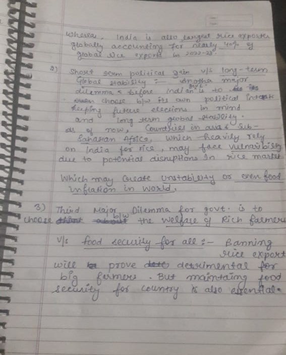 - For example, If India restricts rice exports during a global shortage, it could significantly affect countries in Africa and the Middle East that depend on Indian rice.