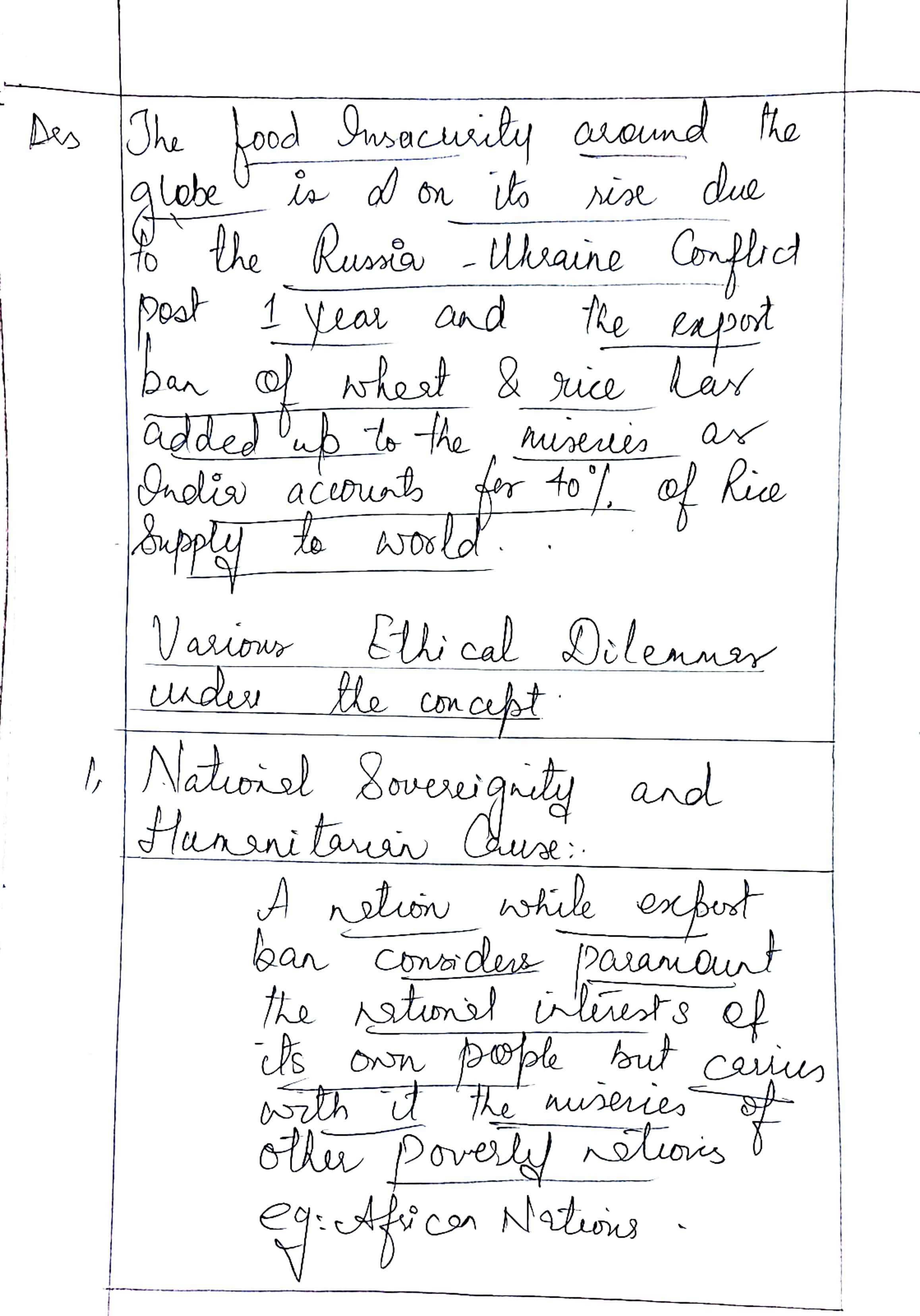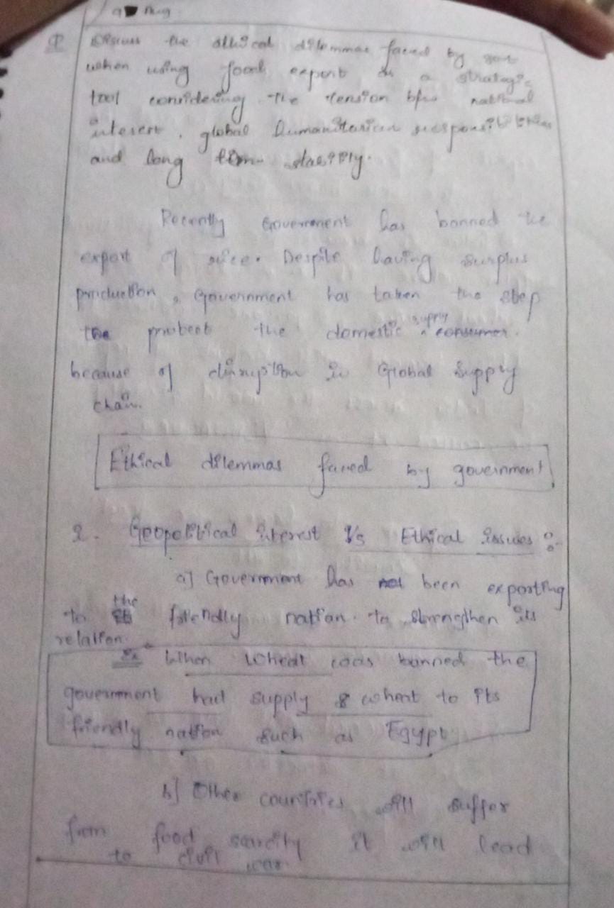 - Explain the ethical responsibility of nations to support food-deficit countries.