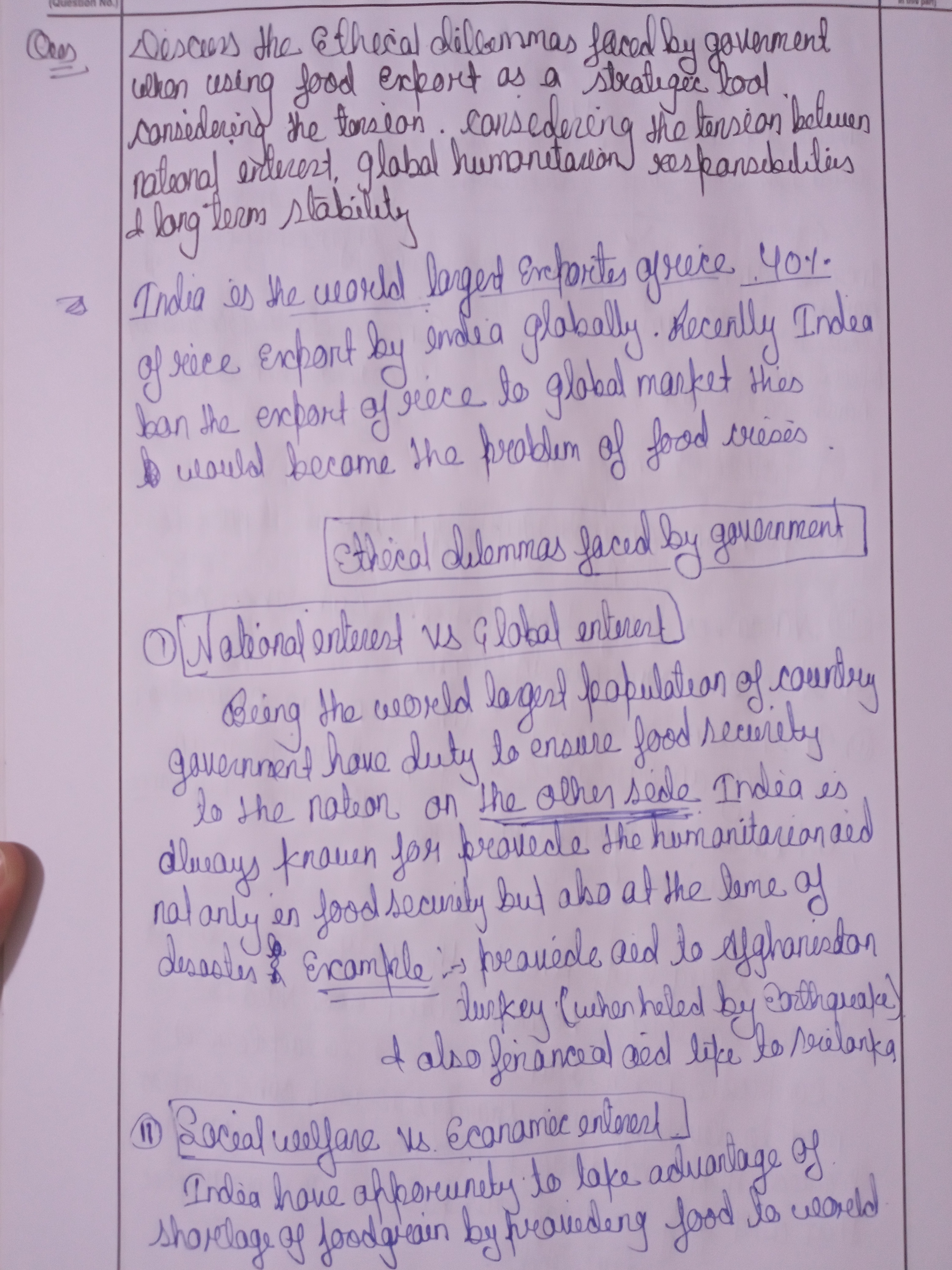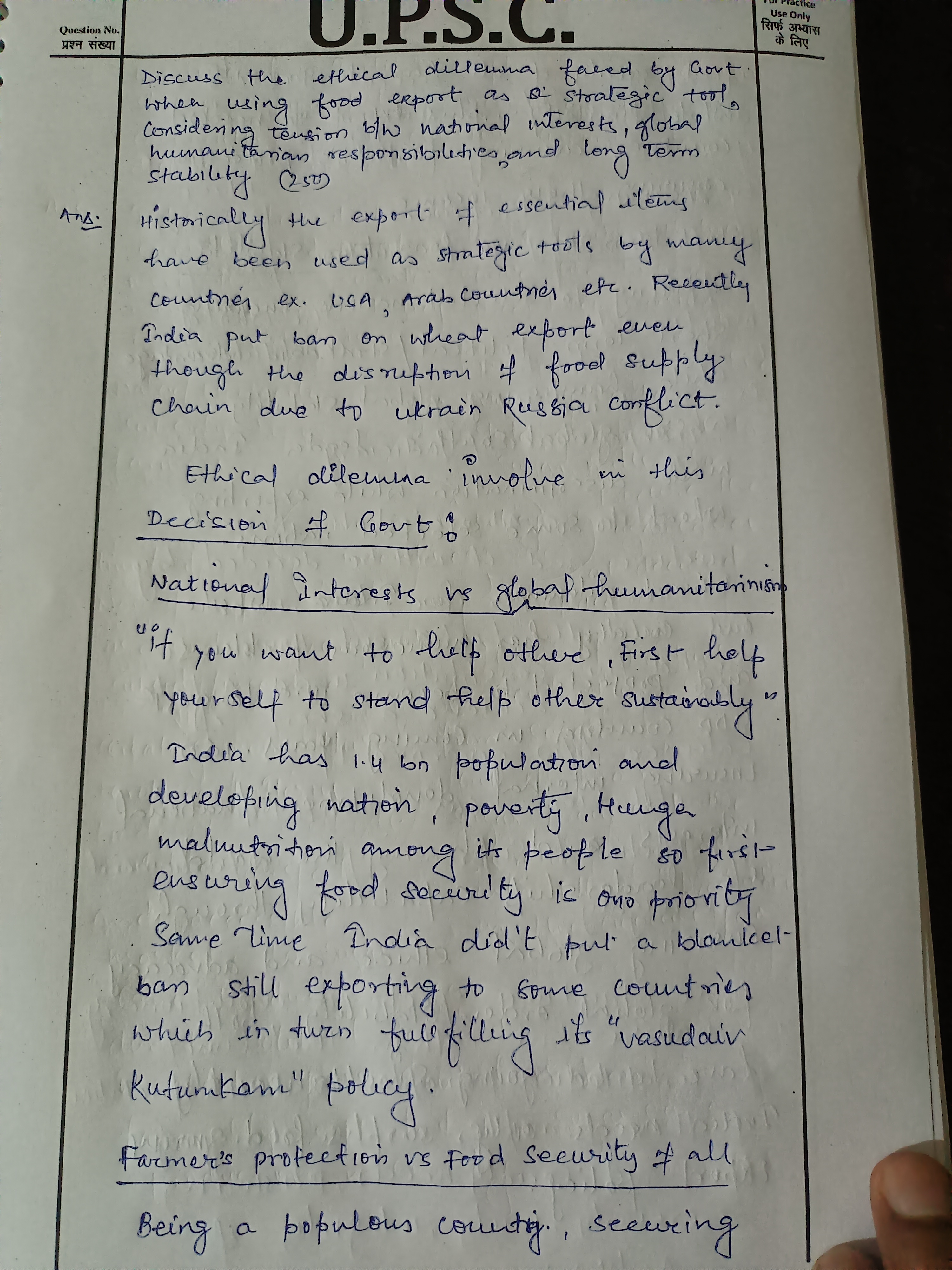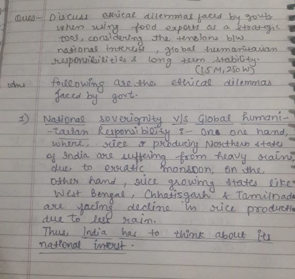 - Discuss the dual concerns of food security and economic gains from exports.
