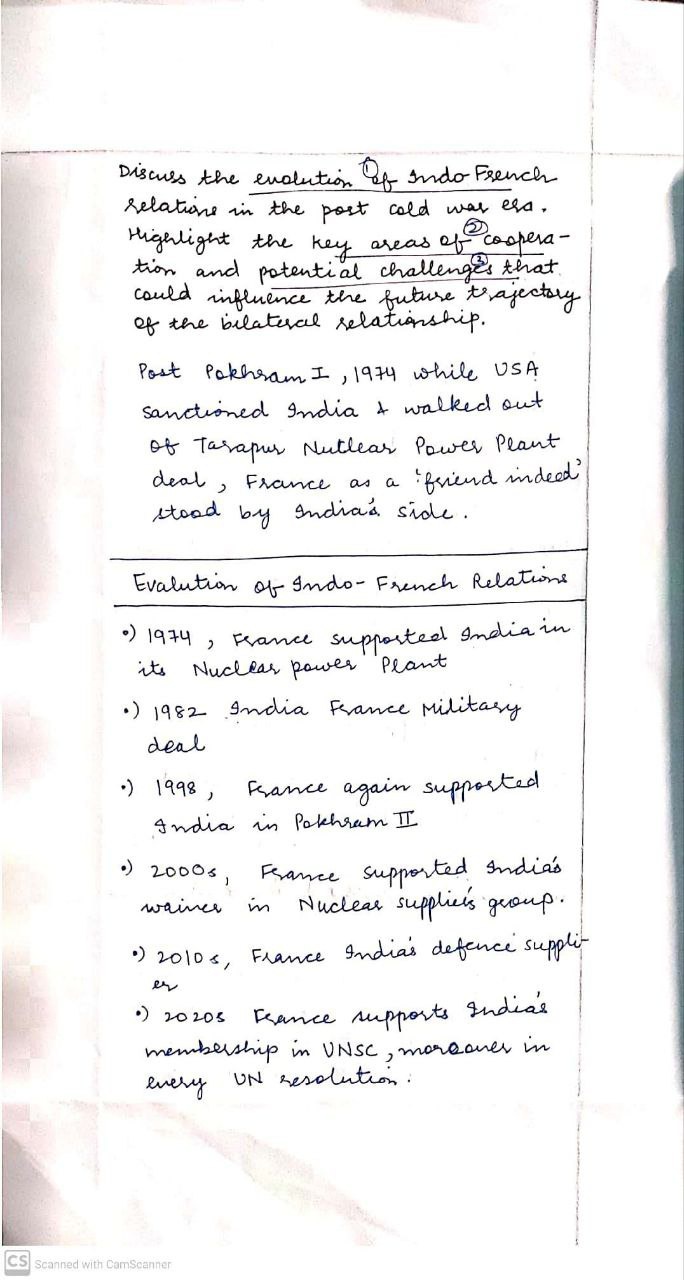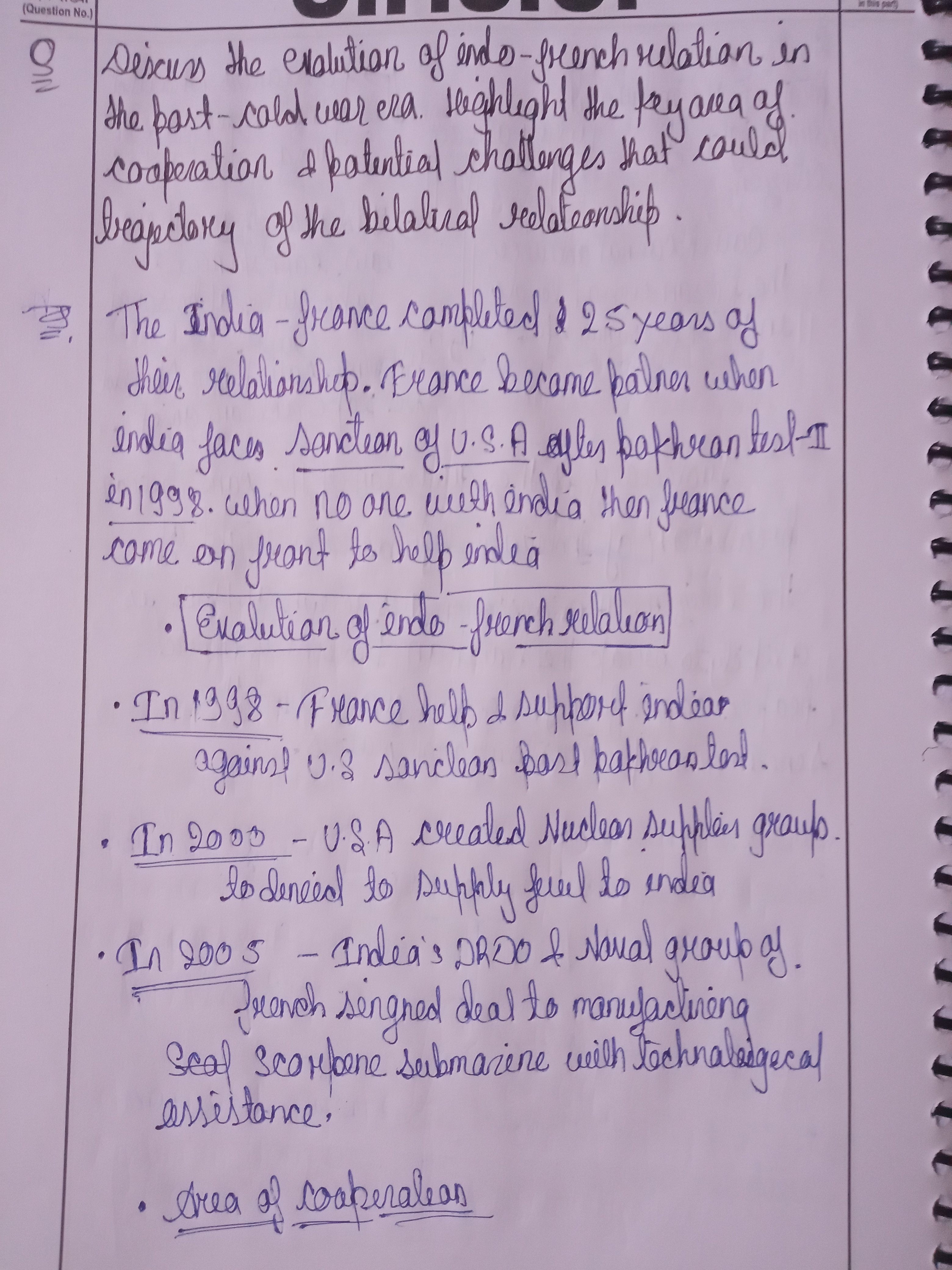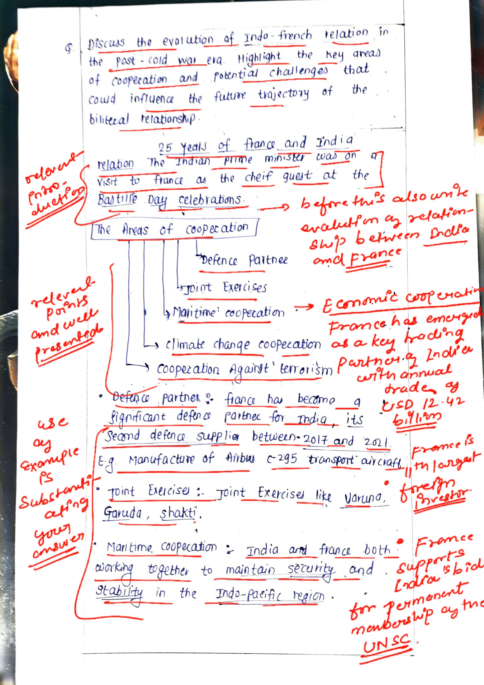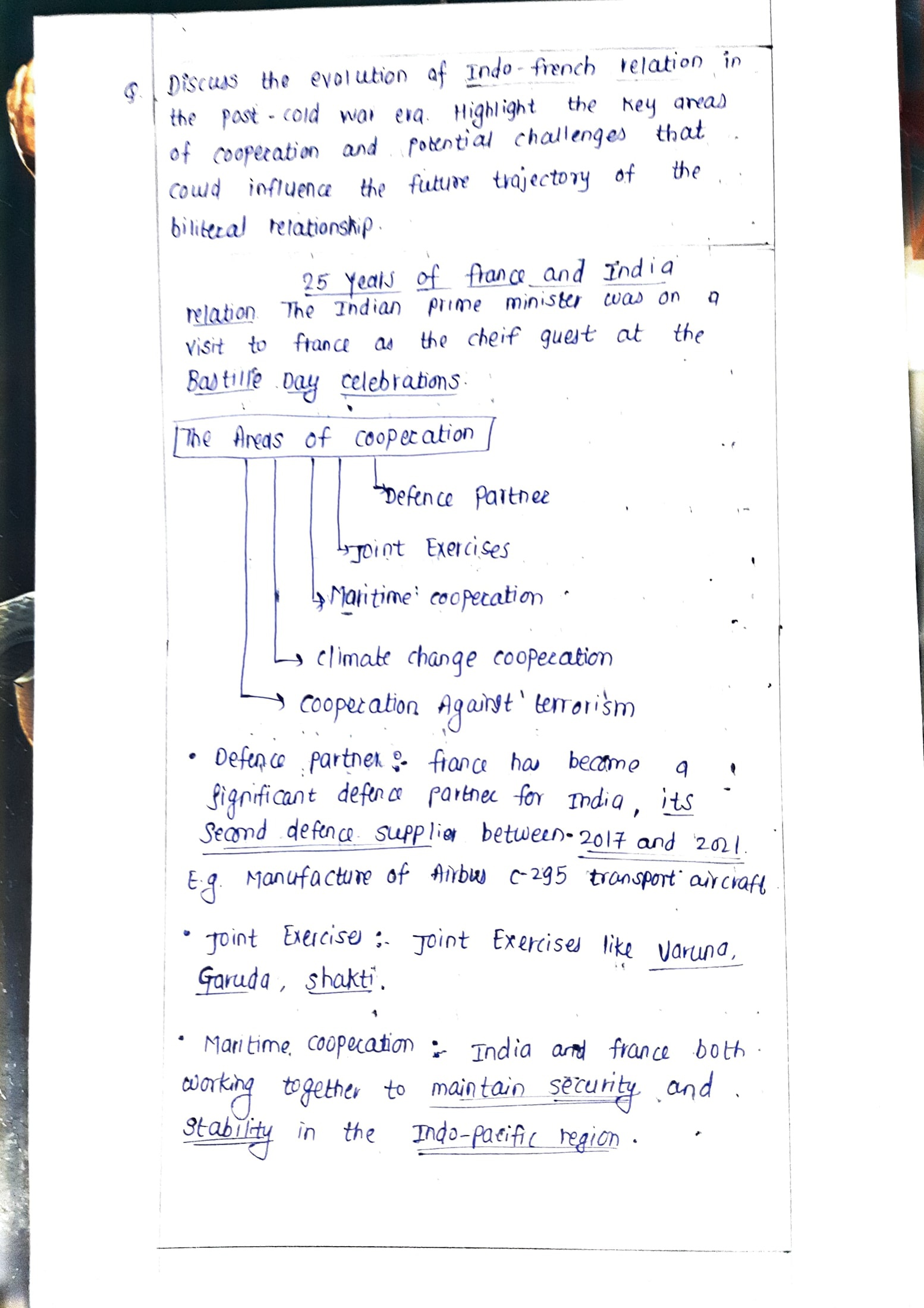 - Introduction: Introduce by outlining the significant transformation in Indo-French relations since the end of the Cold War.