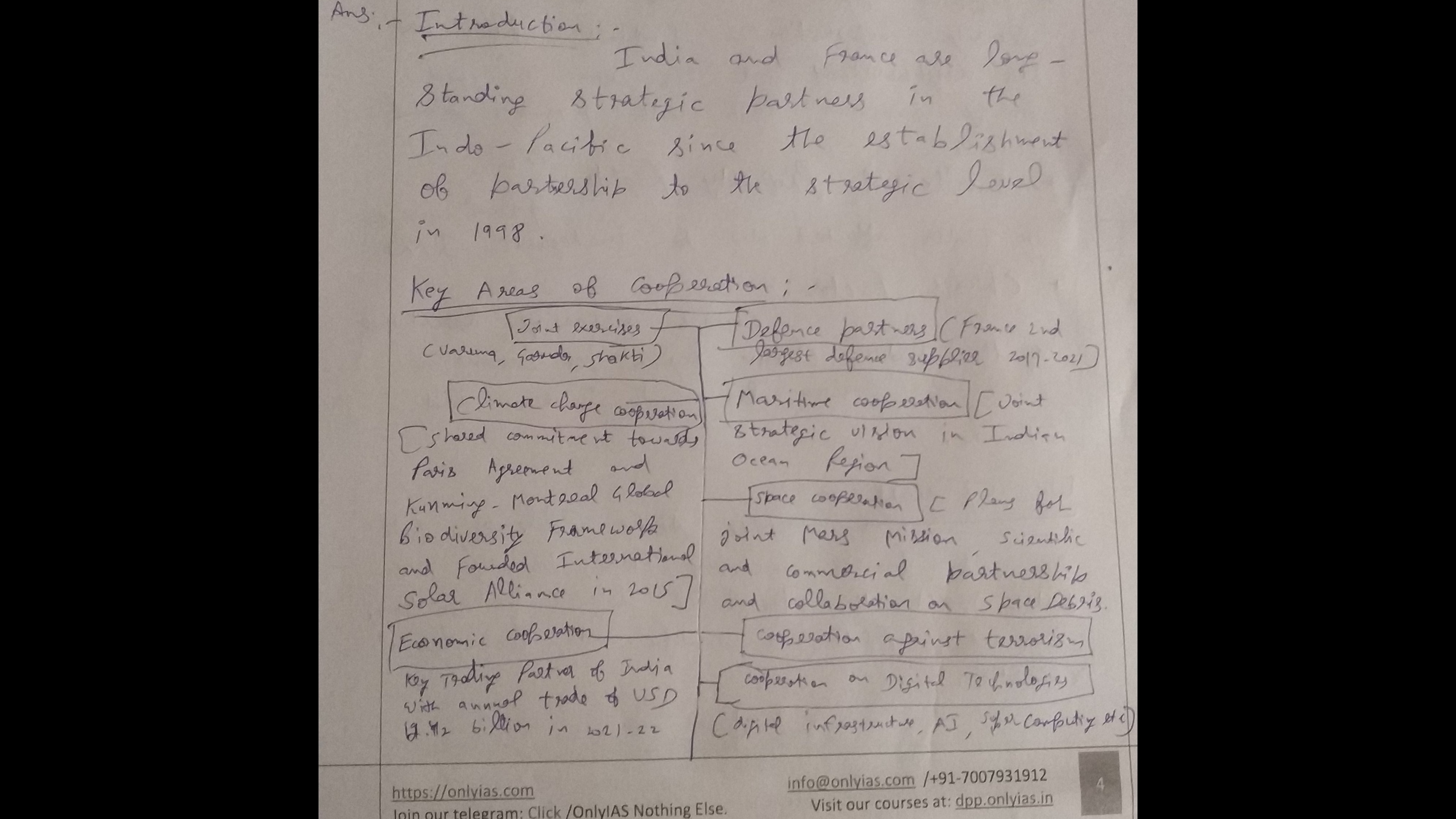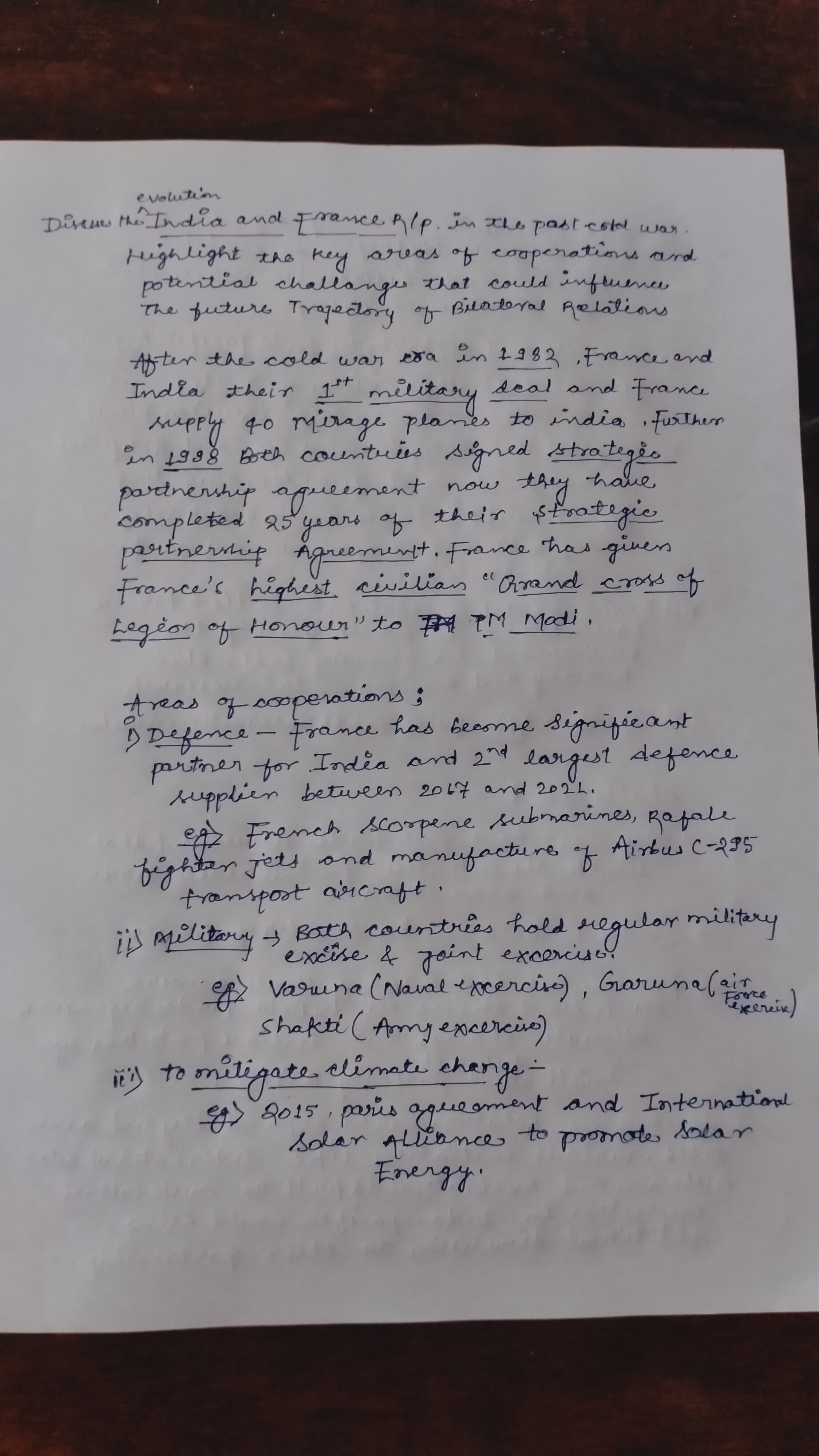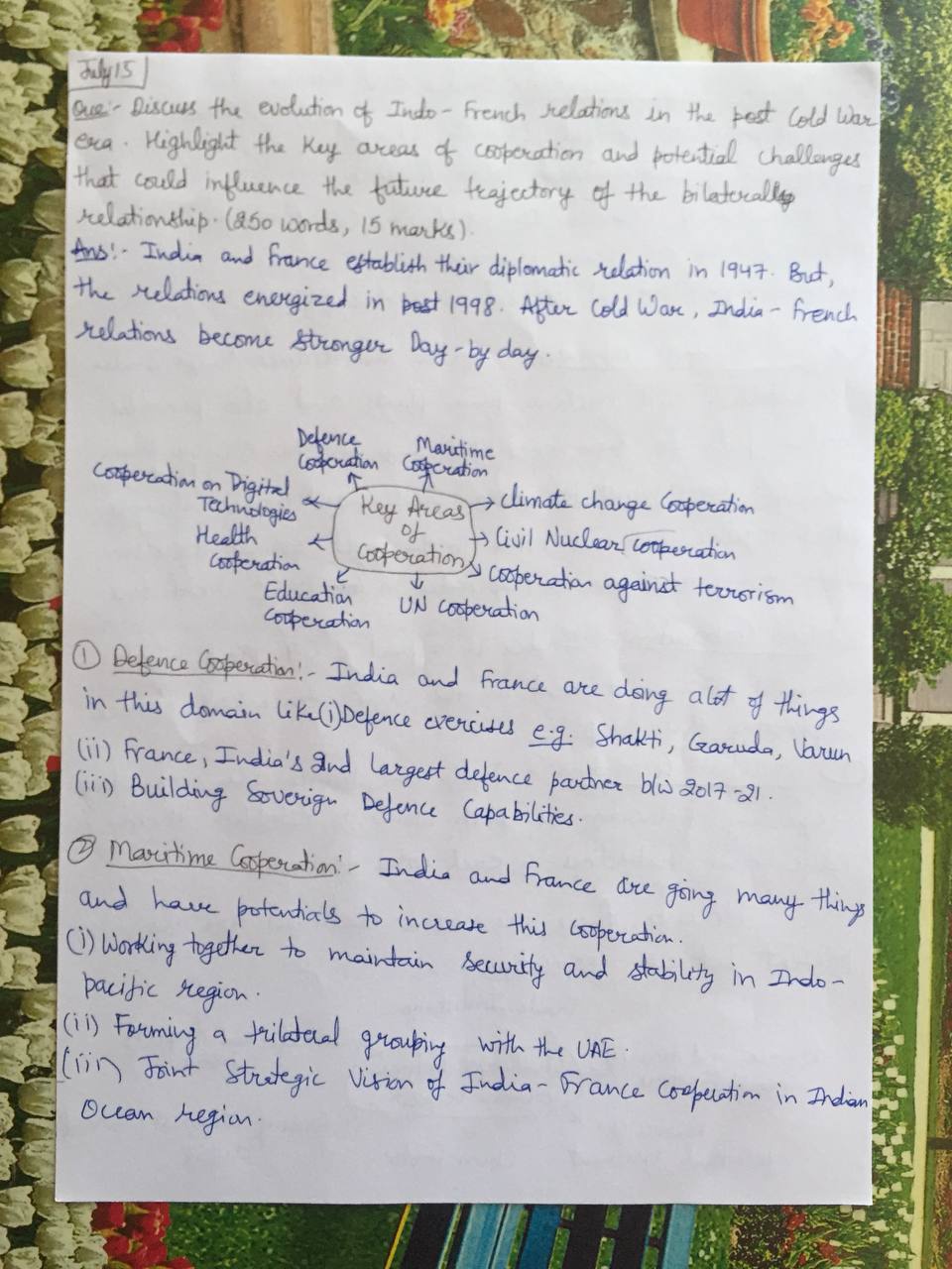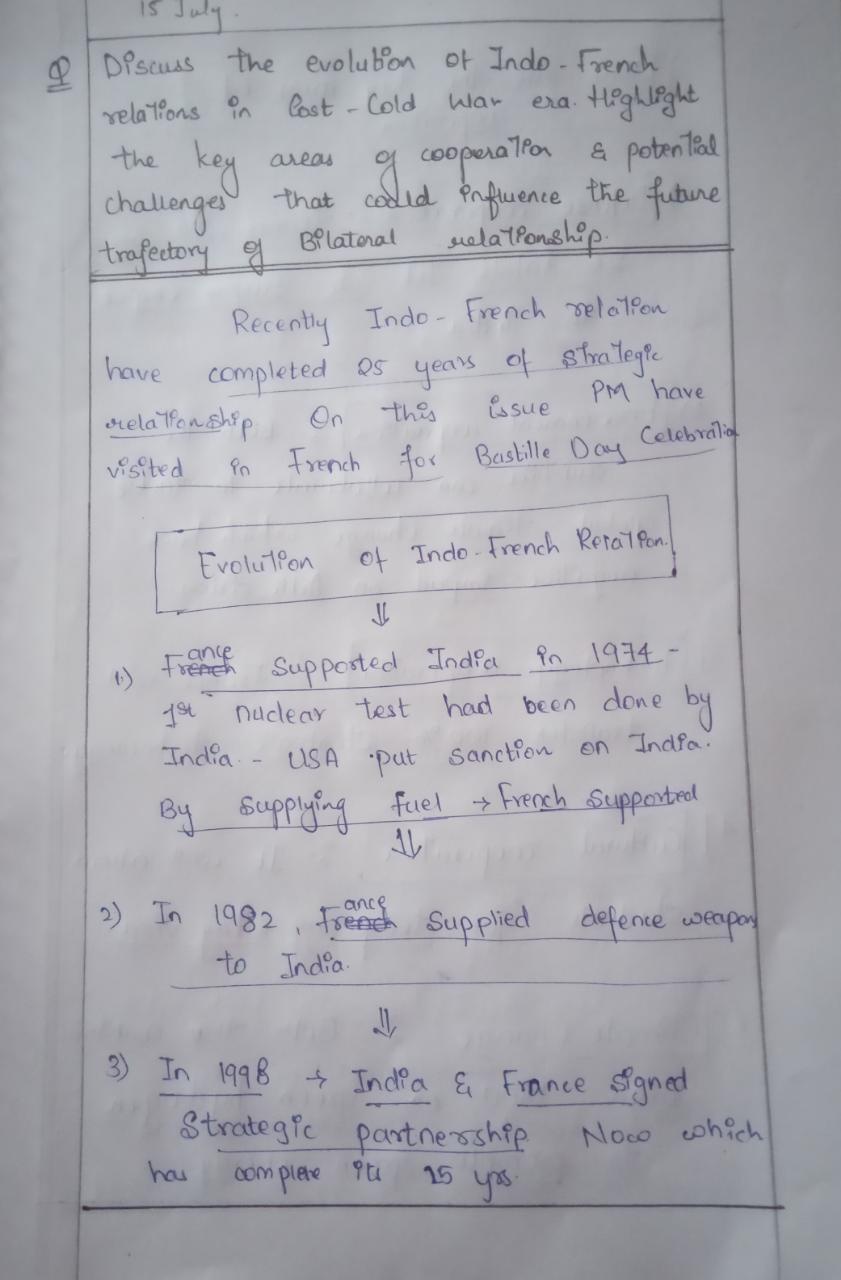 - Introduction: Introduce by outlining the significant transformation in Indo-French relations since the end of the Cold War.