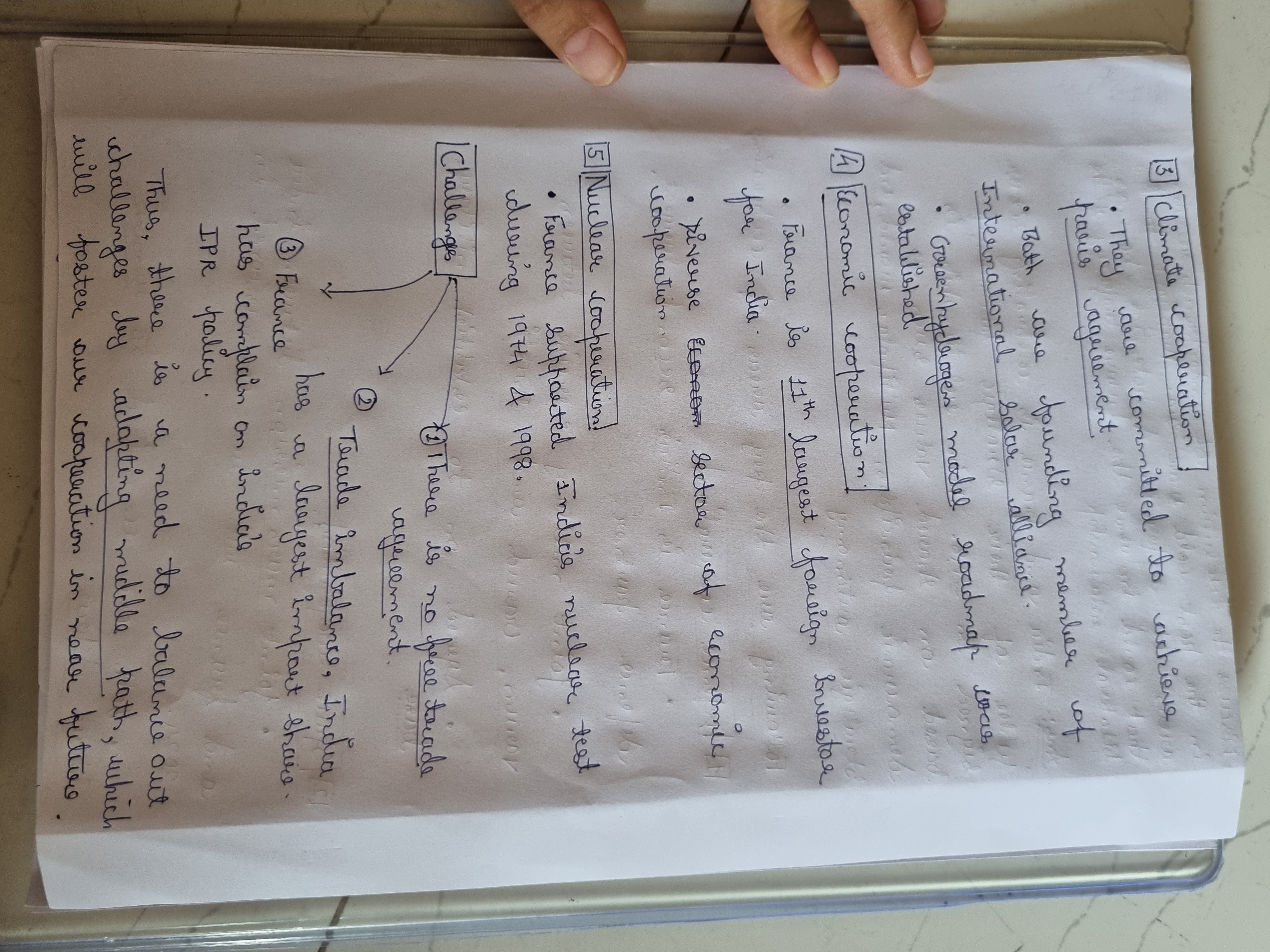 - France and India launched the International Solar Alliance during the 2015 UN Climate Change Conference (COP21) in Paris.
