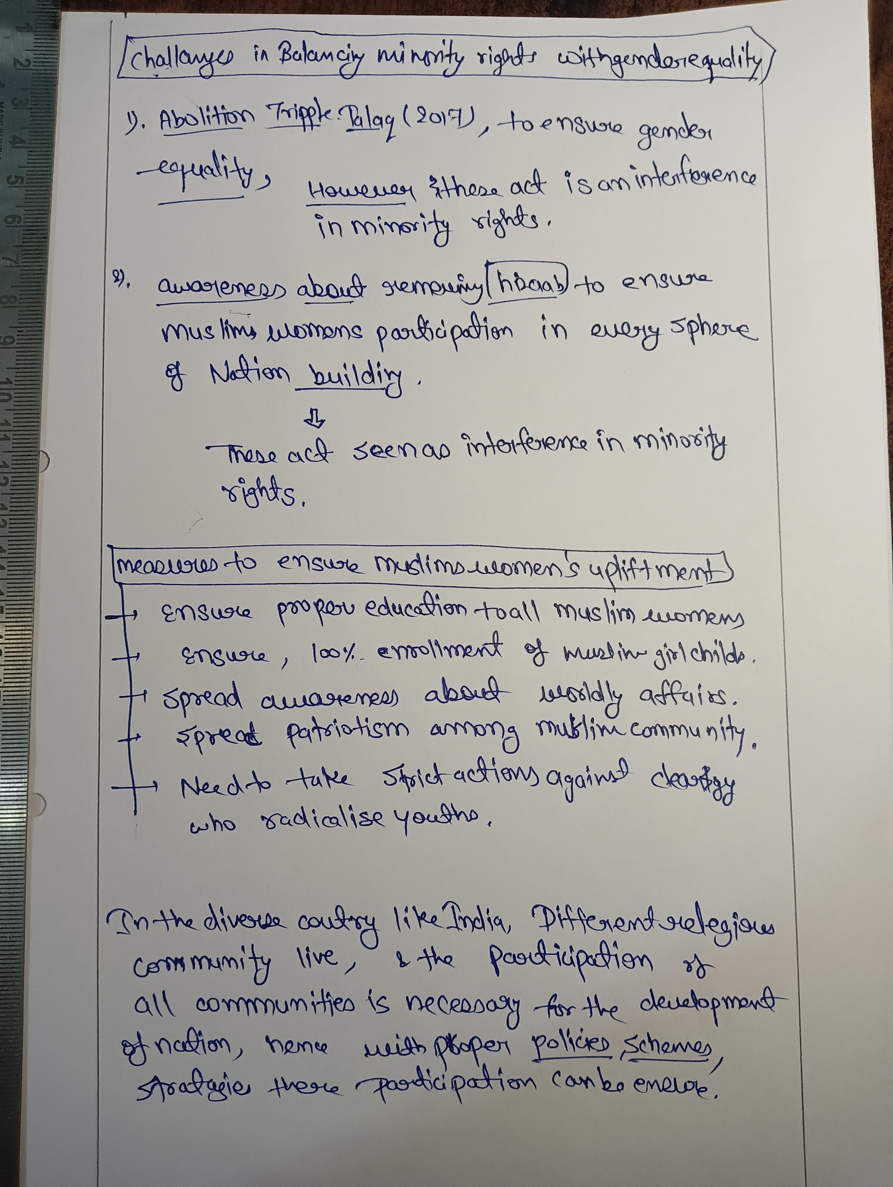 - Legislative Reforms: Laws like the Muslim Women (Protection of Rights on Marriage) Act, 2019 (Triple Talaq Bill), aim to protect Muslim women’s rights.