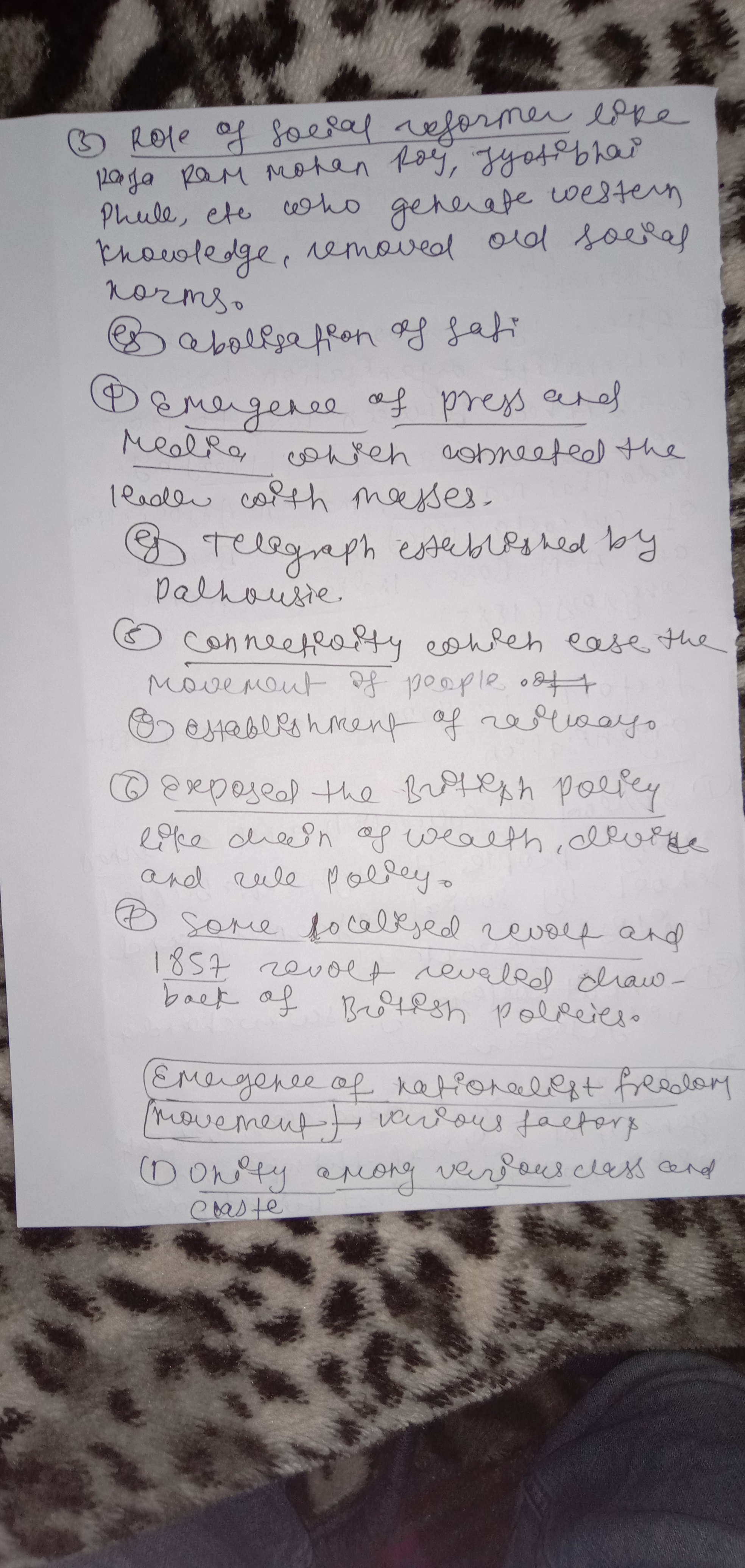 - Spread of Education: The spread of modern and progressive education which promoted self-respect among Indians. Example- Setting up of universities in Bombay, Calcutta and Madras in 1857.