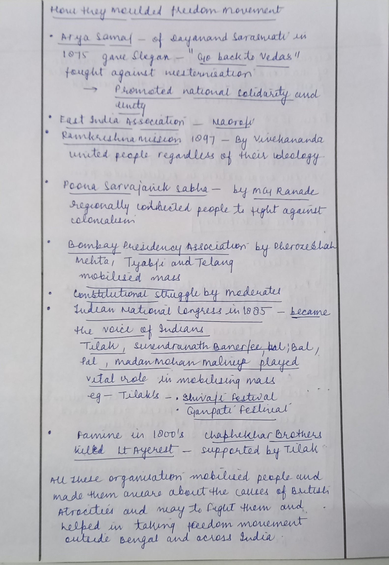 - Impact of International Movements: The growth of nationalist organizations in India was influenced by global movements for freedom and democracy, such as the American Revolution and the French Revolution.